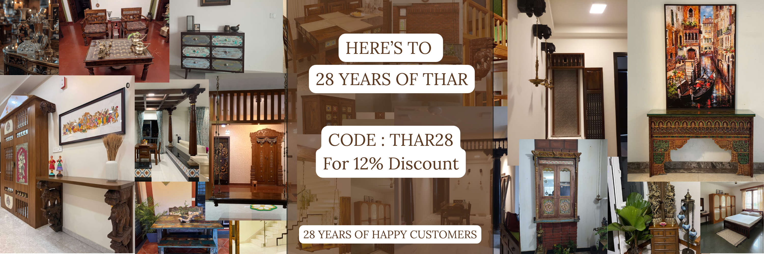 Thar Arts & Furniture is a store that specializes in unique and handcrafted furniture pieces, home decor, and accessories. Located in Domlur Bangalore.