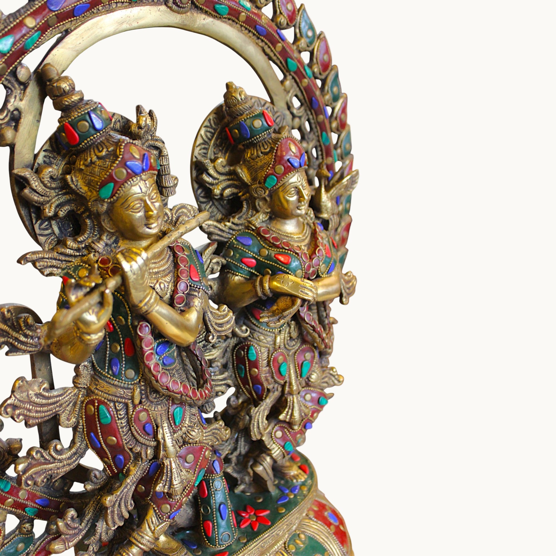 Brass Radha Krishna Idol with Stone Work – Divine Home Temple Decor | Thar Arts & Furniture