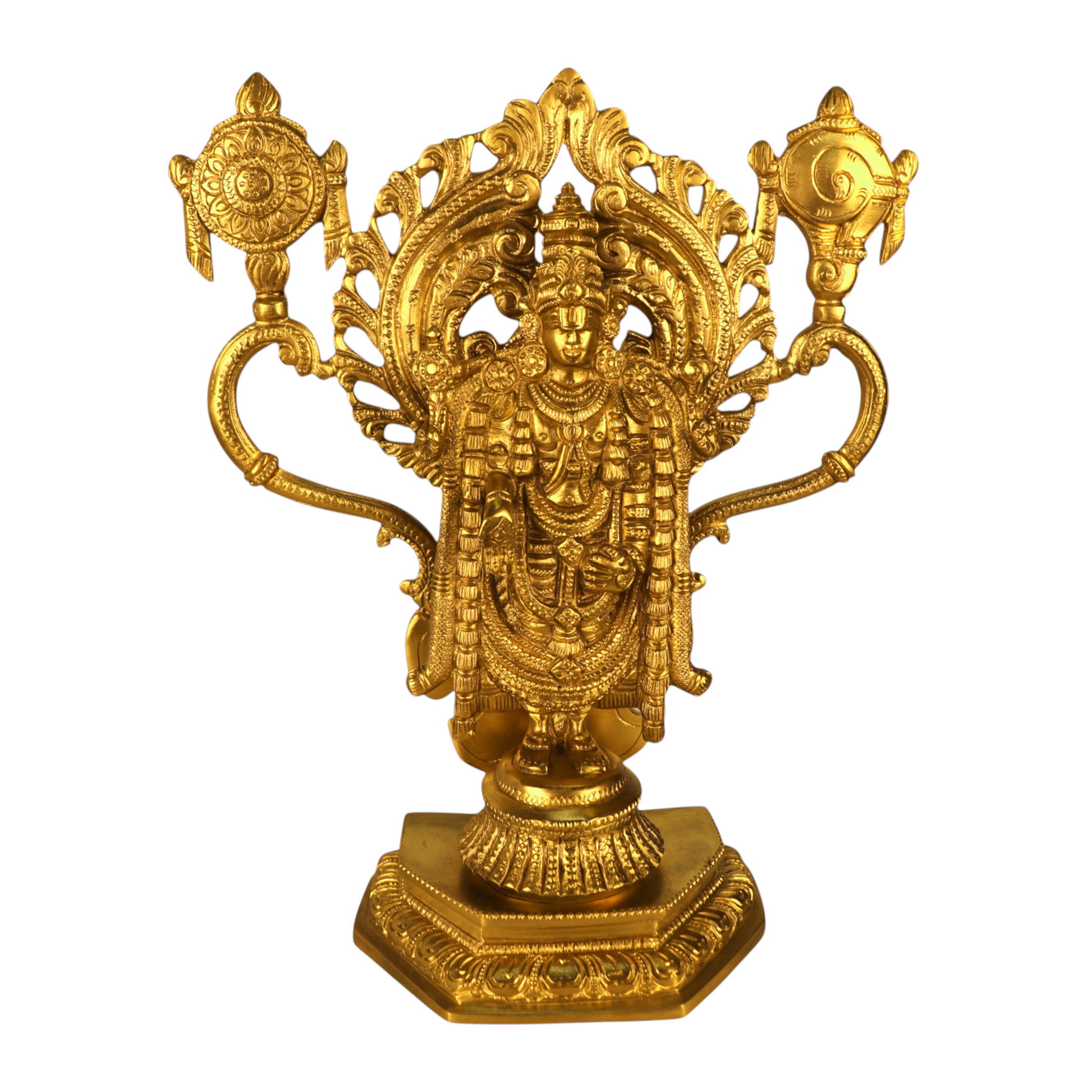 Handcrafted Brass Tirupati Balaji Idol – Lord Venkateswara Statue with Shankh and Chakra for Temple, Home Mandir, and Festive Worship