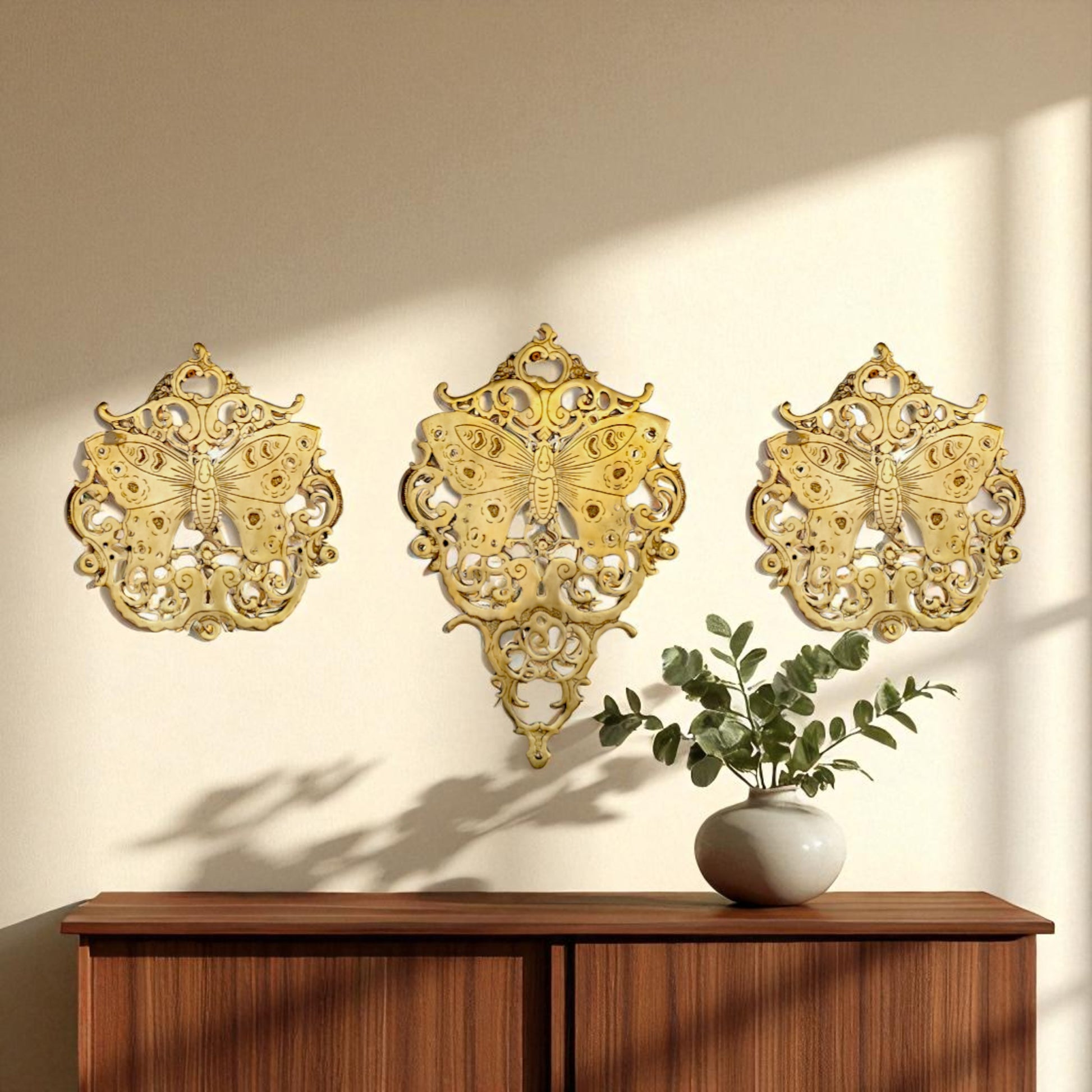 Thar Arts And Furniture - Brass Butterfly Wall Panel Set of Three