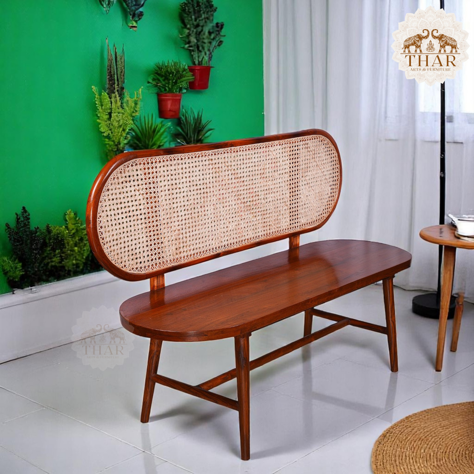 Thar Arts and Furniture - Wooden ( Teak ) Bench With Rattan Hand Work