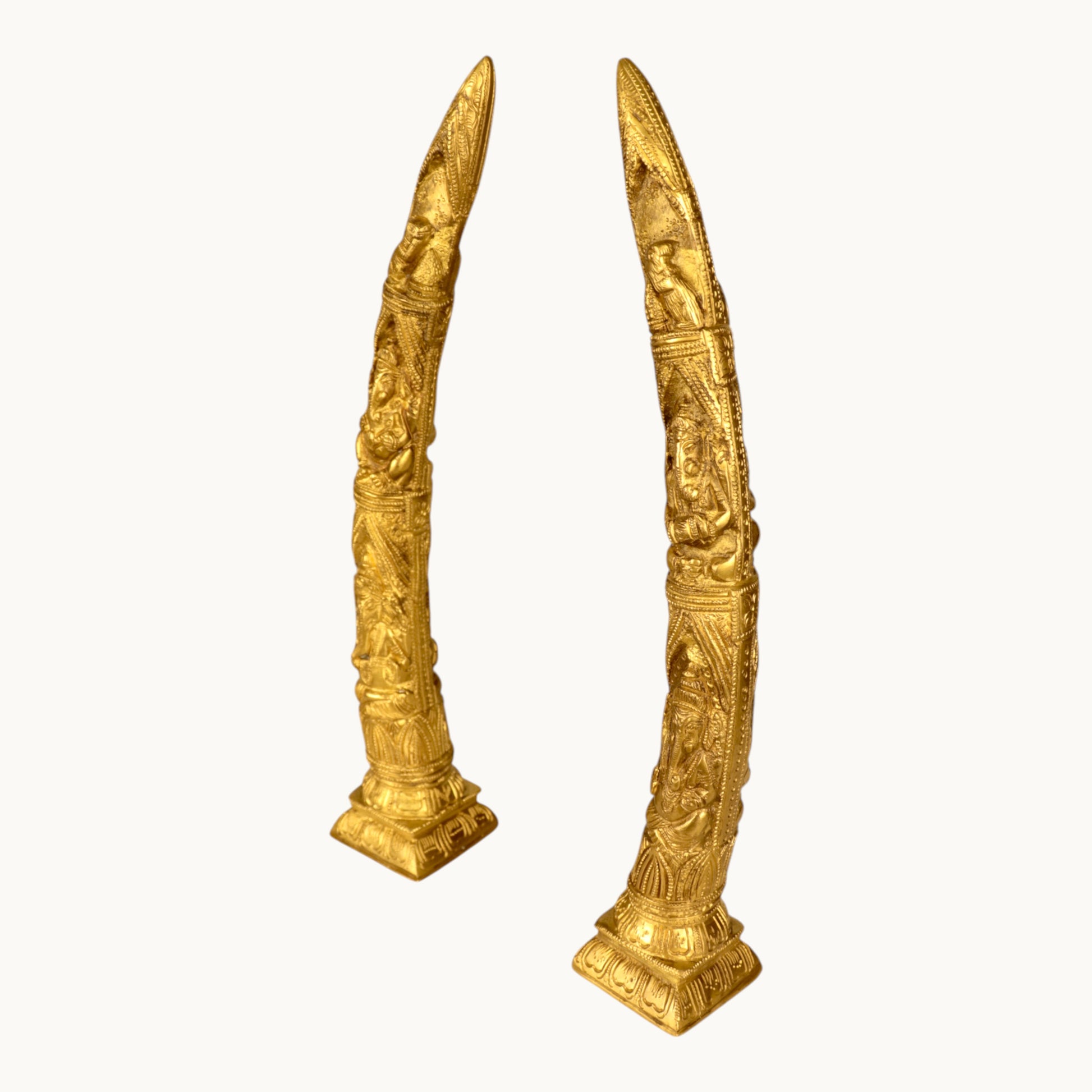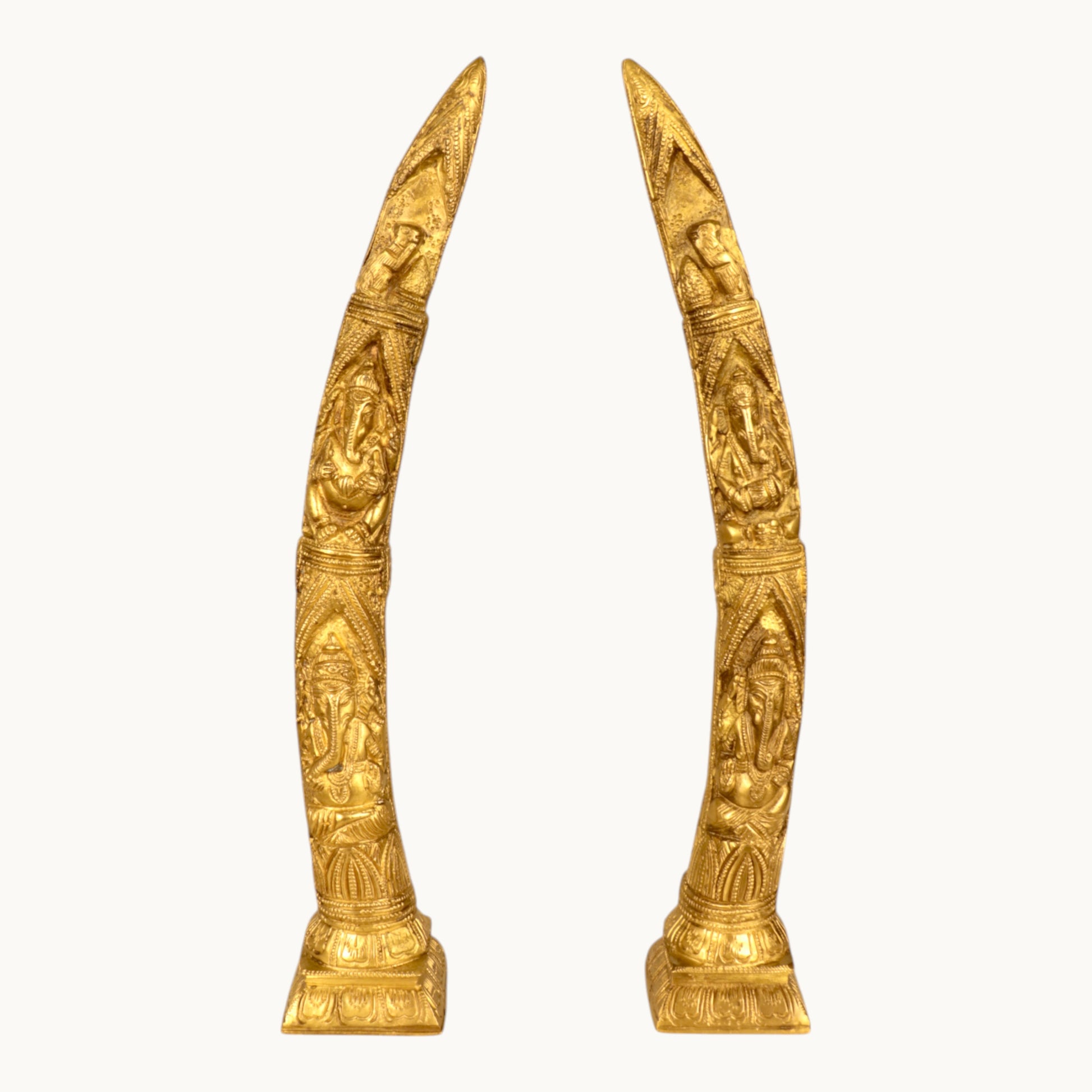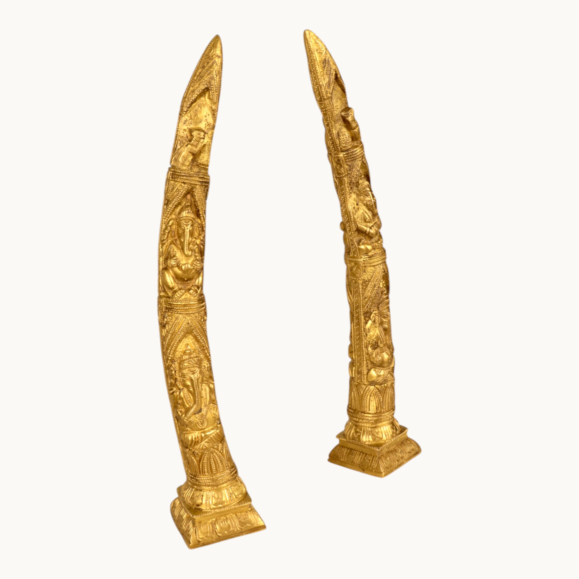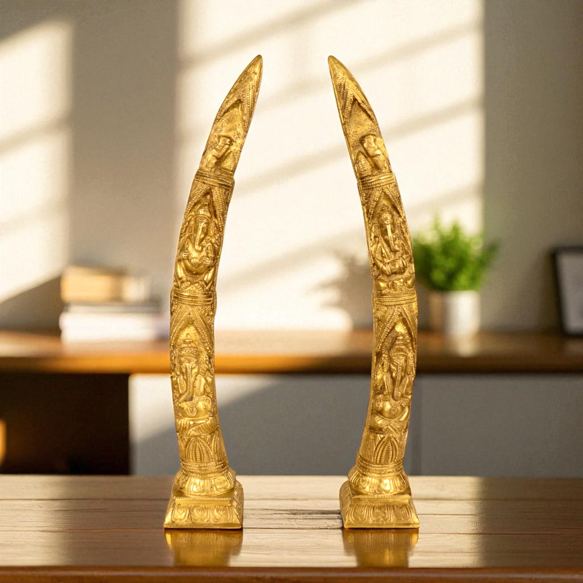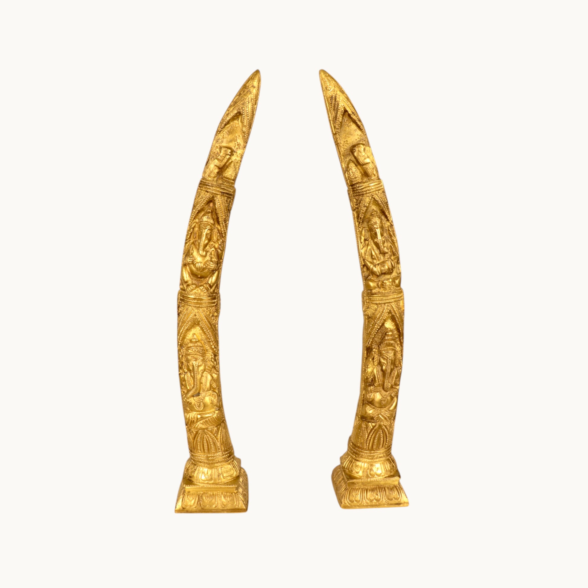 Thar Arts And Furniture - Brass Ganesha Design Elephant Tusk Set