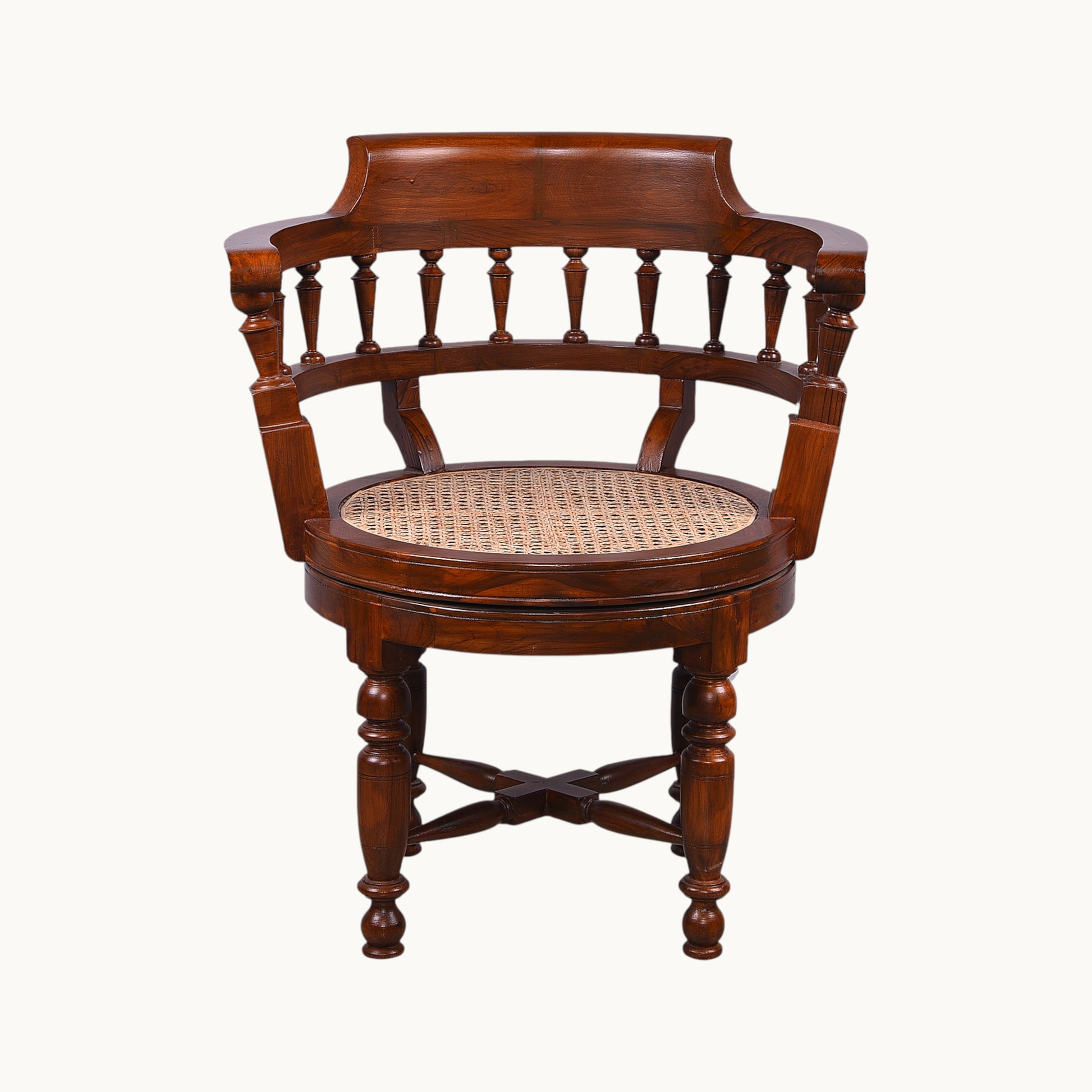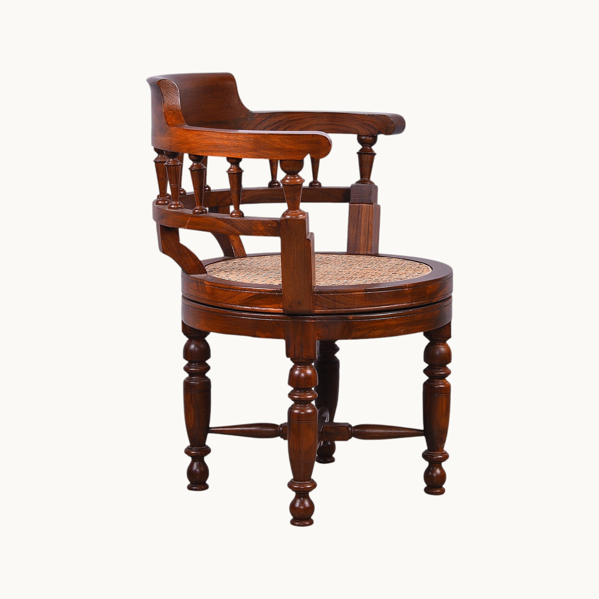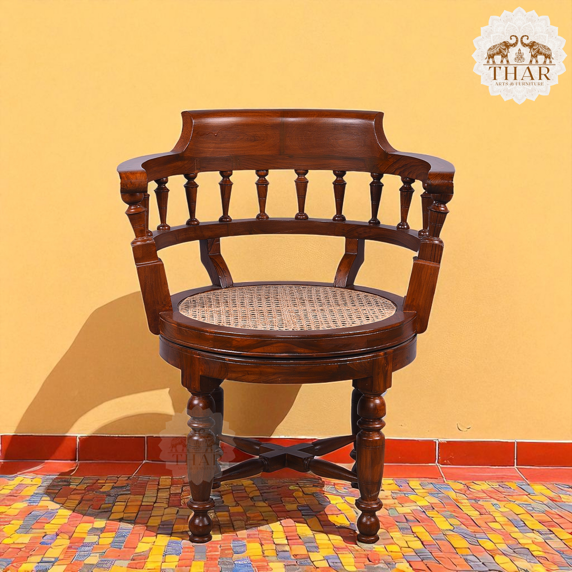 Thar Arts And Furniture - Teak Wood Revolving Chair With Cane