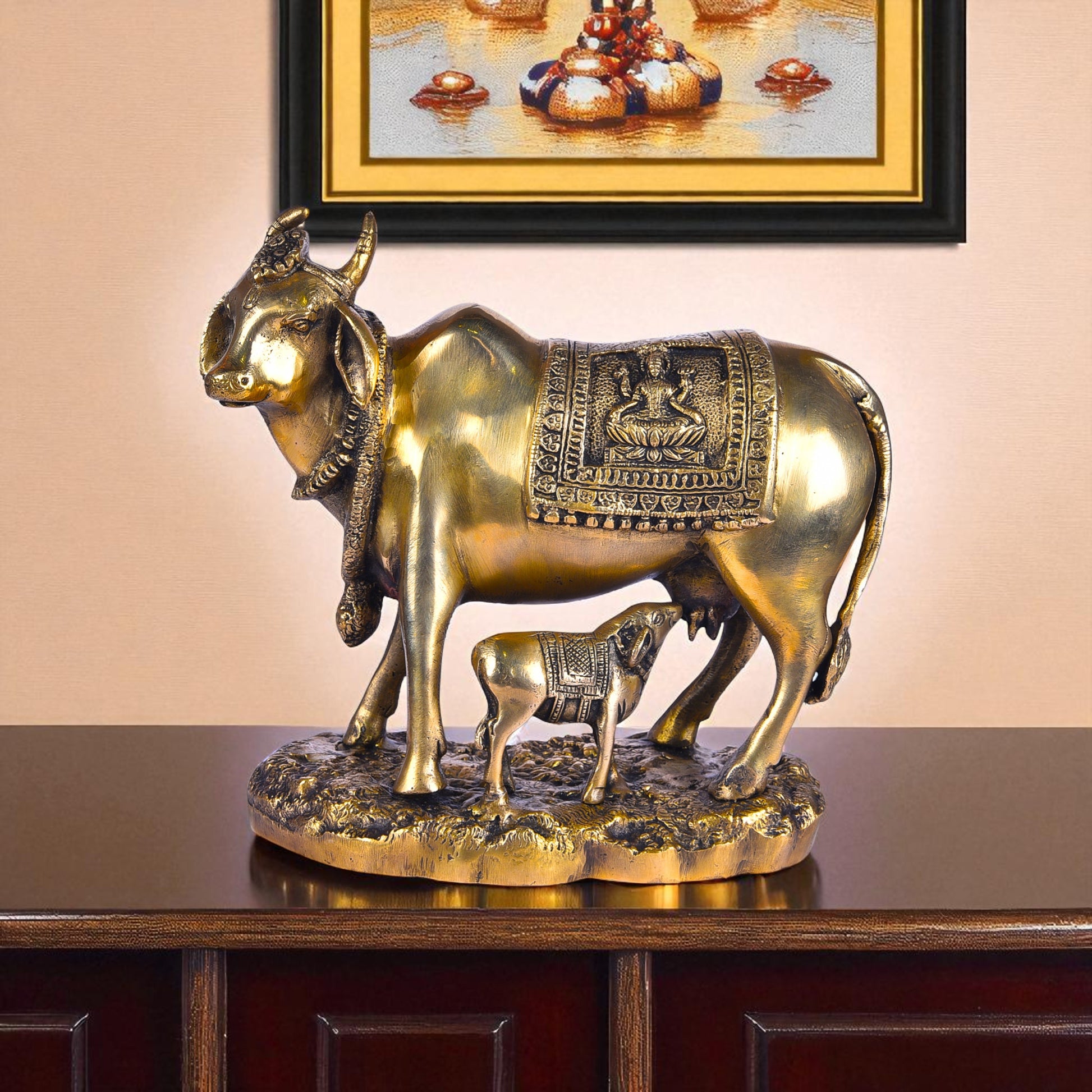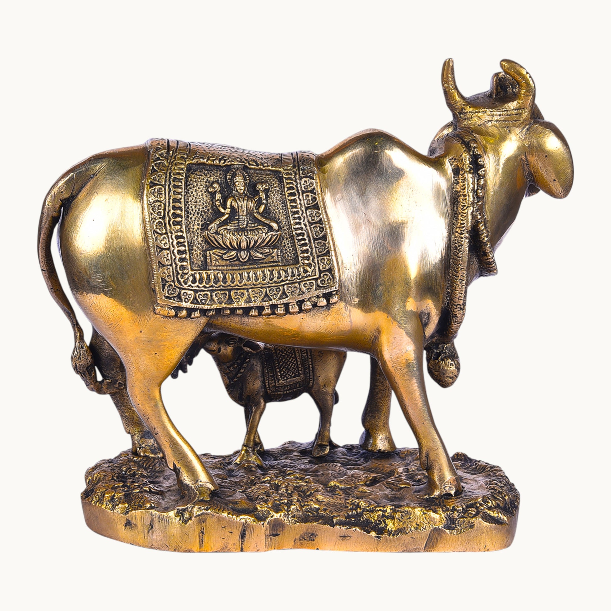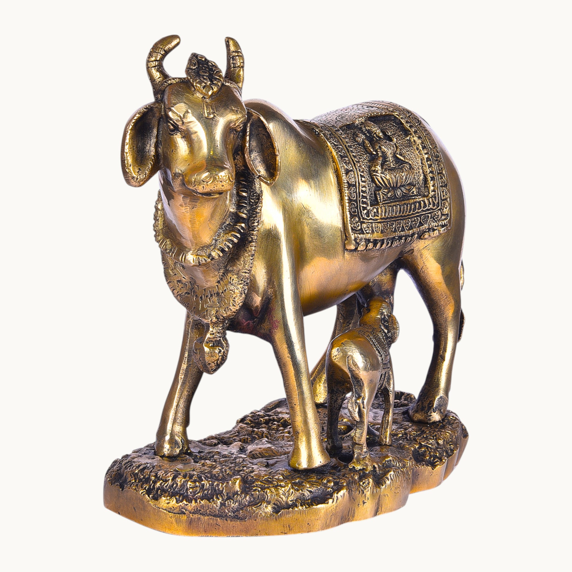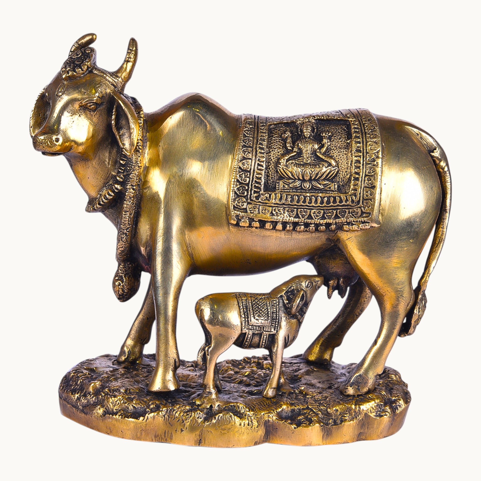 • Design: Sacred cow and calf figurine symbolizing purity, devotion, and positive energy