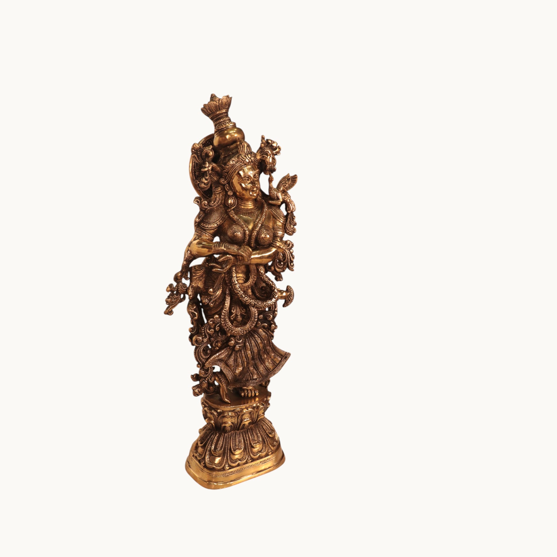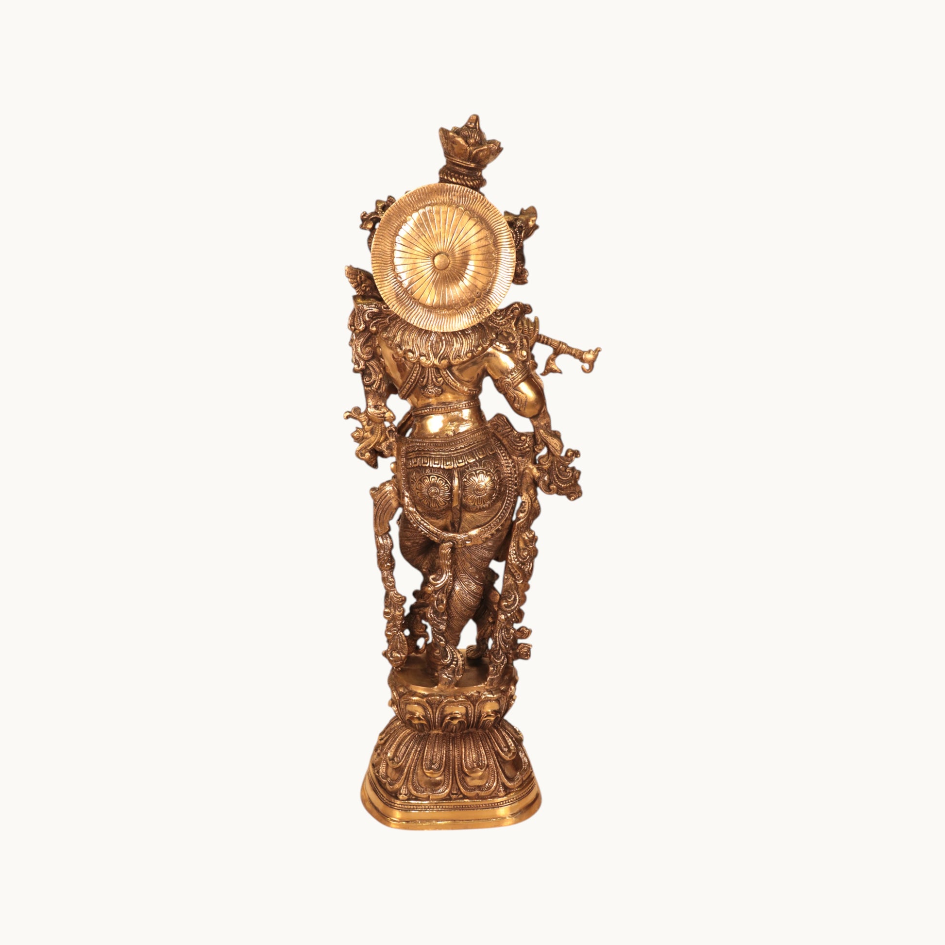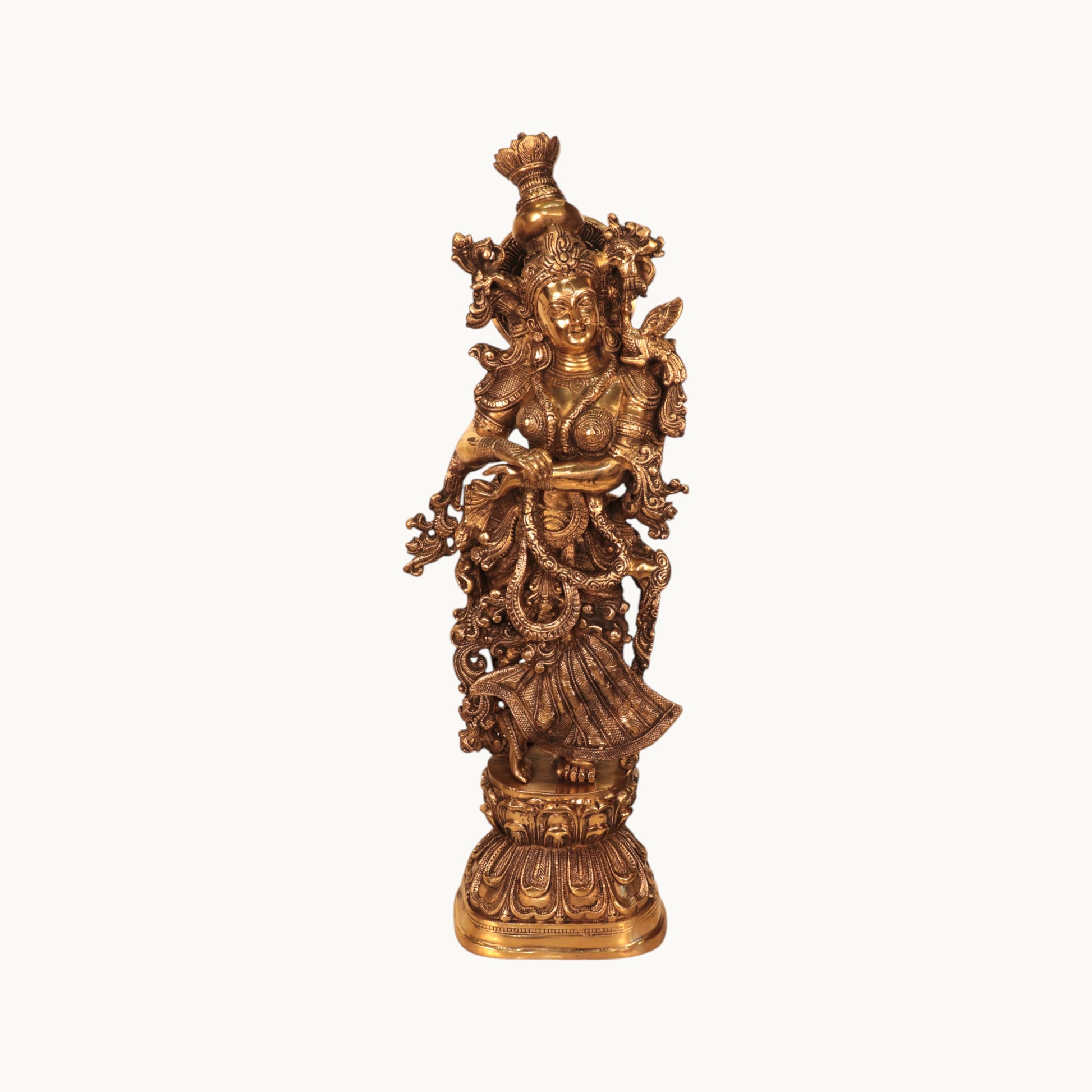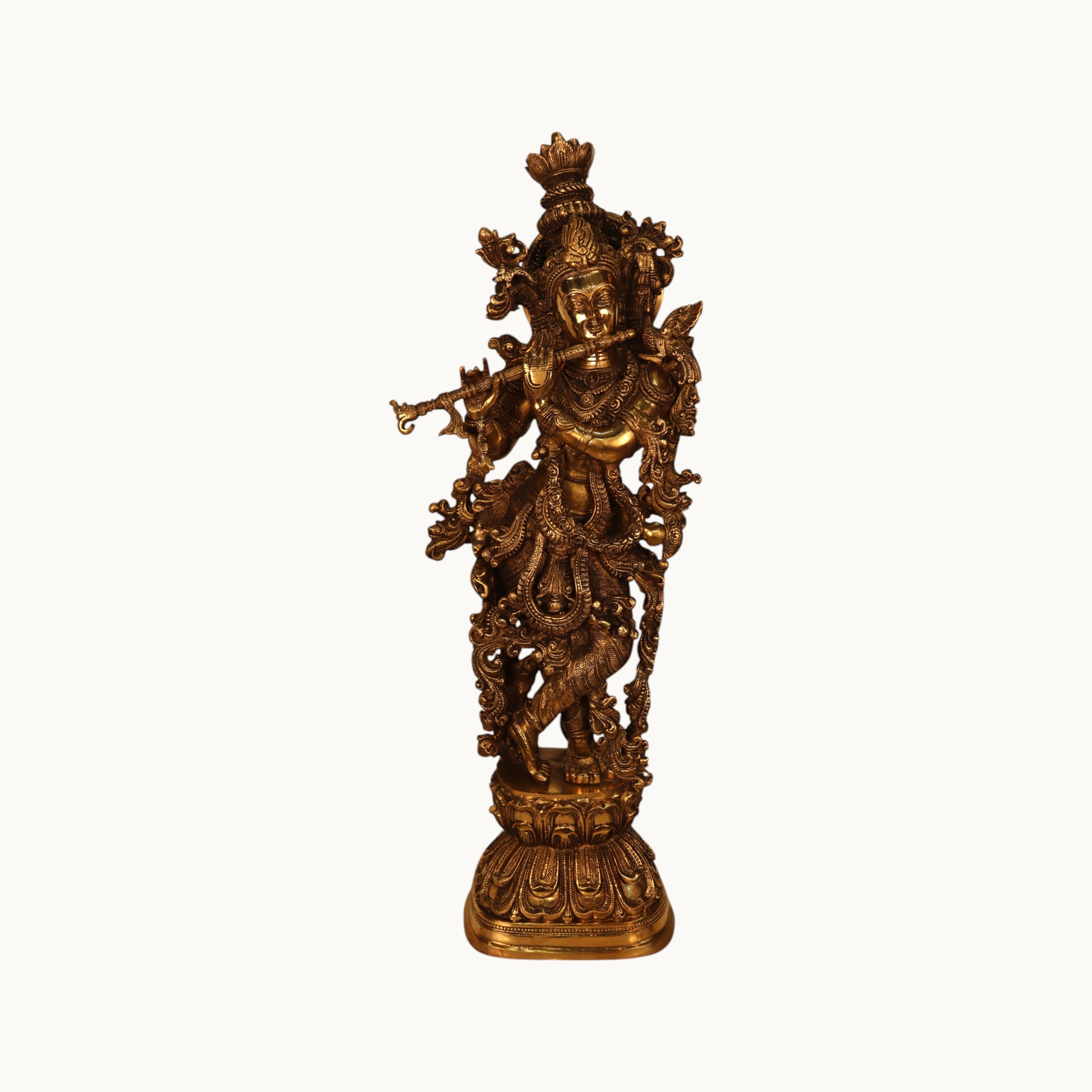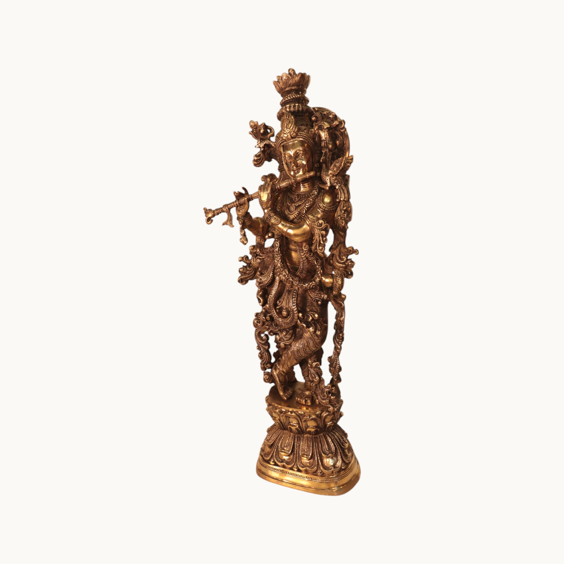 • Design: Crafted in brass with intricate details, depicting Radha and Krishna standing or seated together, often with Krishna playing the flute, symbolizing their divine love