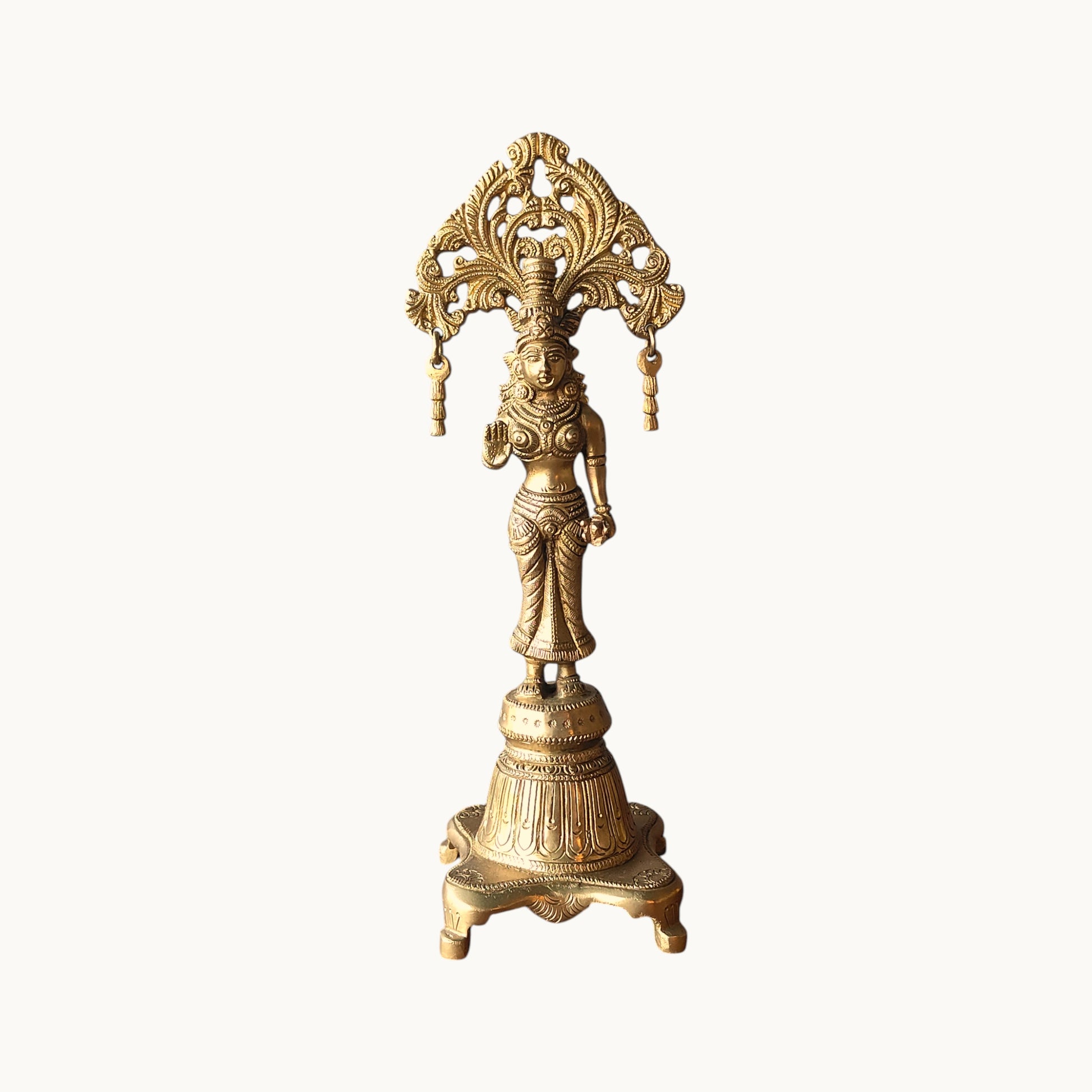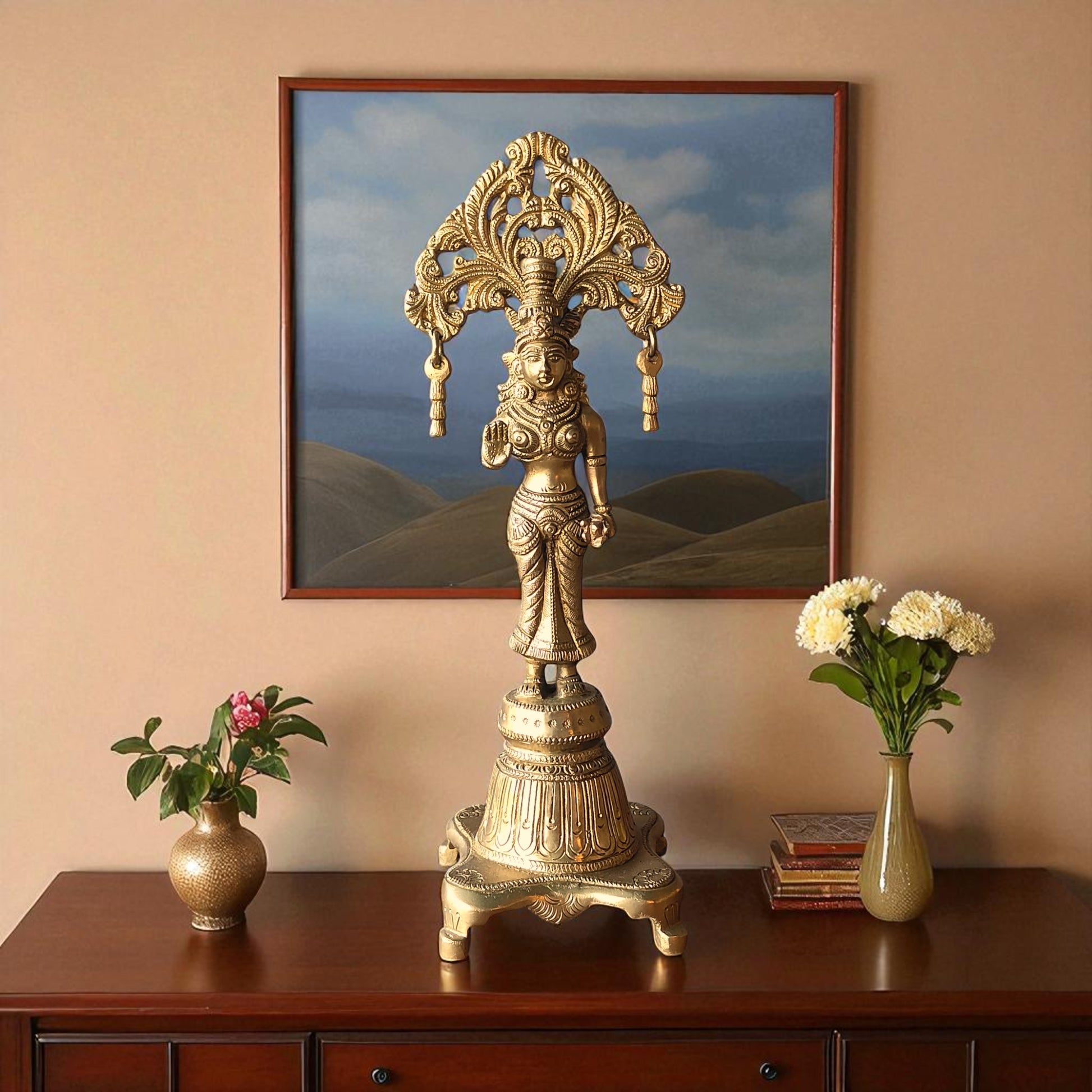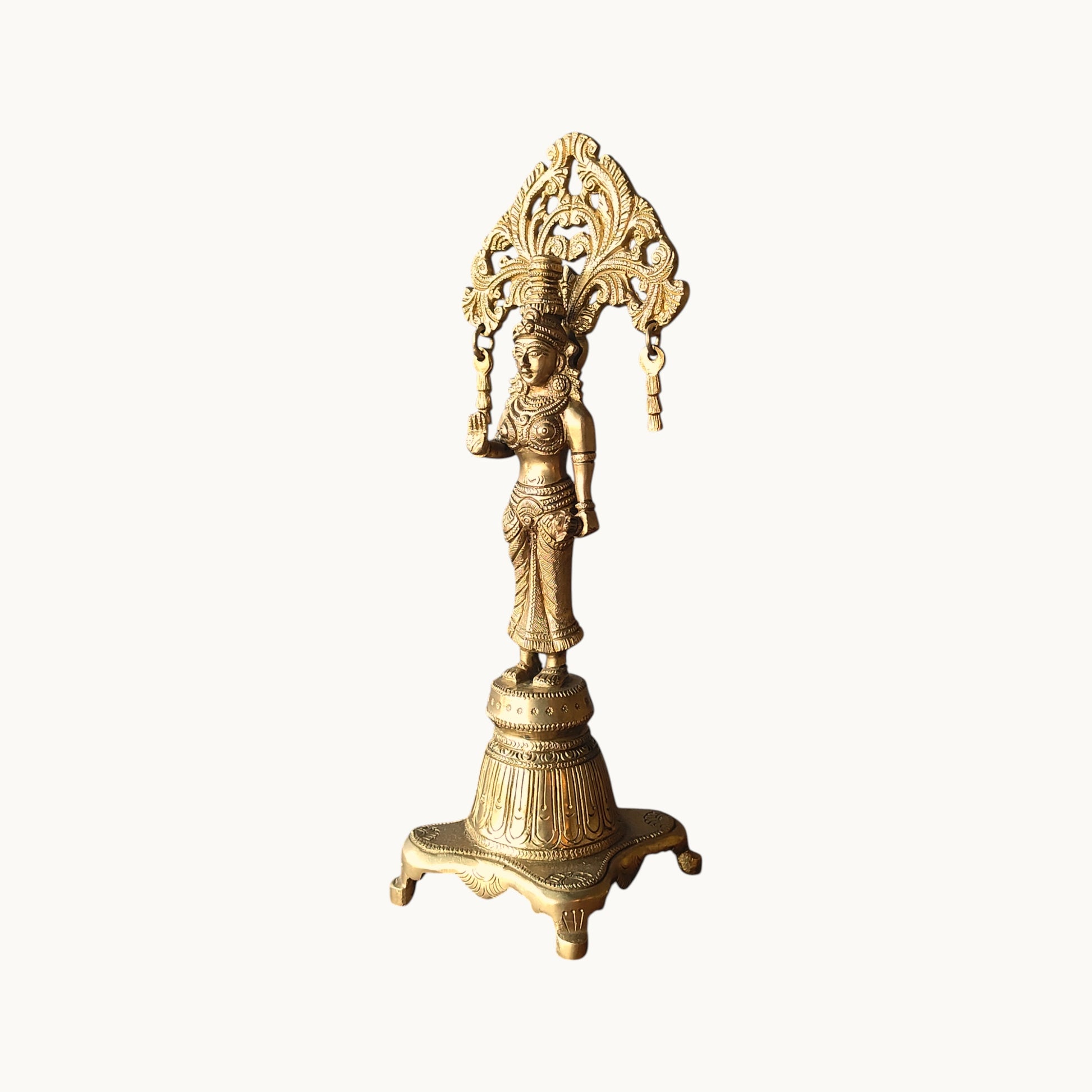 Design: Crafted in brass with intricate details, showcasing Radha's divine beauty and elegance in traditional attire