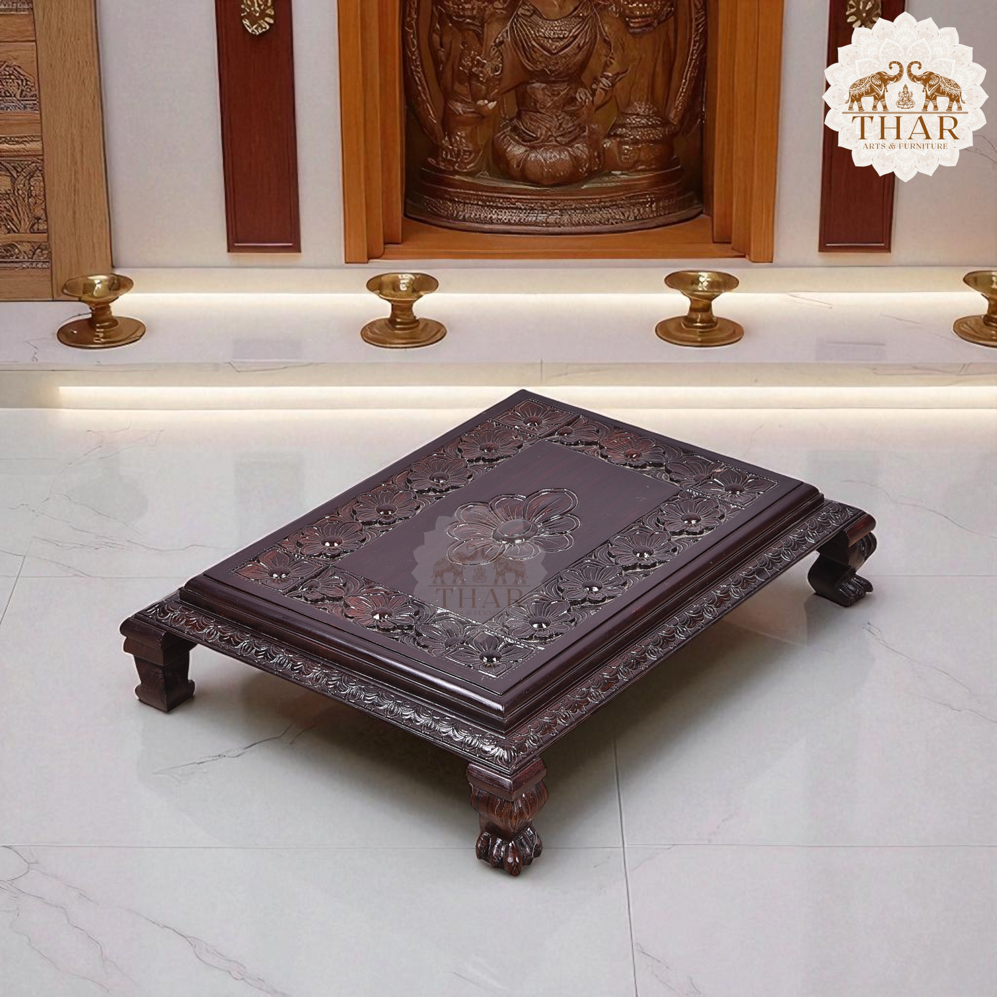Thar Arts And Furniture - Hand Carved Rosewood Chowki for Pooja Room