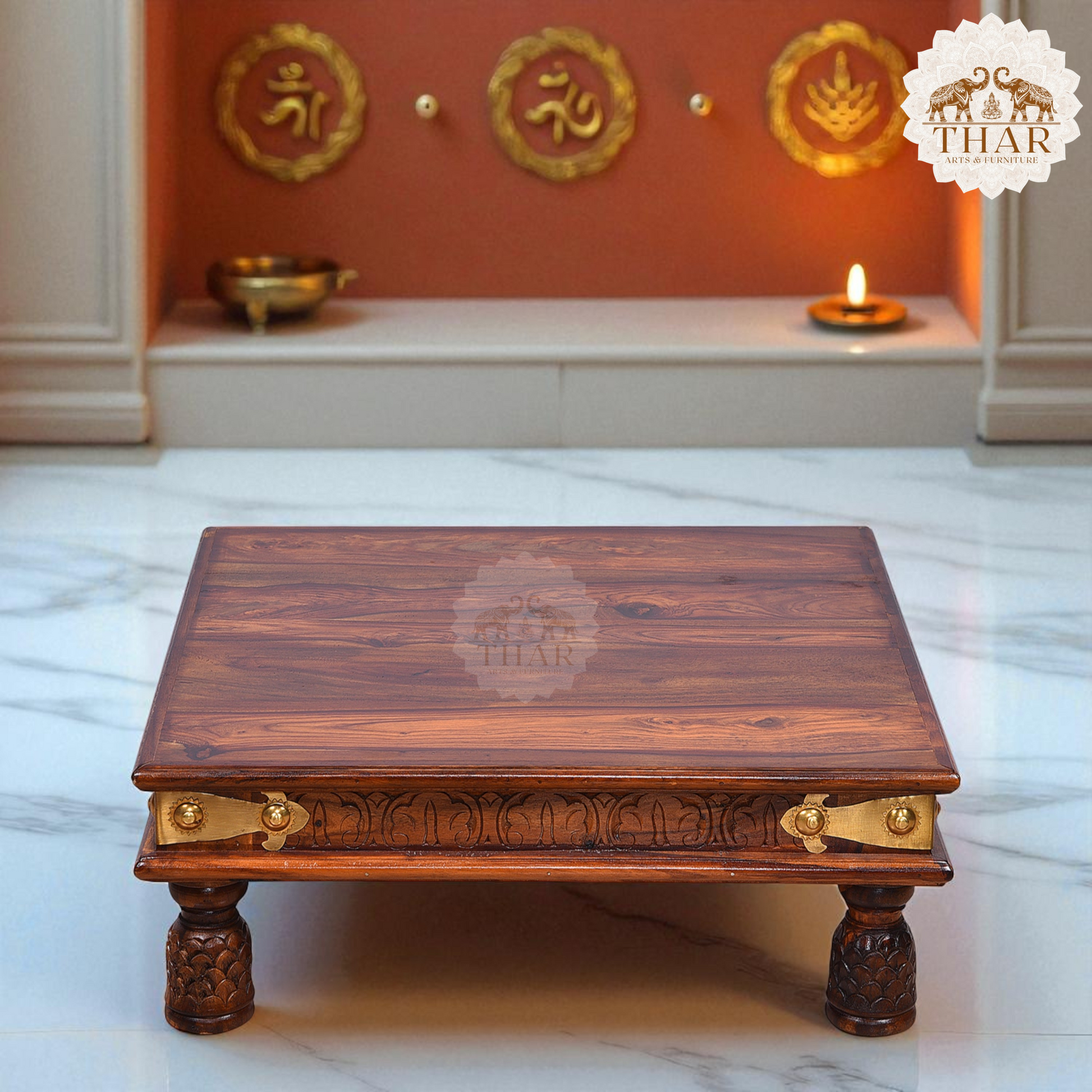 Thar Arts And Furniture - Hand Carved Sheesham wood Chowki for Pooja Room
