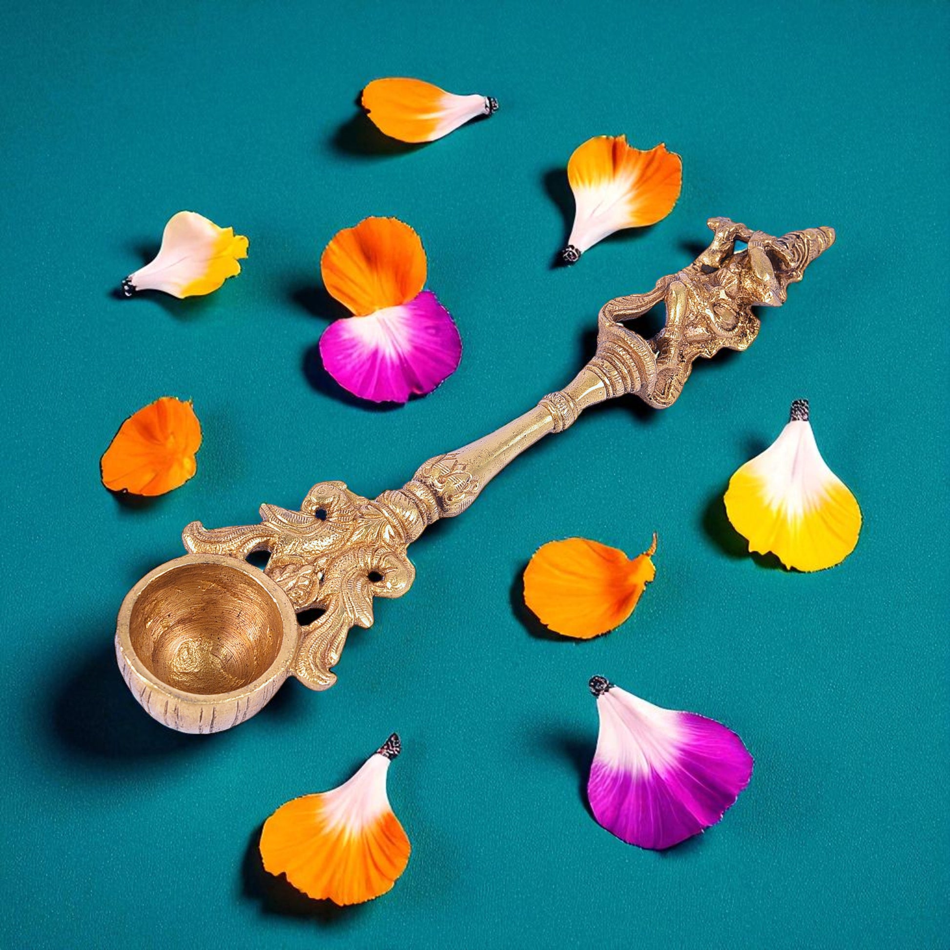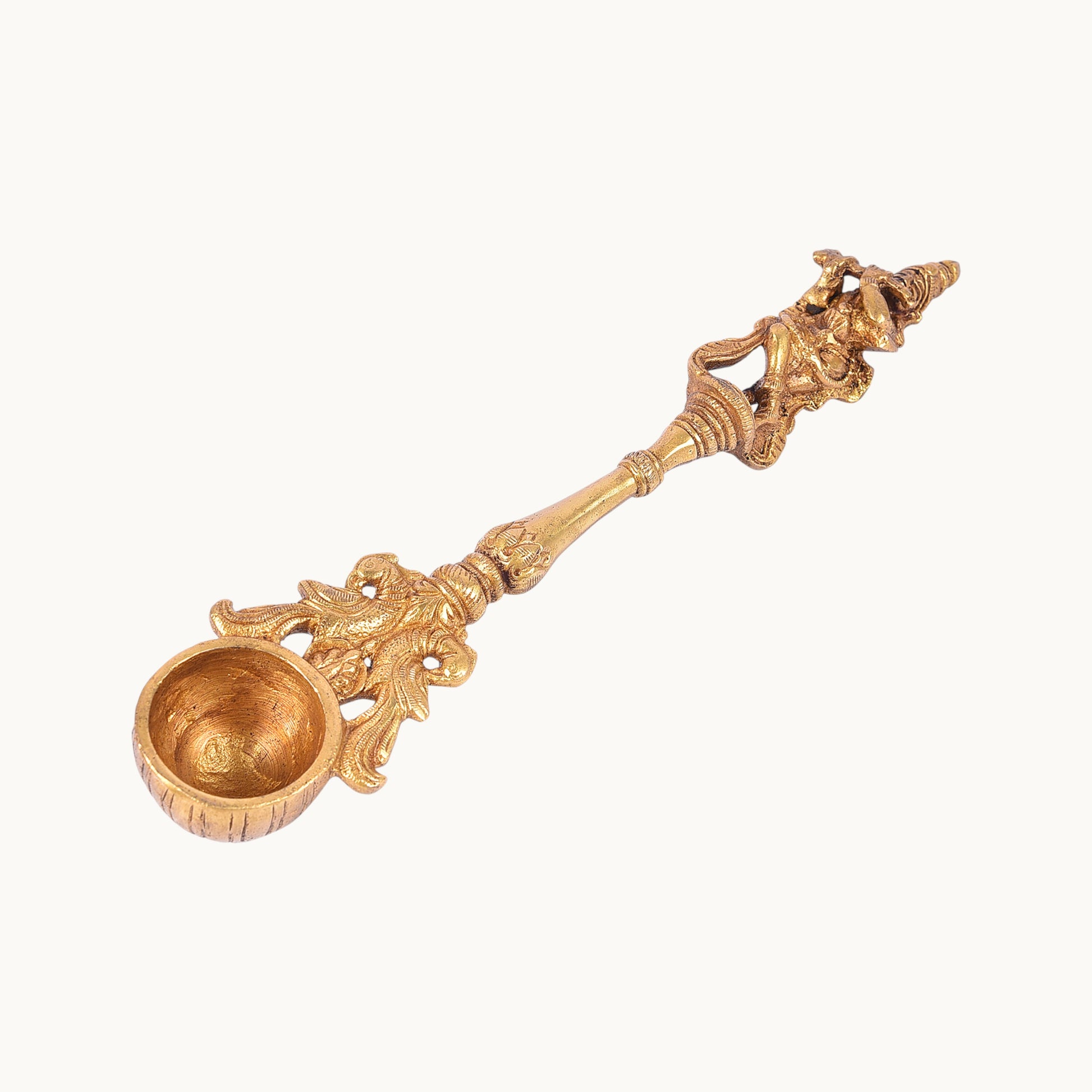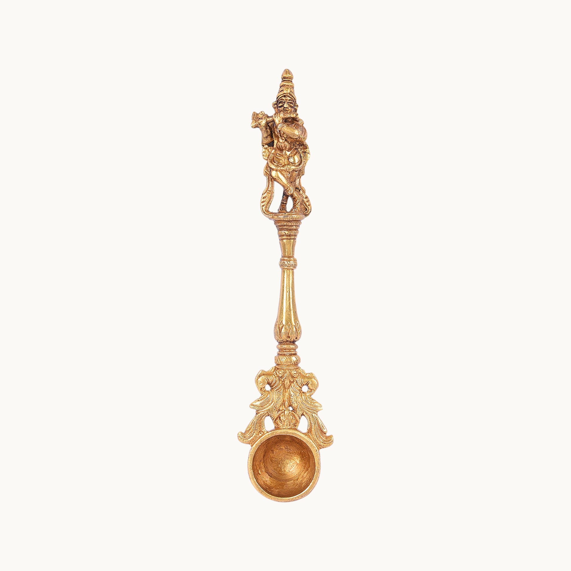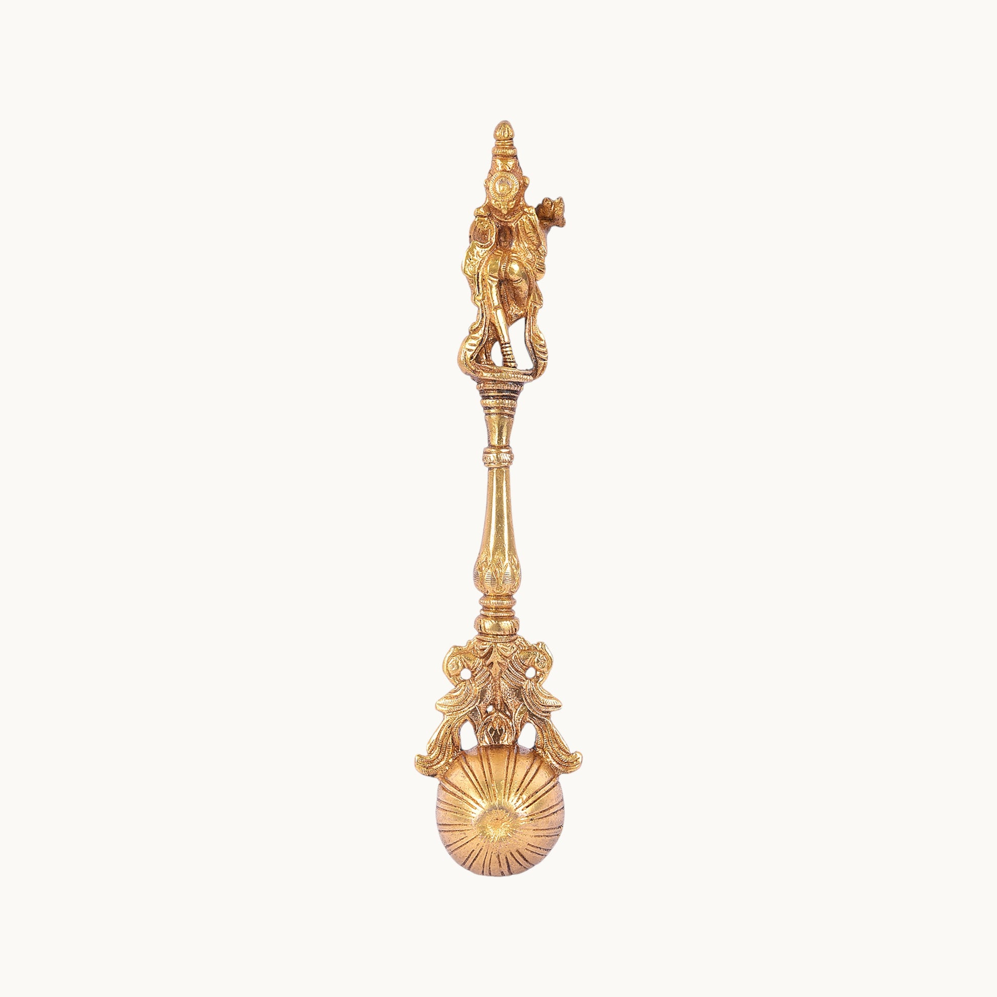 - Package Contains: 1 unit of Brass Lord Krishna Aarti Spoon