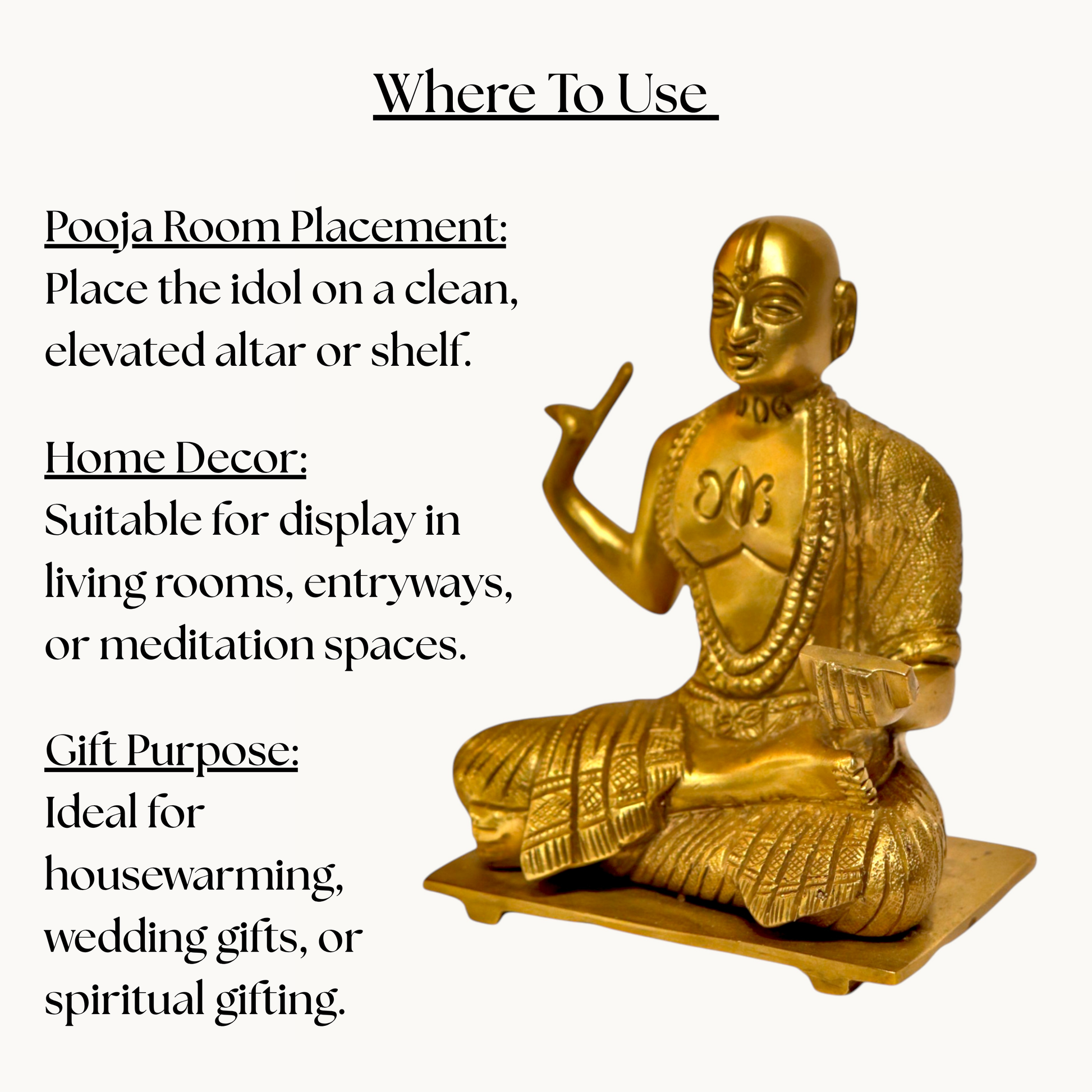 - Use: Used as a revered object in temples and homes, serving as a reminder of his teachings and spiritual legacy