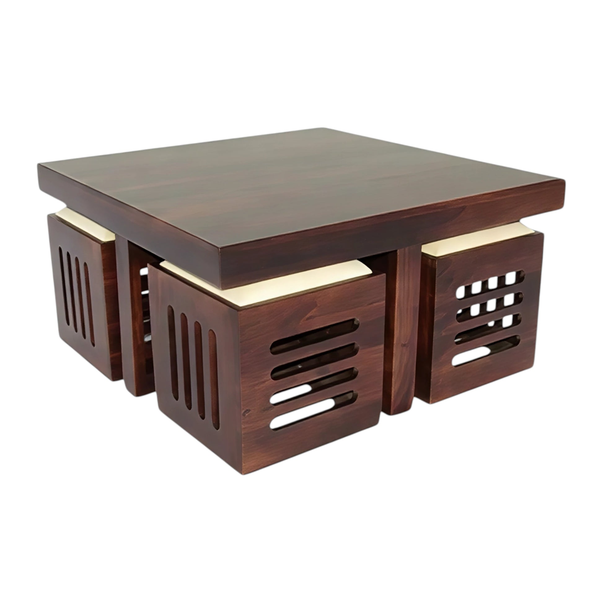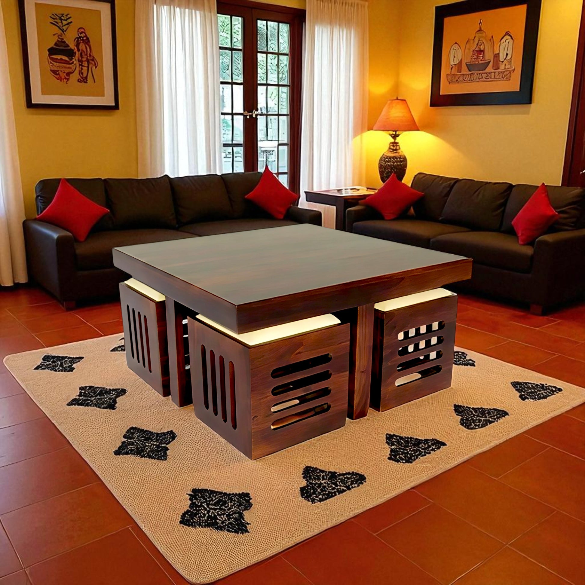 Thar Arts And Furniture - Sheesham Wood 4 Seater Coffee Table with Stool Set