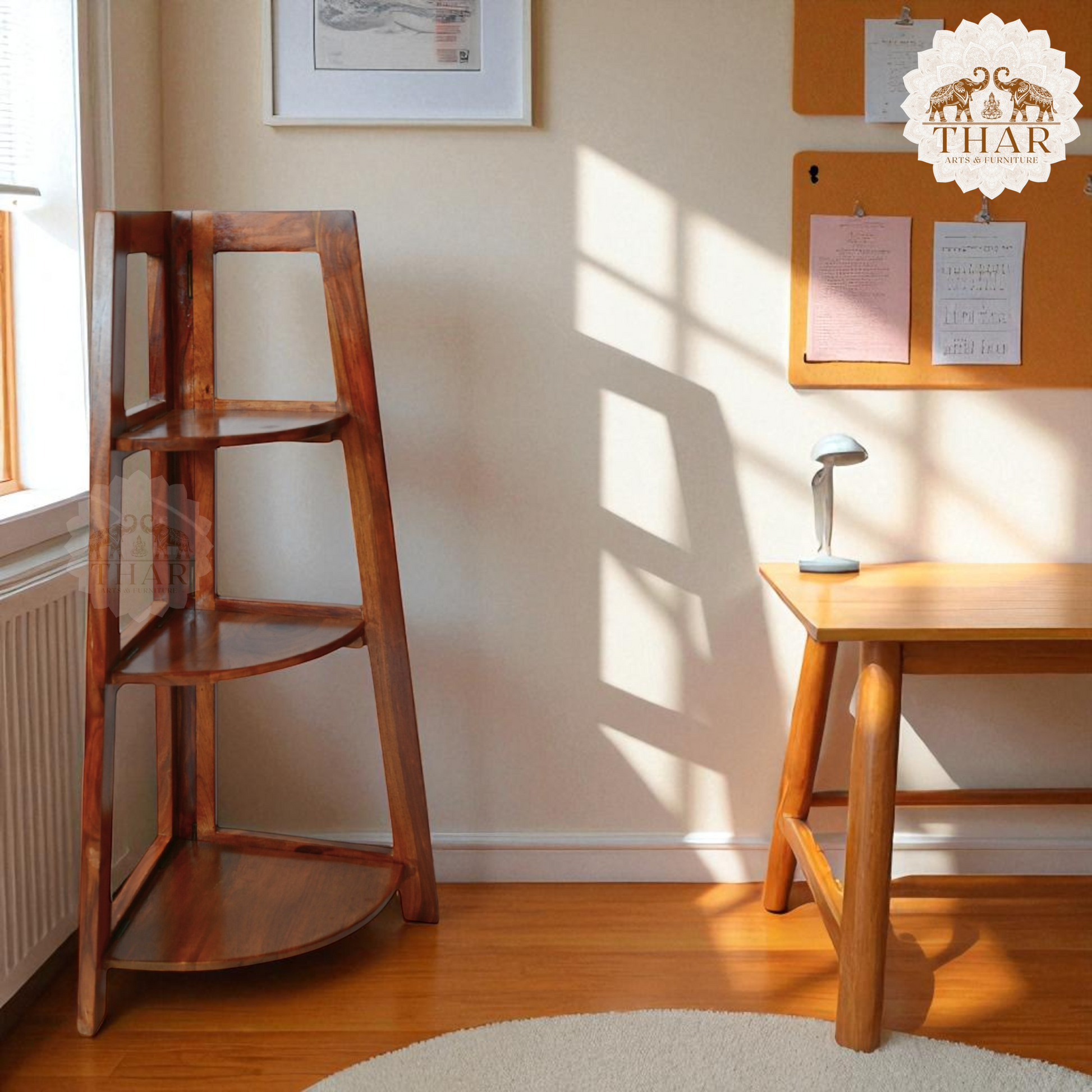 Thar Arts And Furniture - Sheesham Wood Folding Corner Bookshelf