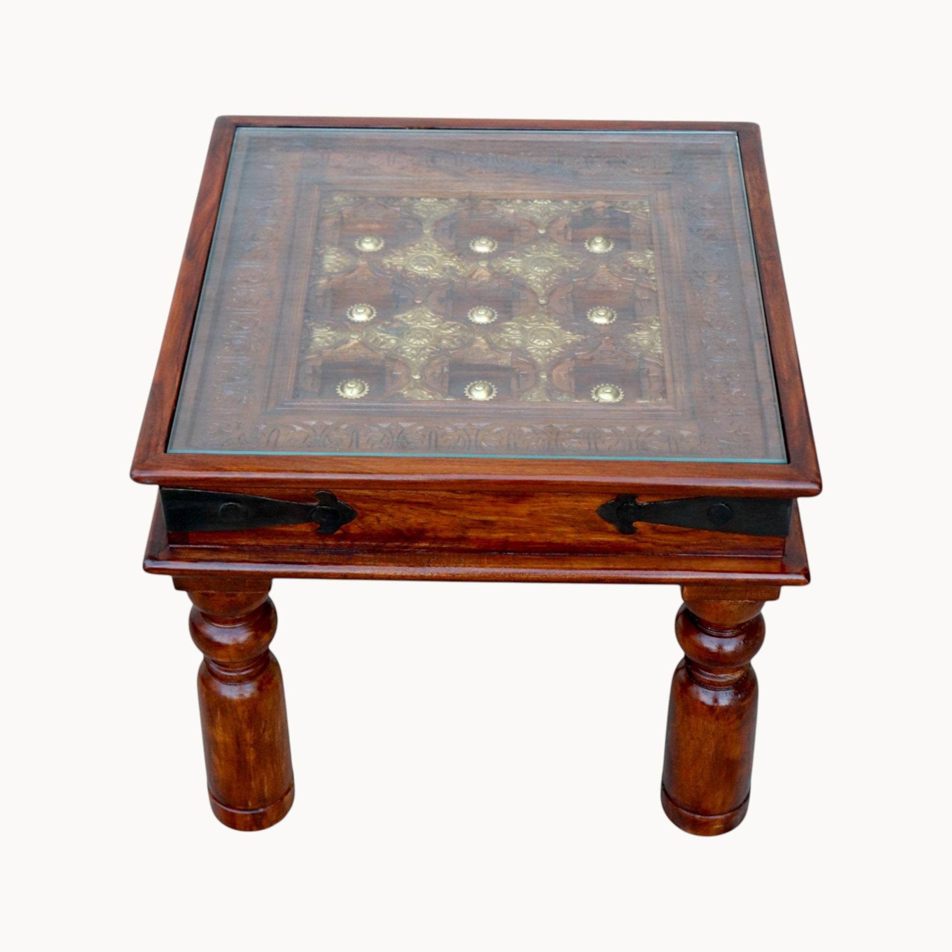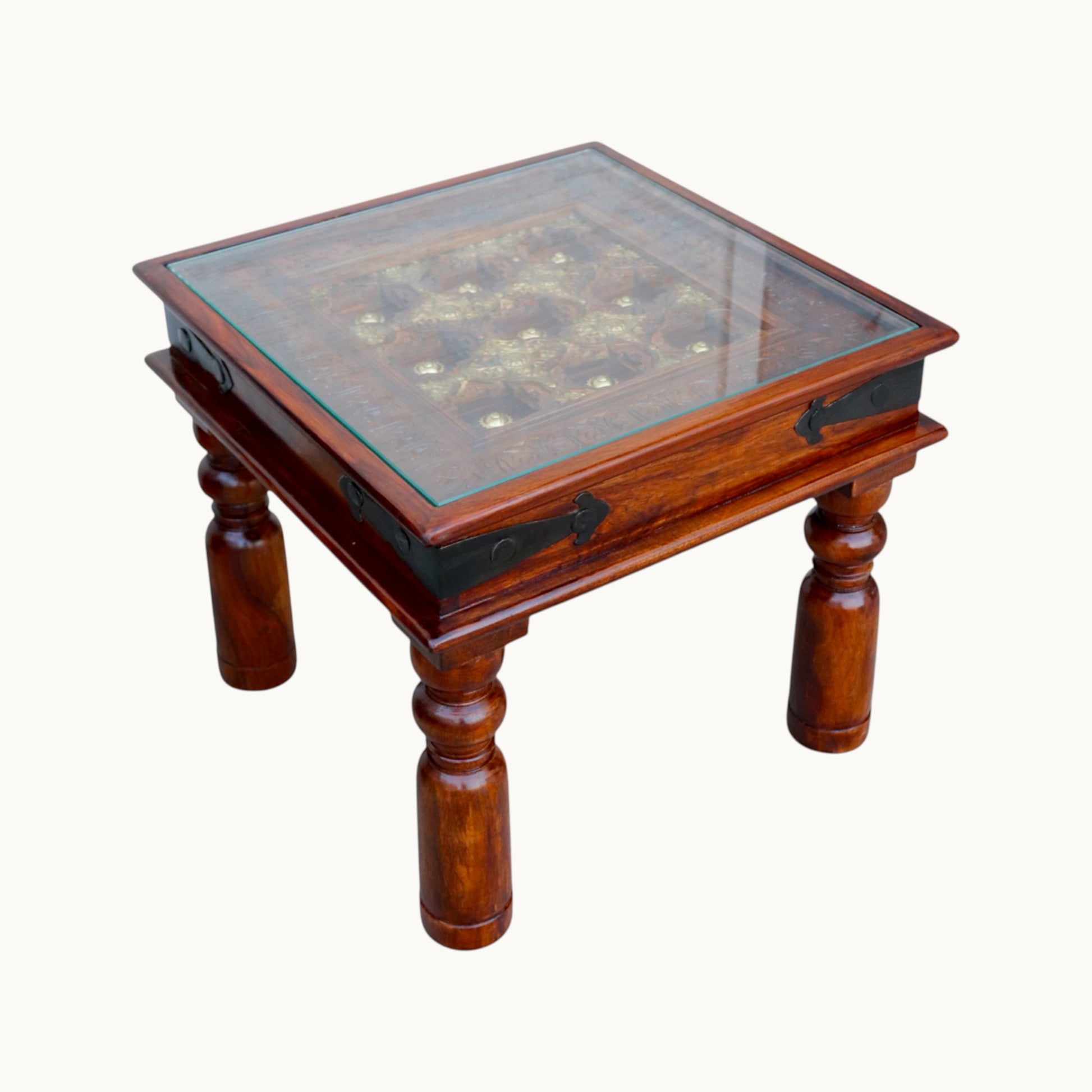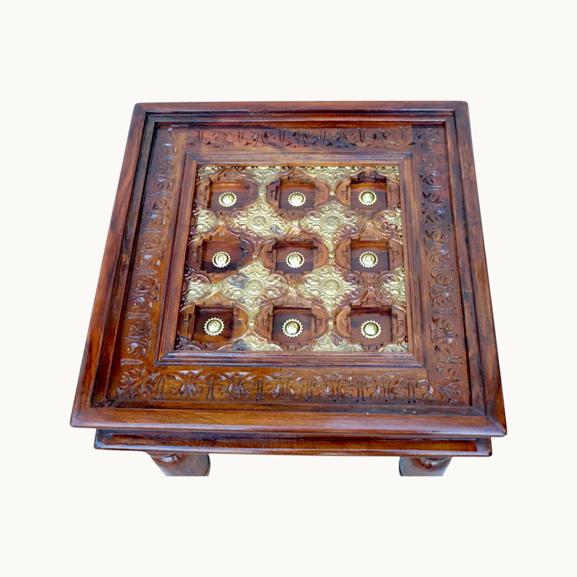 Thar Arts And Furniture - Solid Sheesham Wood Side Table with Brass Art and finish