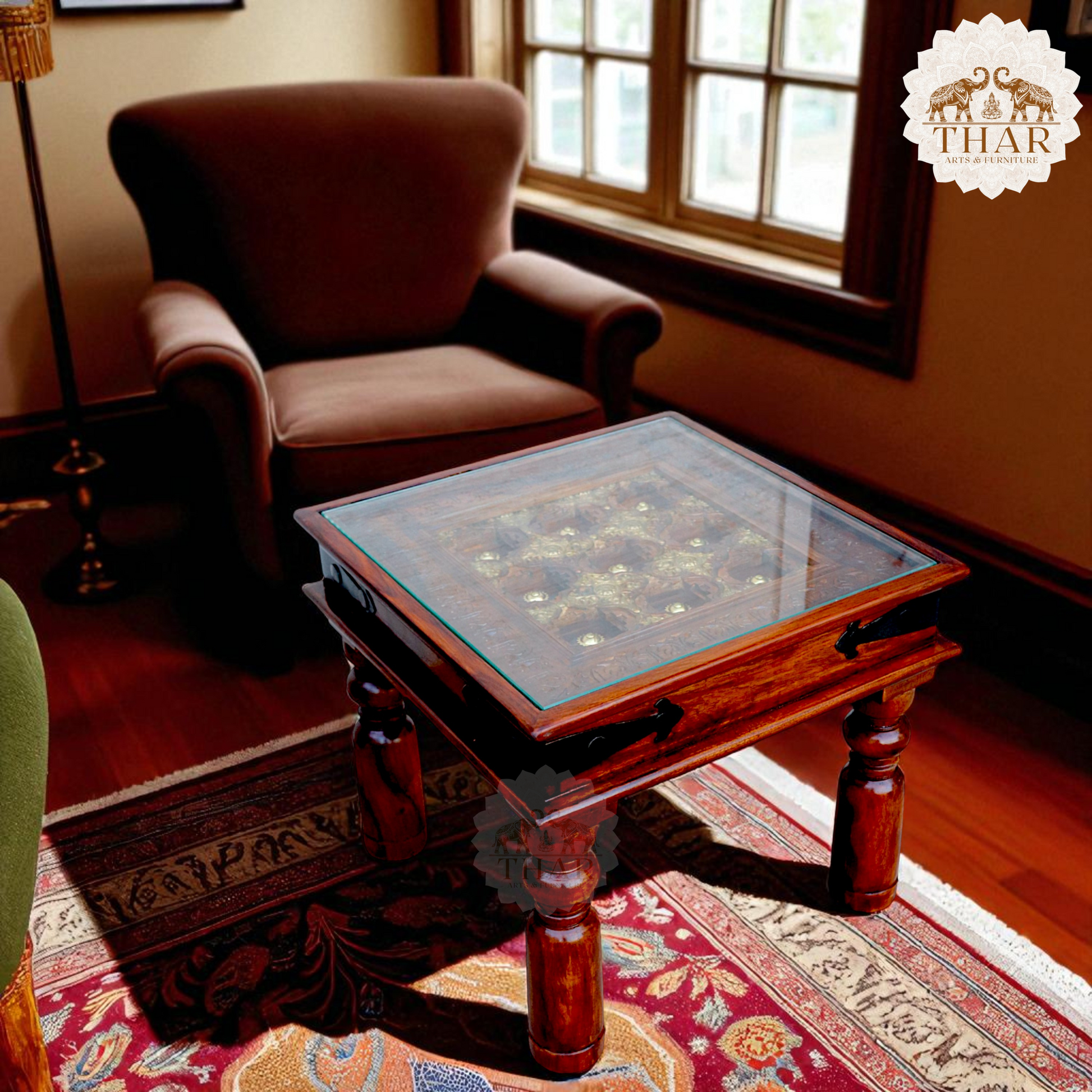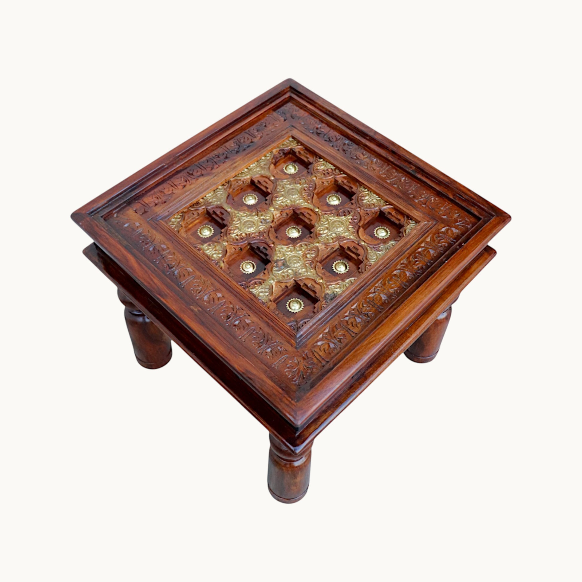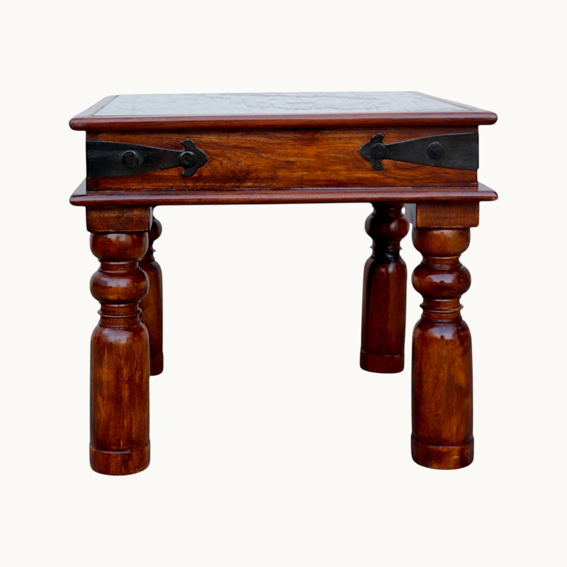Thar Arts And Furniture - Solid Sheesham Wood Side Table with Brass Art and finish