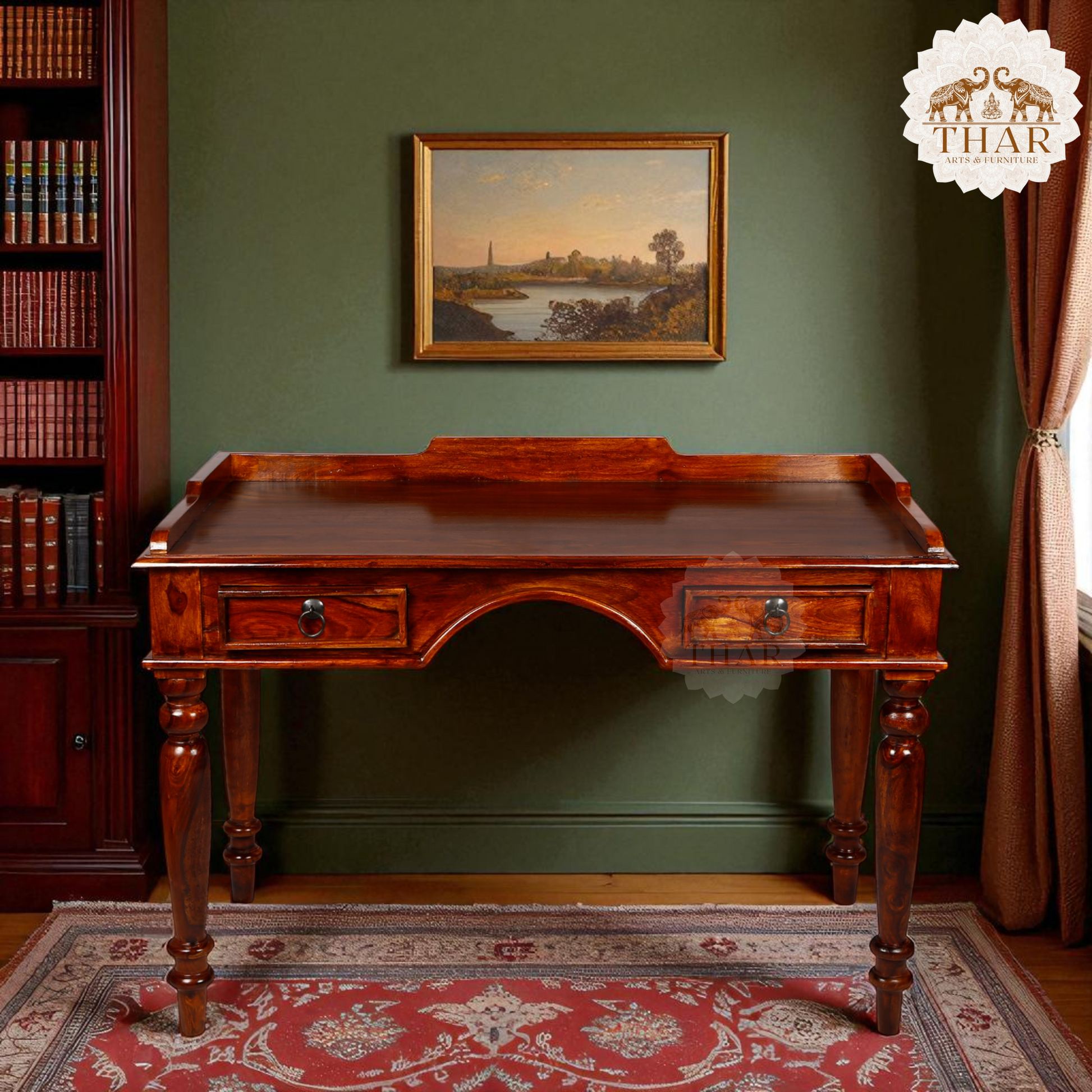 Thar Arts And Furniture - Solid Sheesham Wood Writing Table with 2 storage drawer