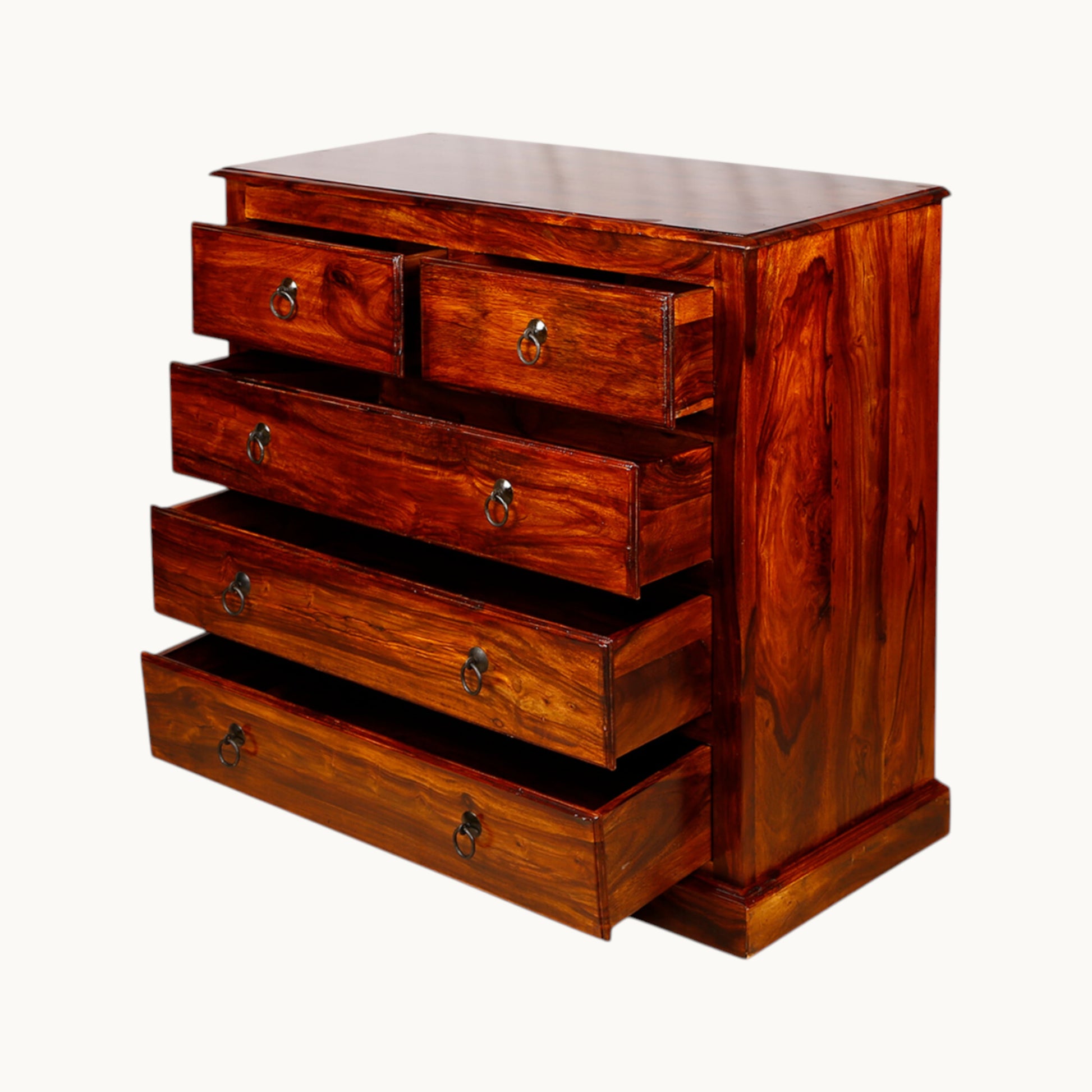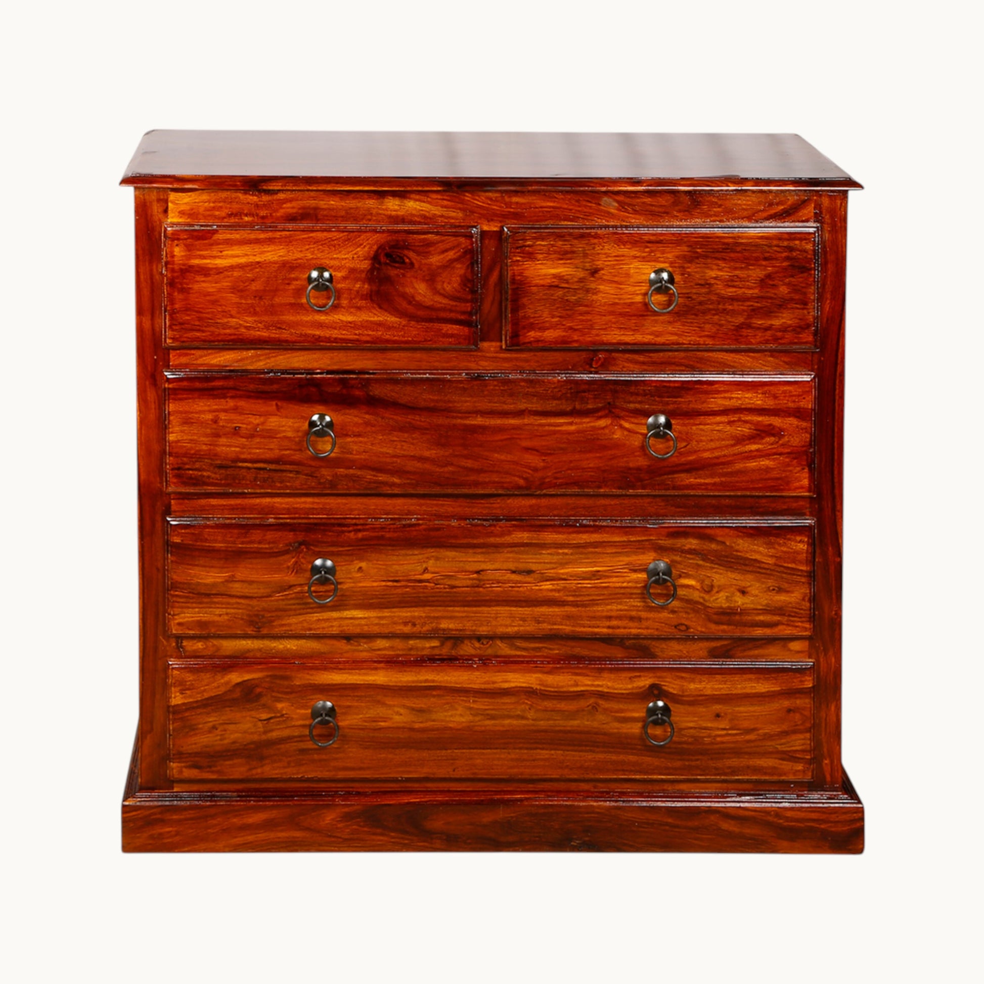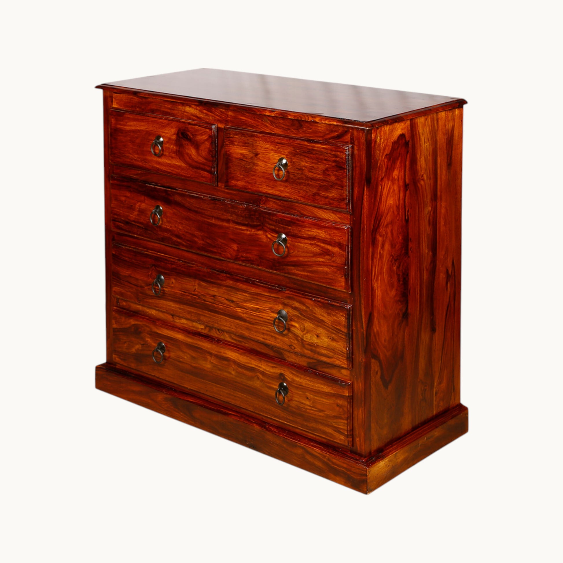 • Package Contains: 1 Pre-Assembled Sheesham Wood Chest of Drawer