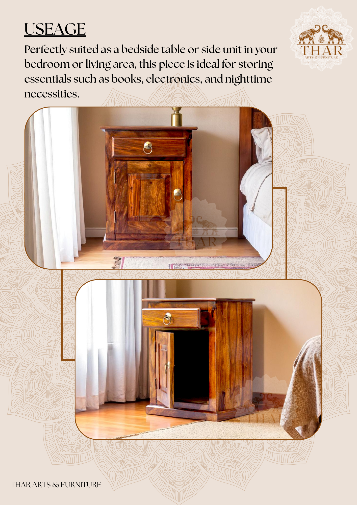 Thar Arts And Furniture - Sheesham Bedside with storage