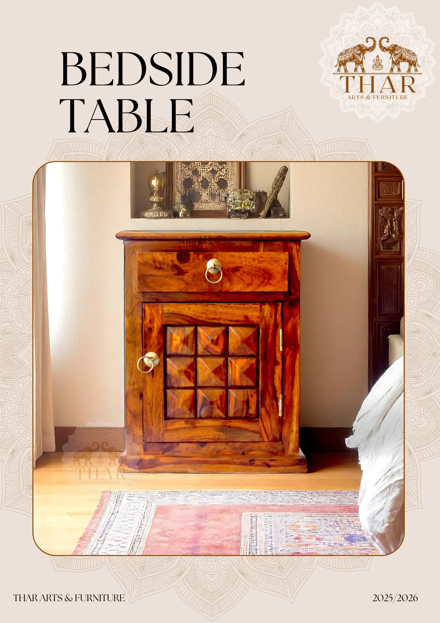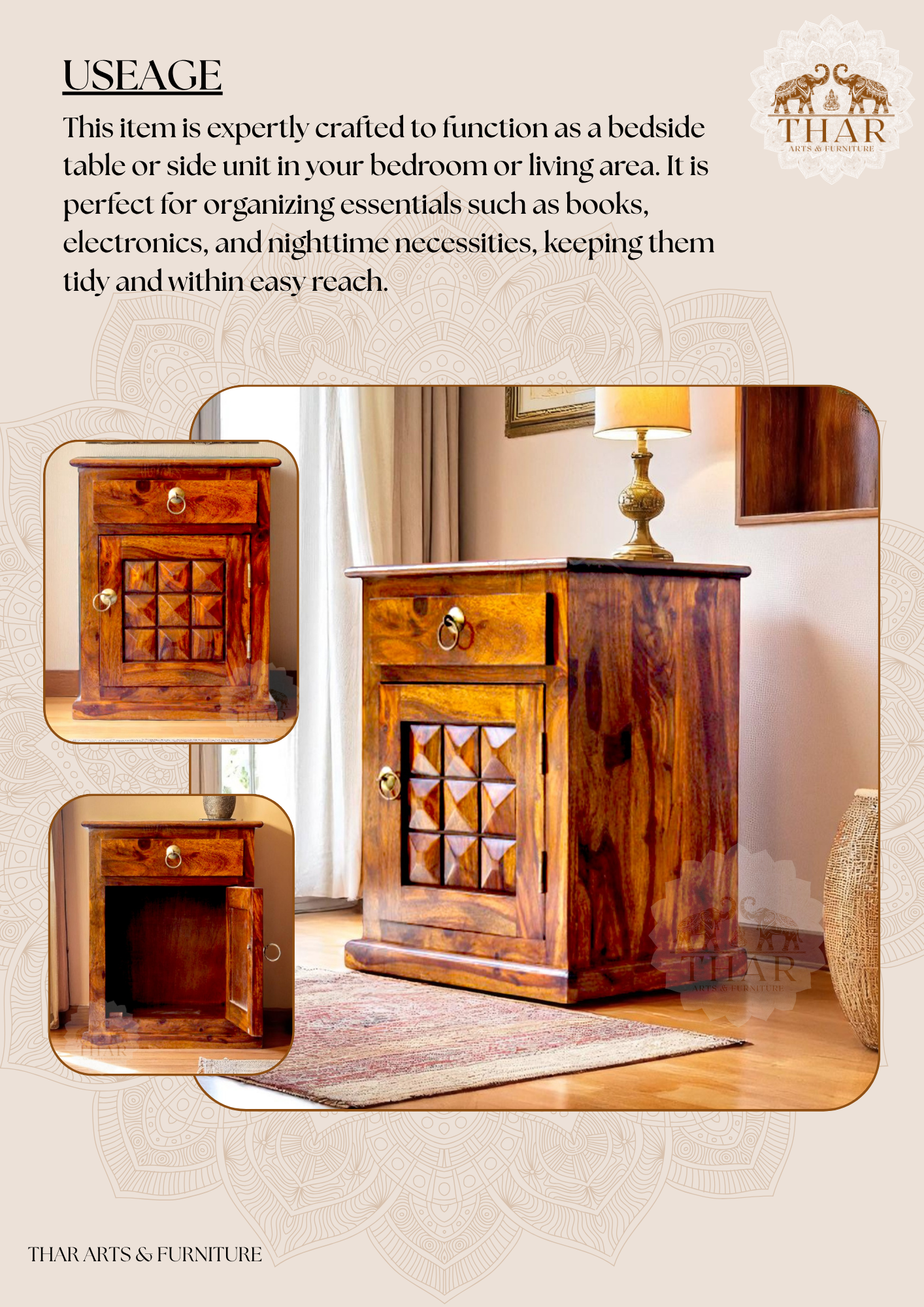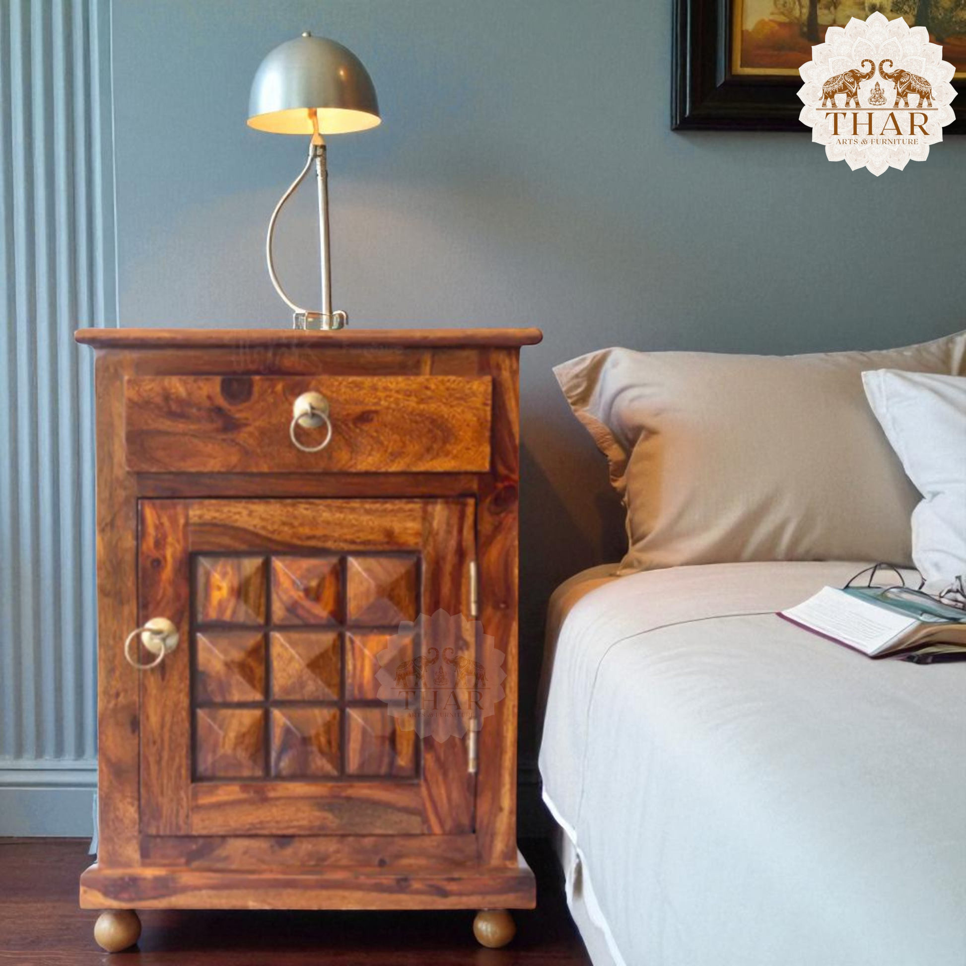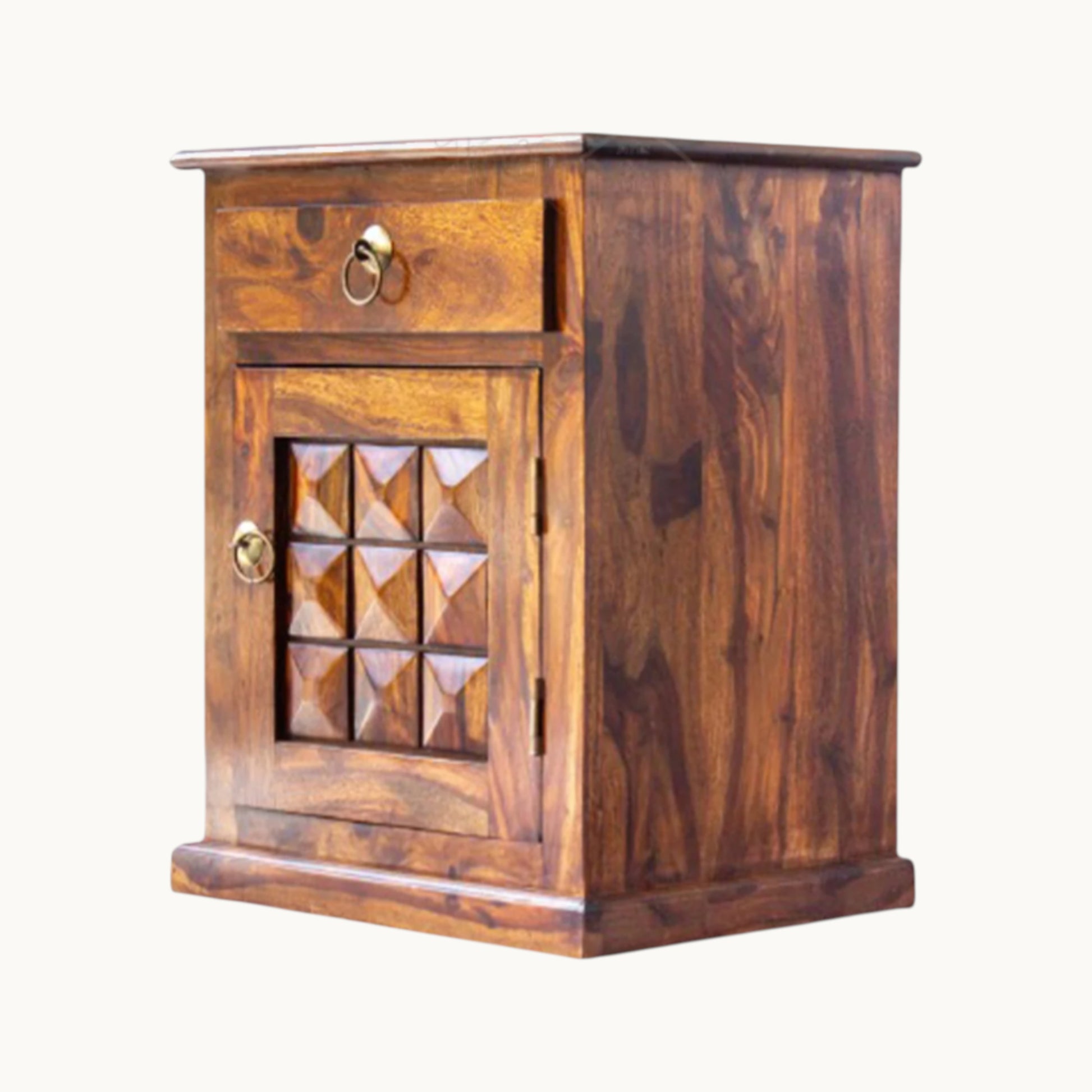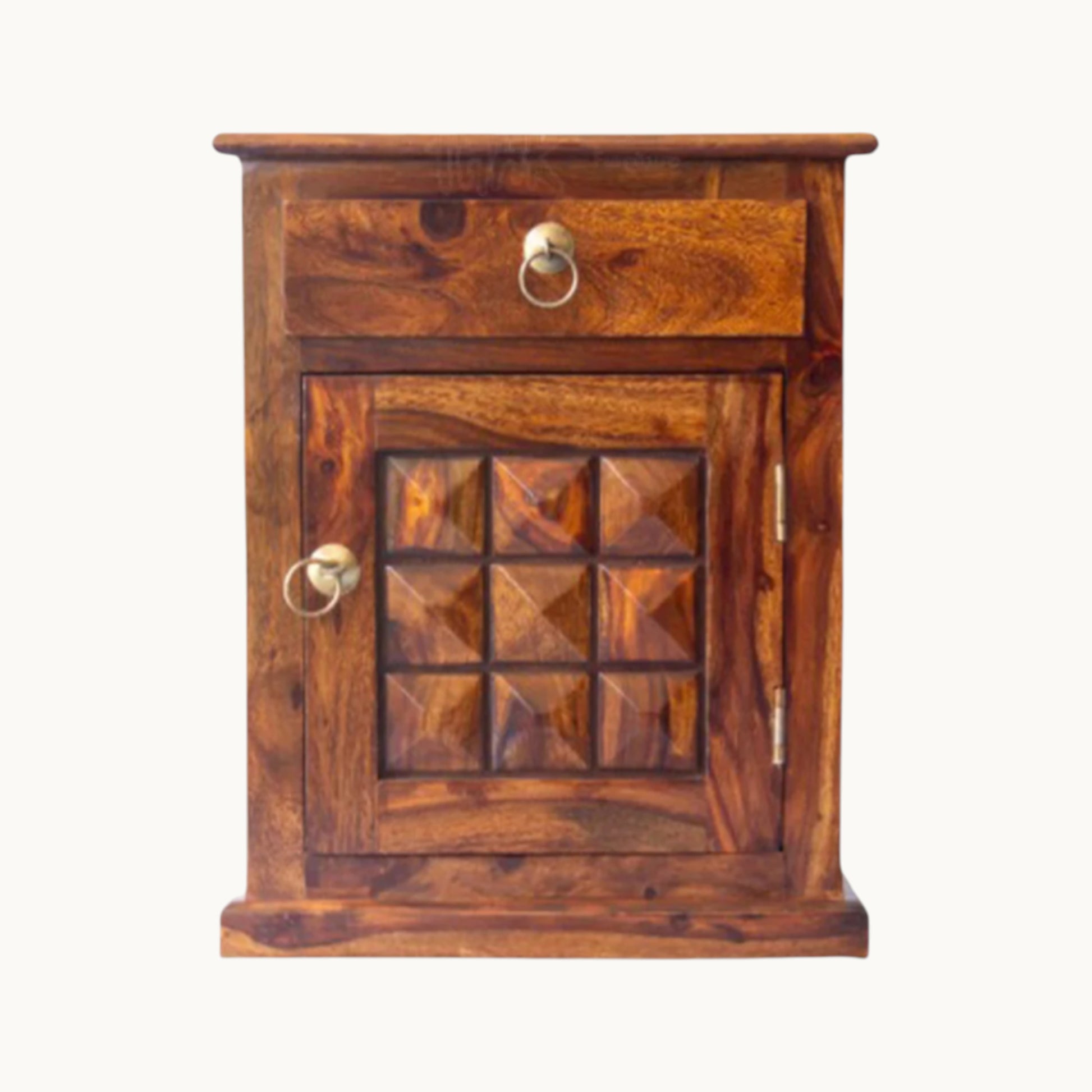 Thar Arts And Furniture - Sheesham Bedside with storage and checkerbox design