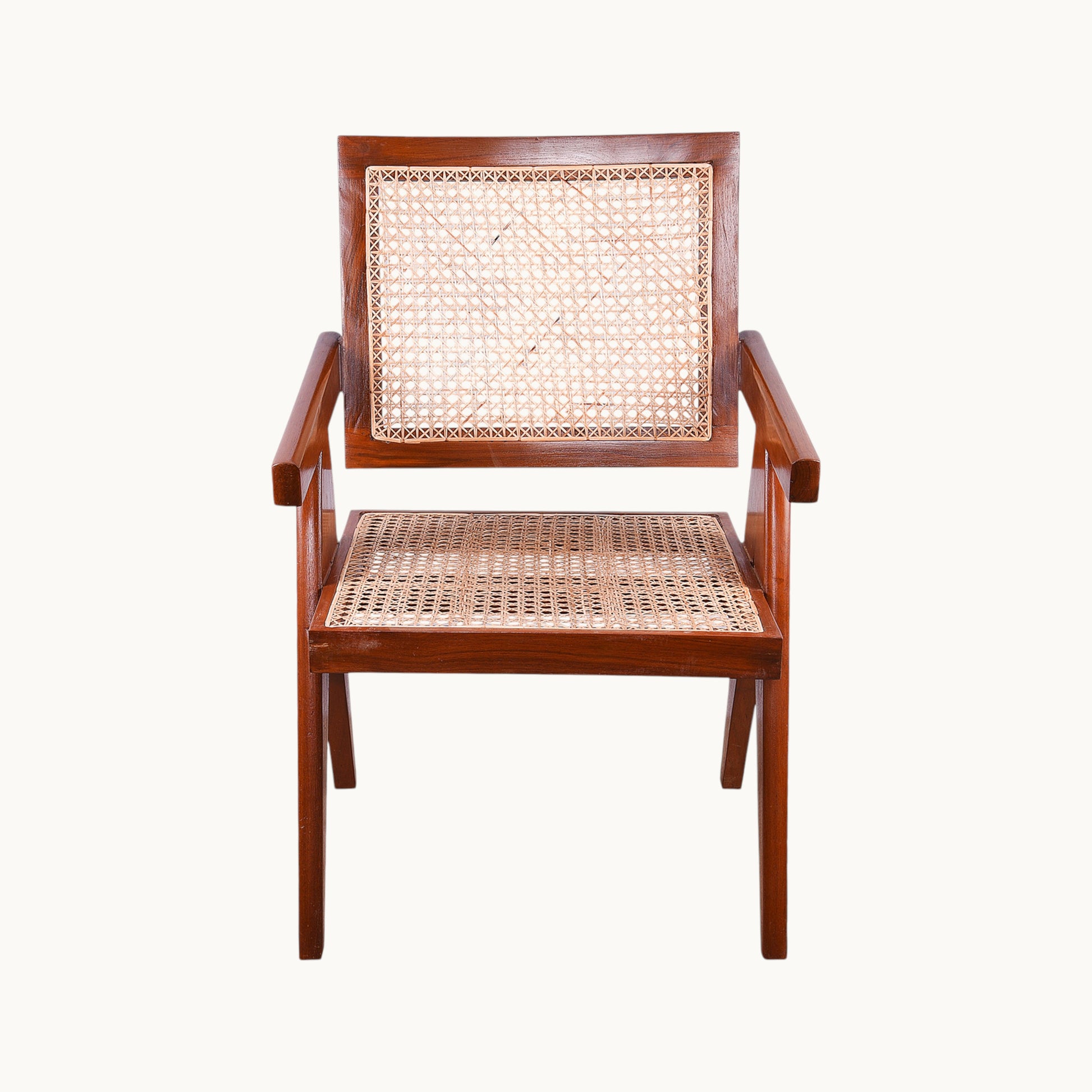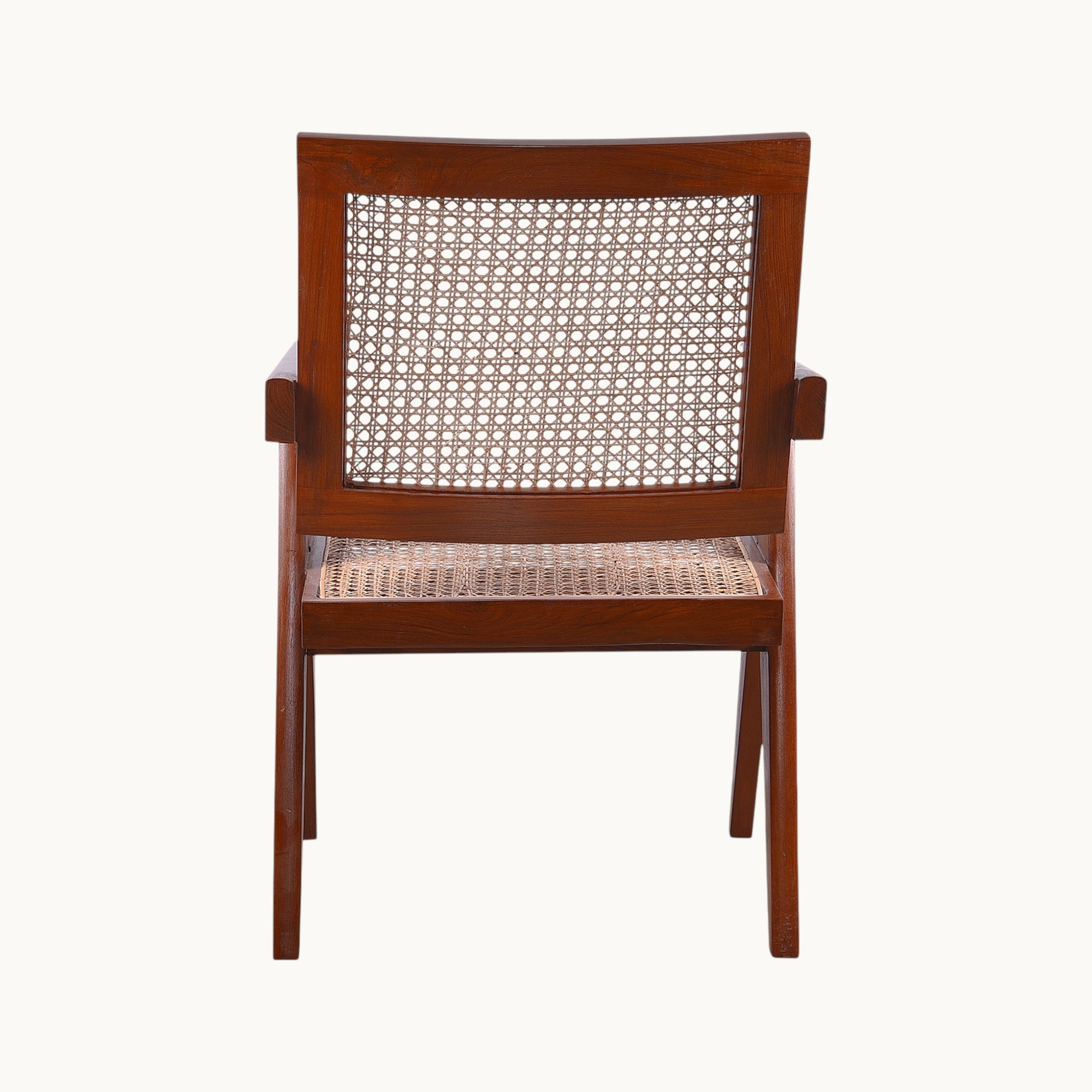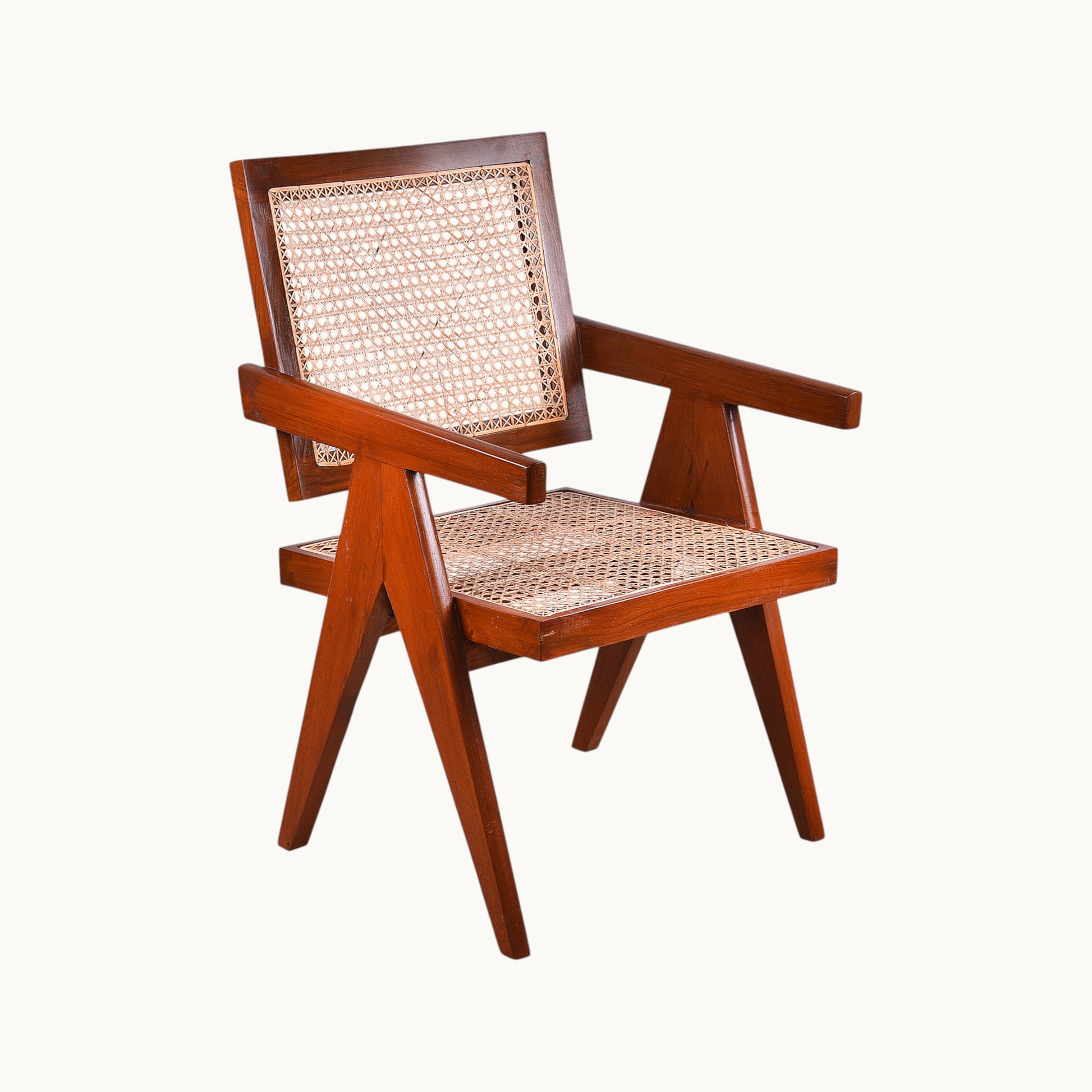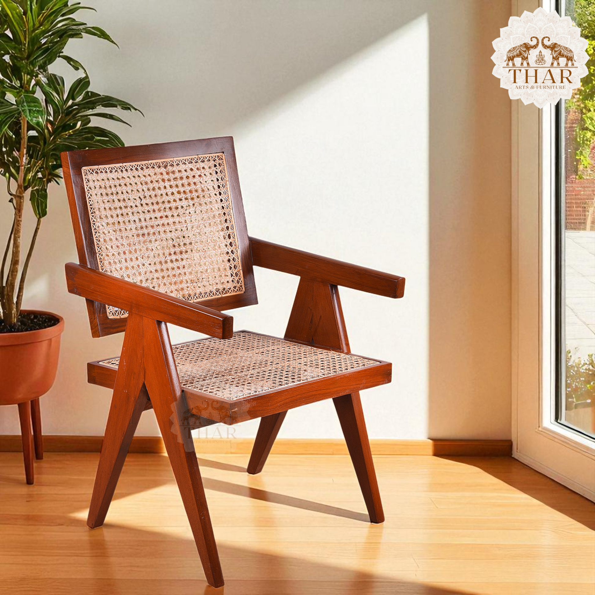 Thar Arts And Furniture - Teak wood Chair with armrest and cane finish ( Rattan )