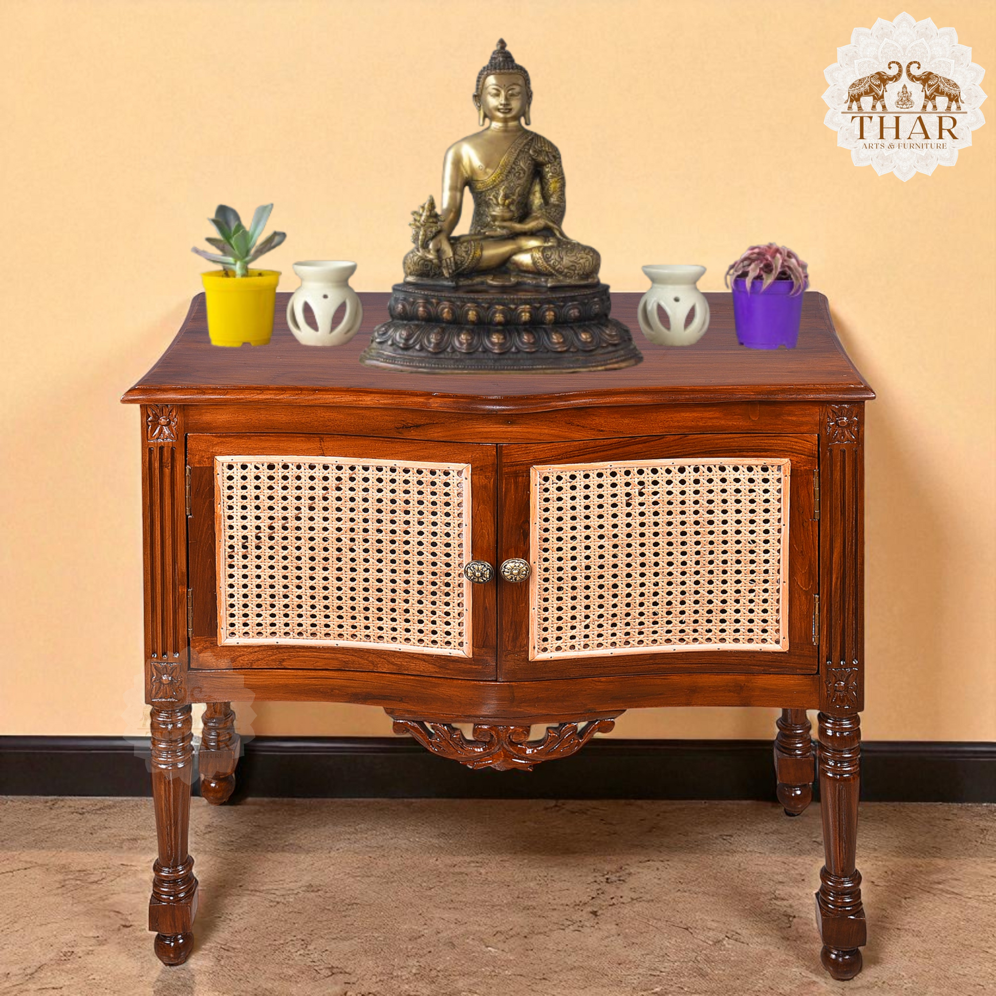 Thar Arts And Furniture - Teak Wood Console table / Cabinet with cane finish ( Rattan )
