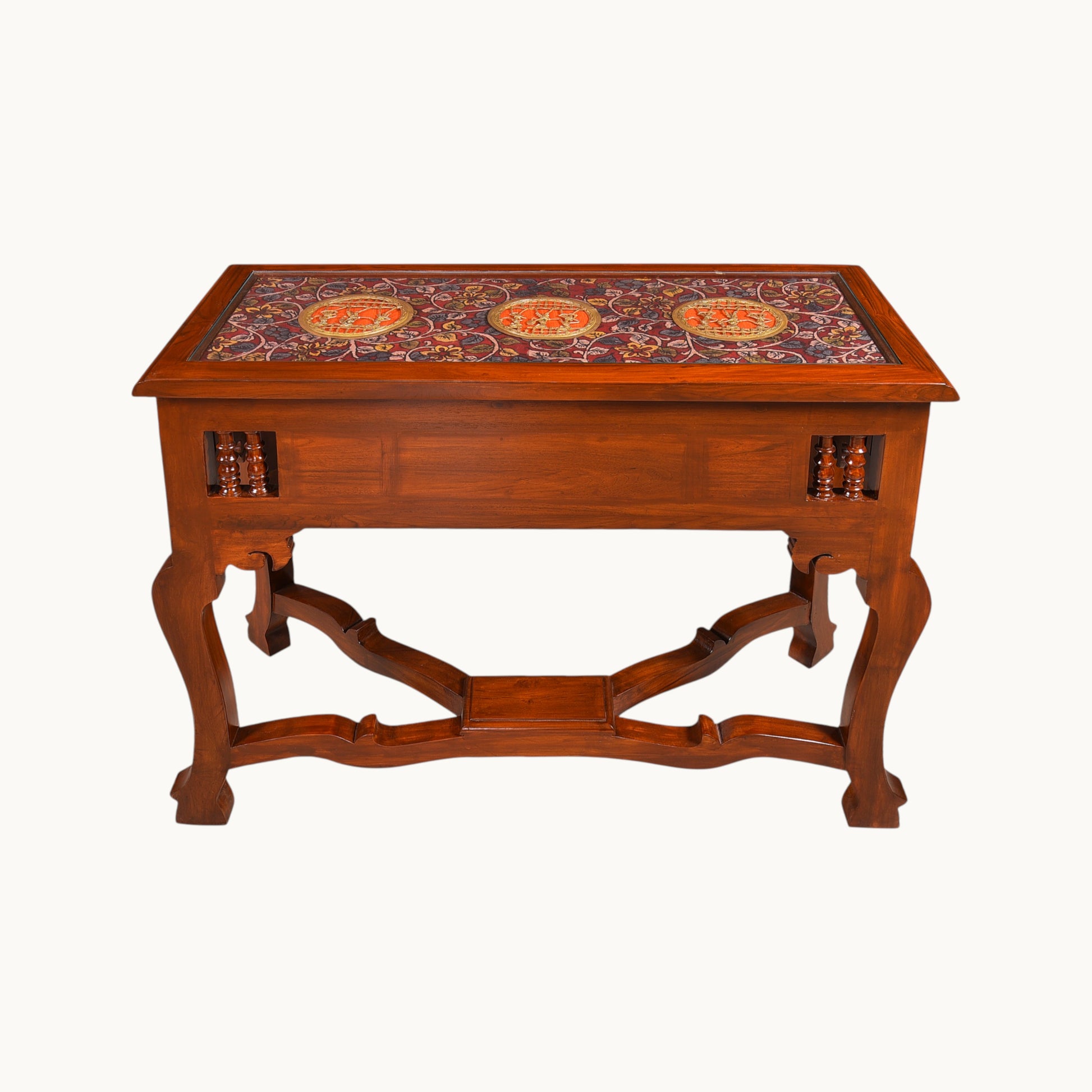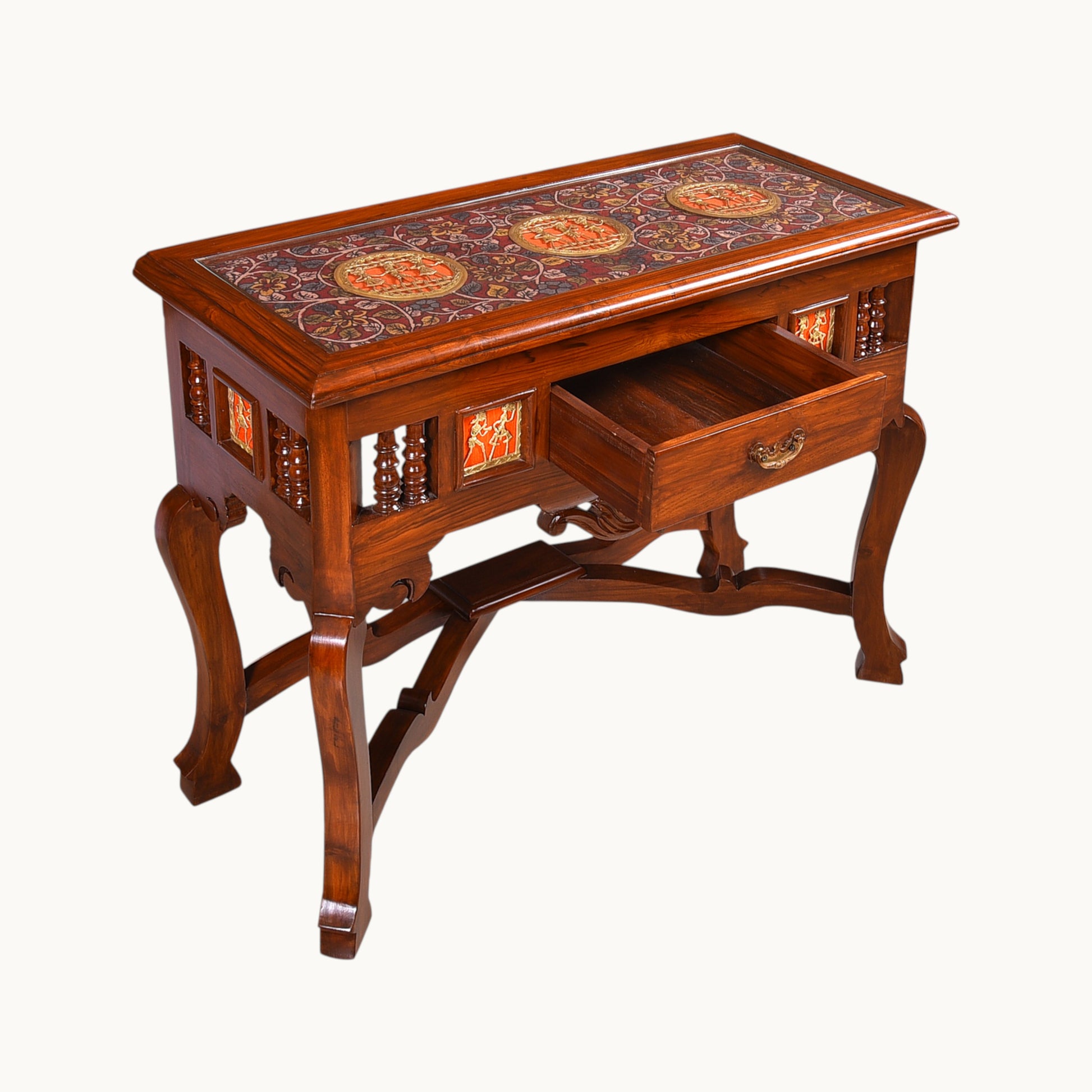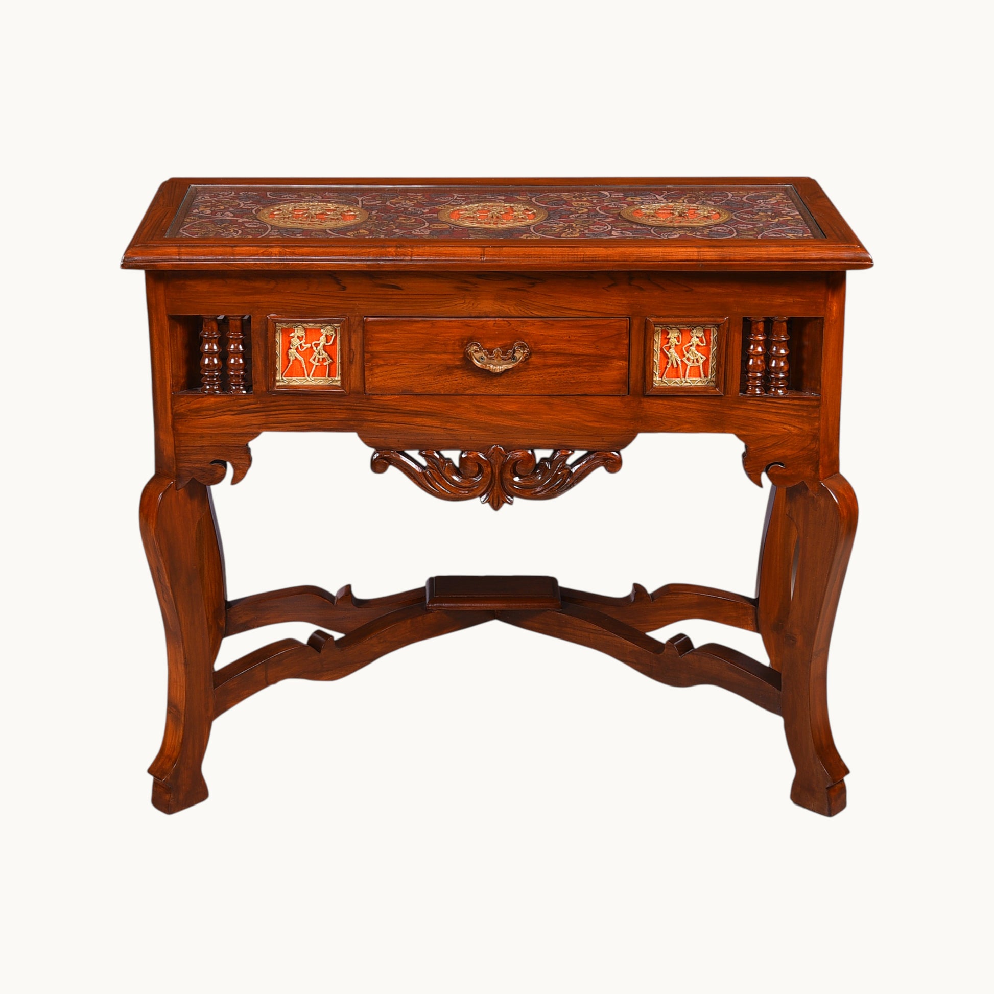 Thar Arts And Furniture -Teak Wood Console Table with Antique look Dhokra and Warli Art