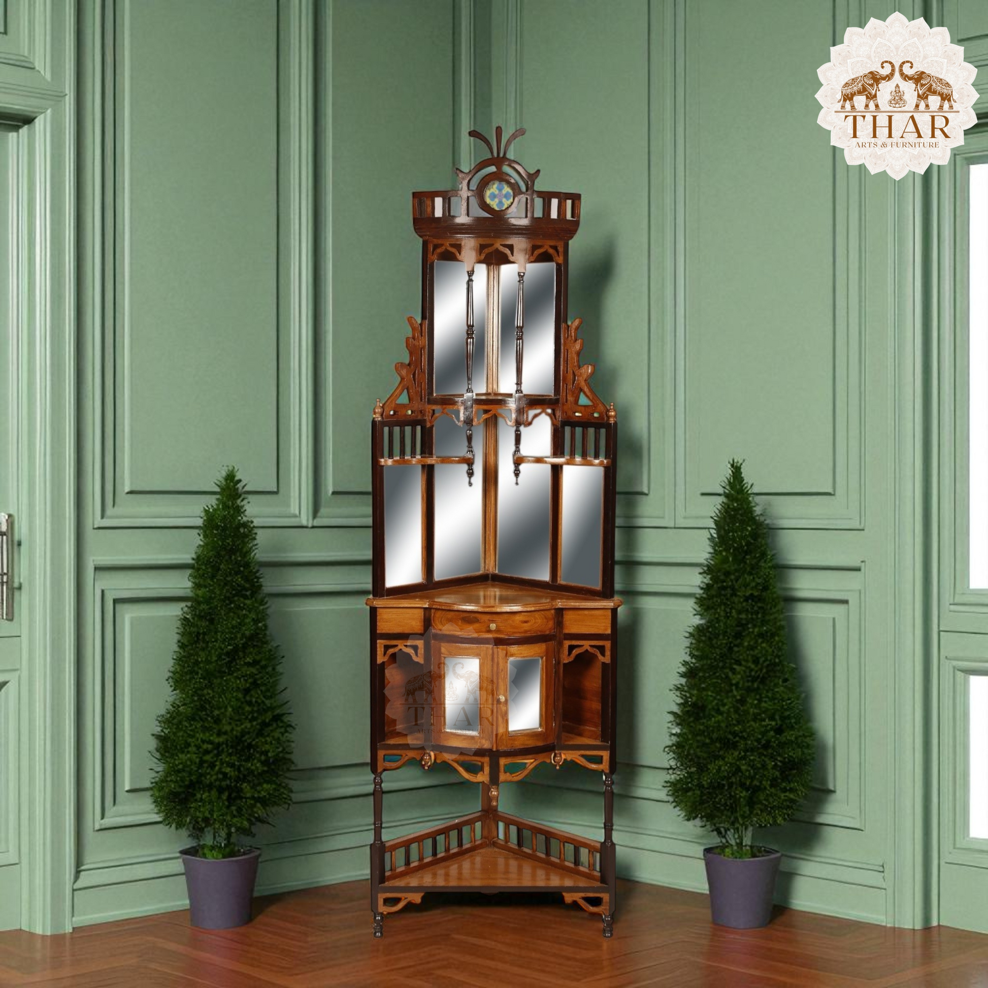 Thar Arts And Furniture - Teak Wood Dressing Table with Mirrors and Storage