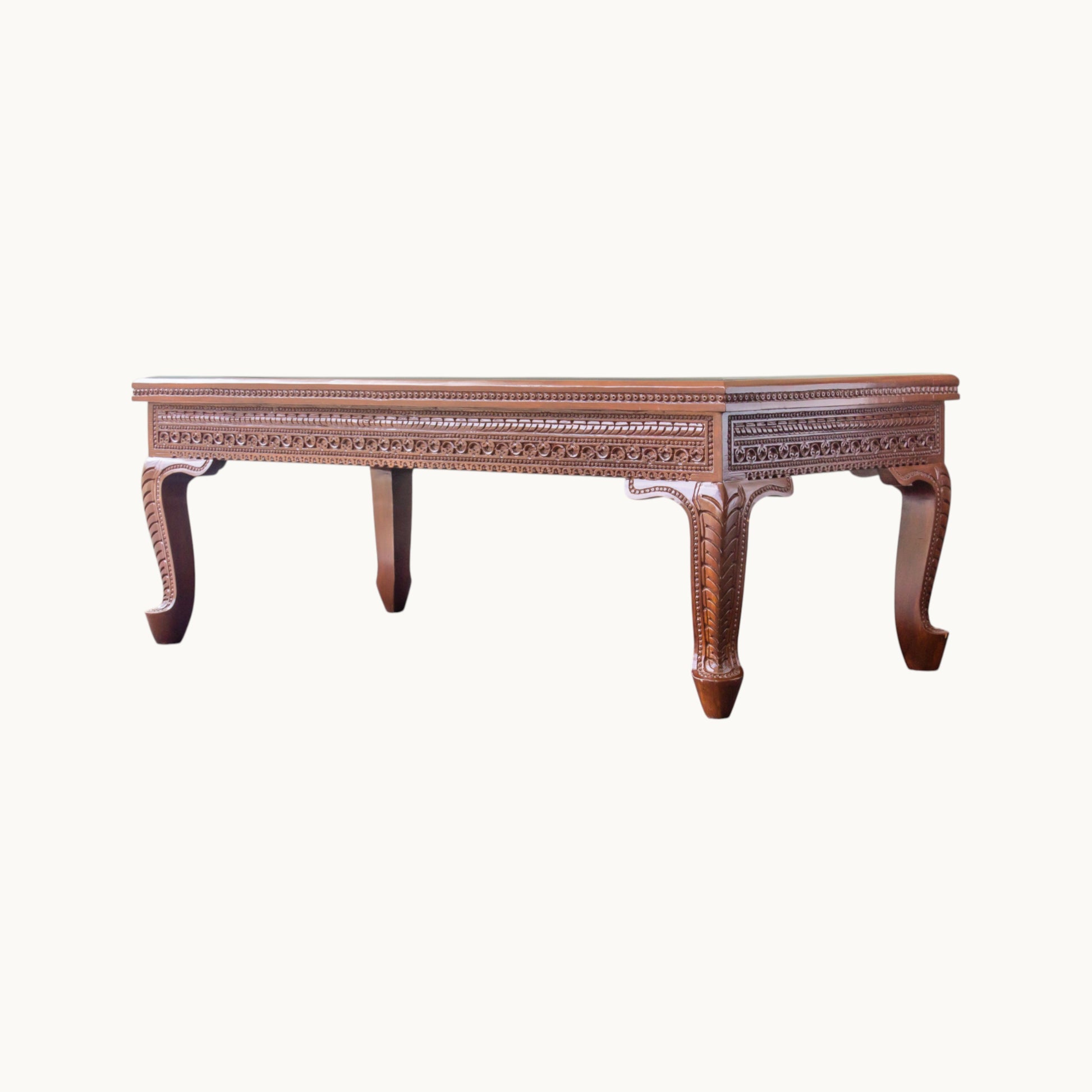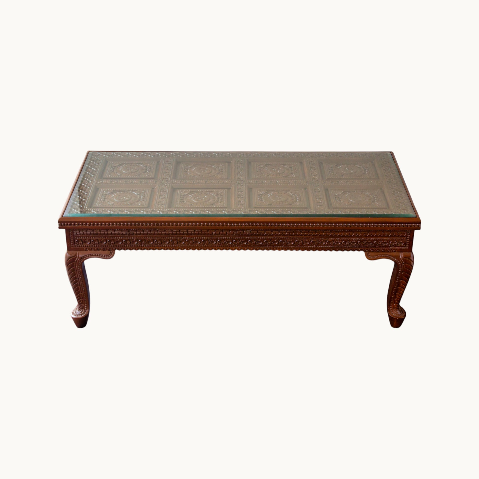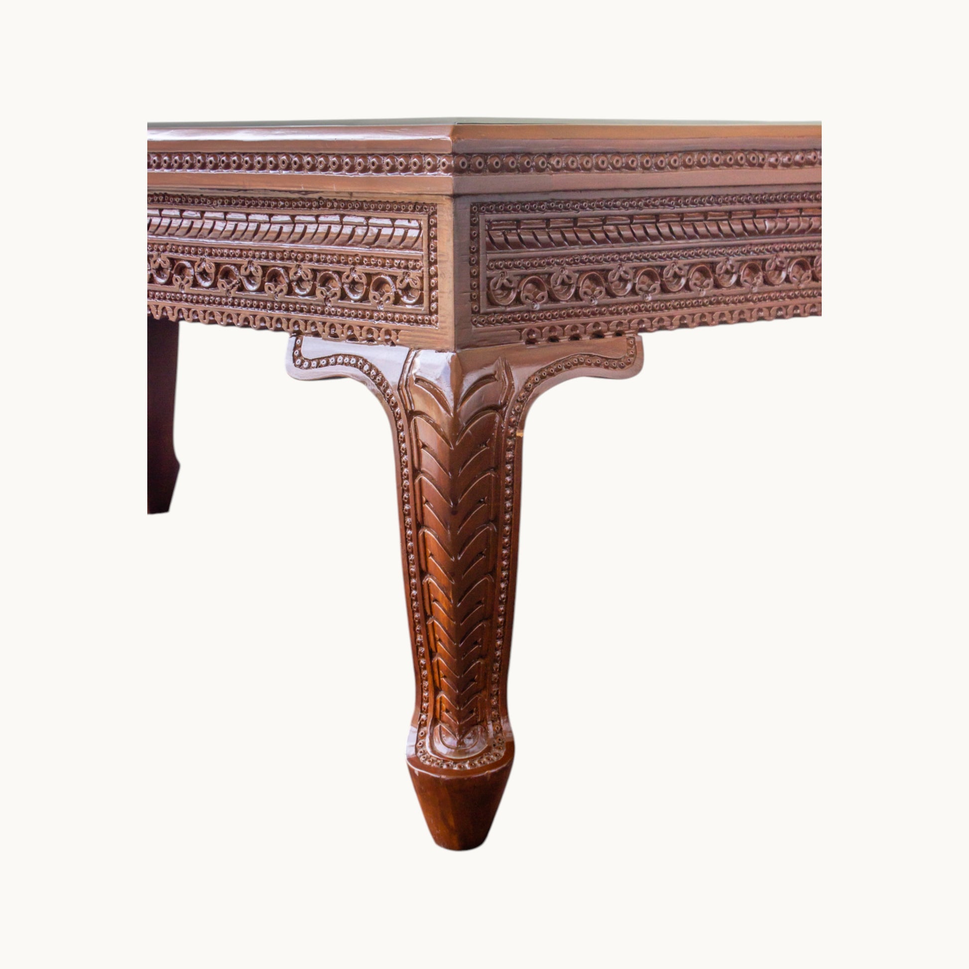 - Design: Hand-carved coffee table featuring traditional motifs and a smooth glass surface, blending elegance with craftsmanship