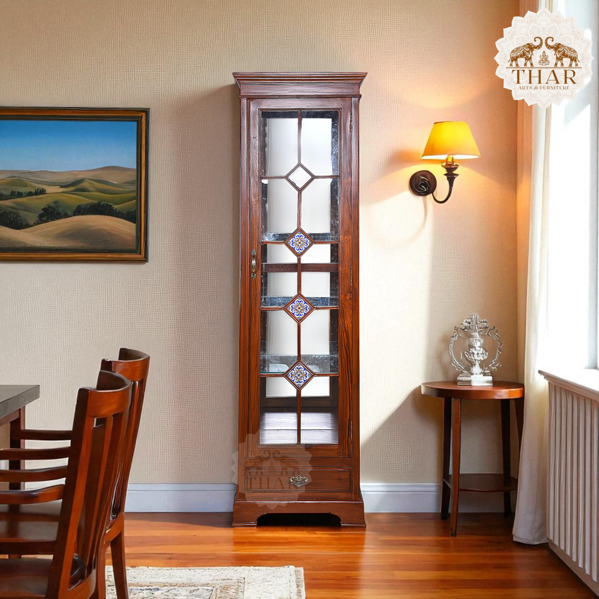 Thar Arts And Furniture - Teak wood Showcase Cabinet with Glass and Antique Finish