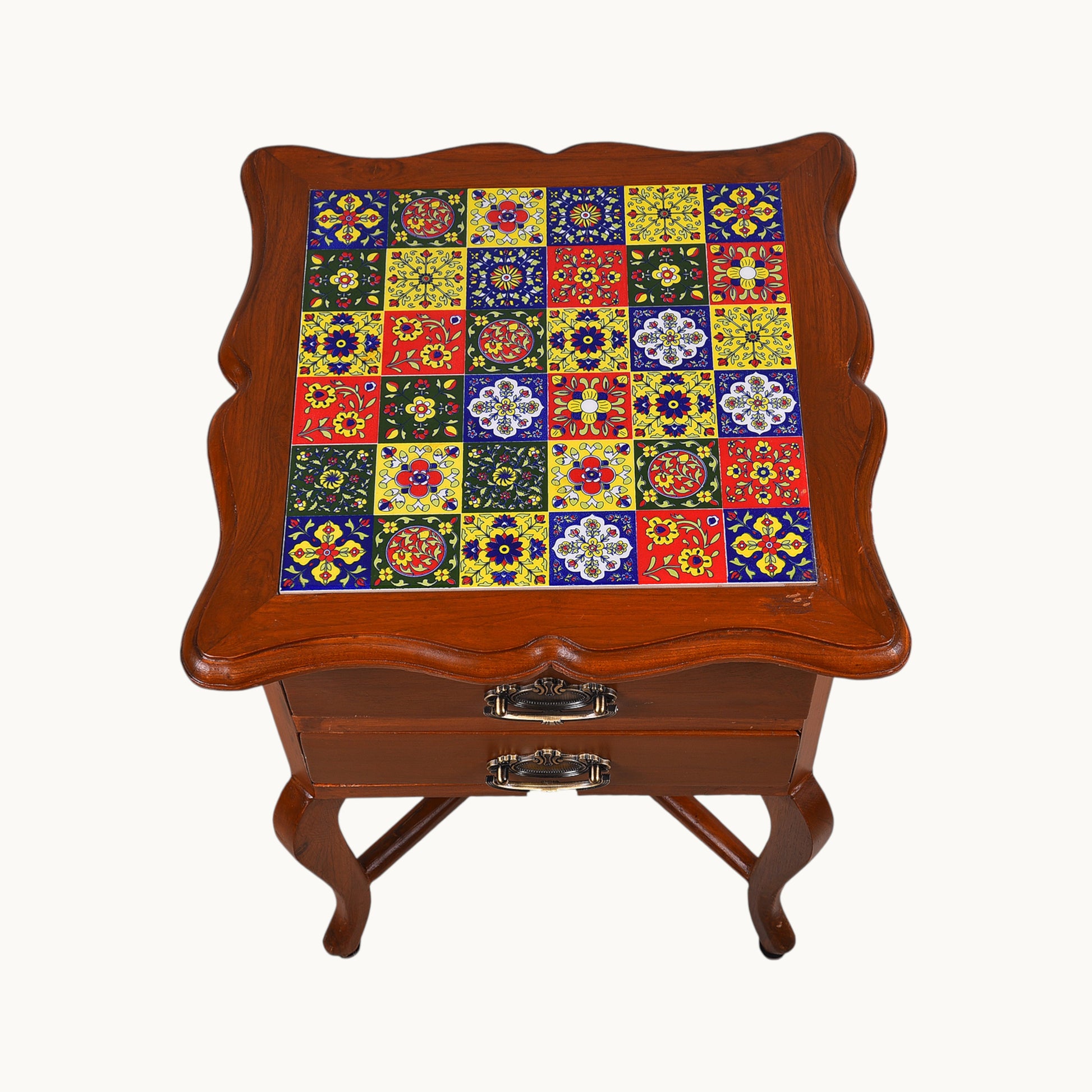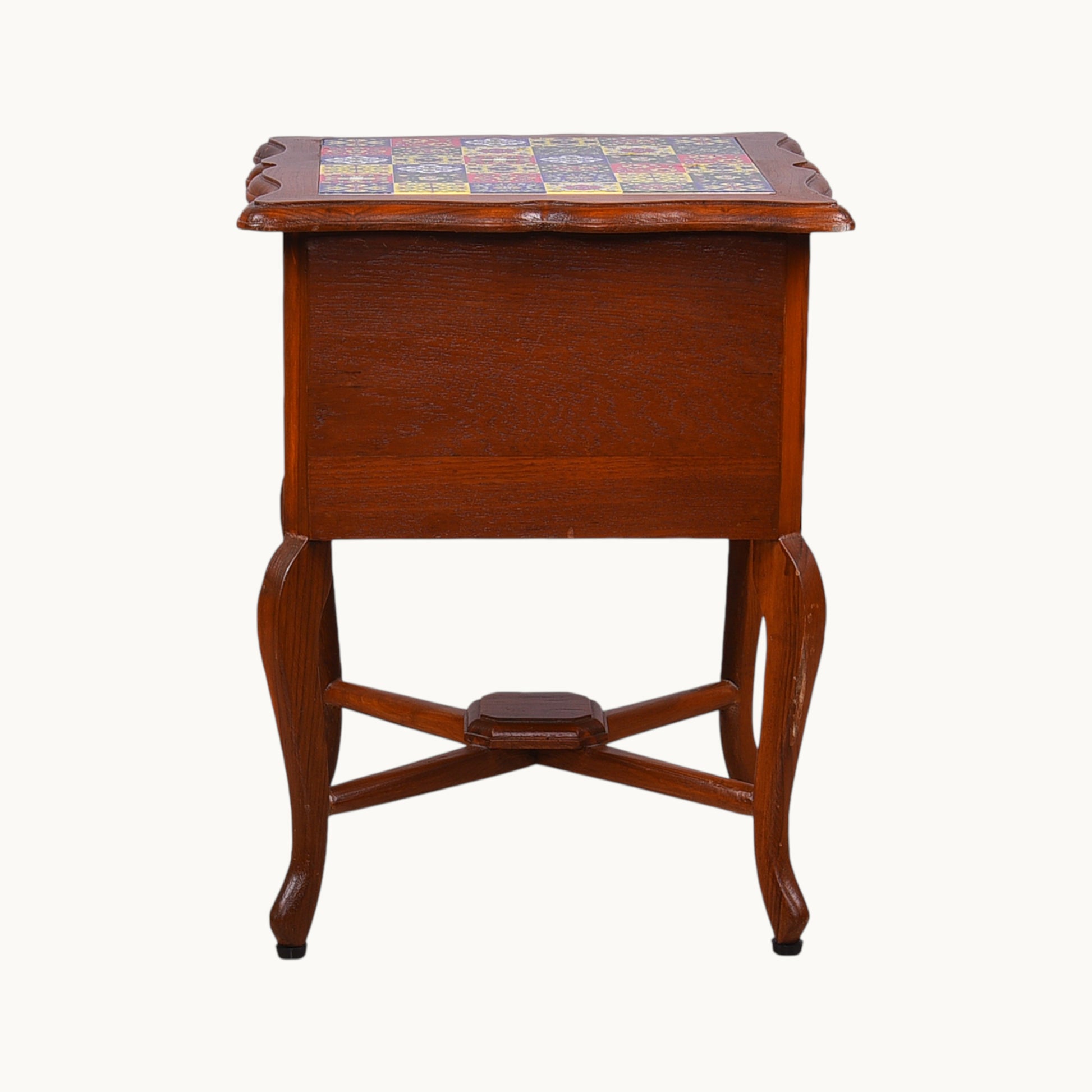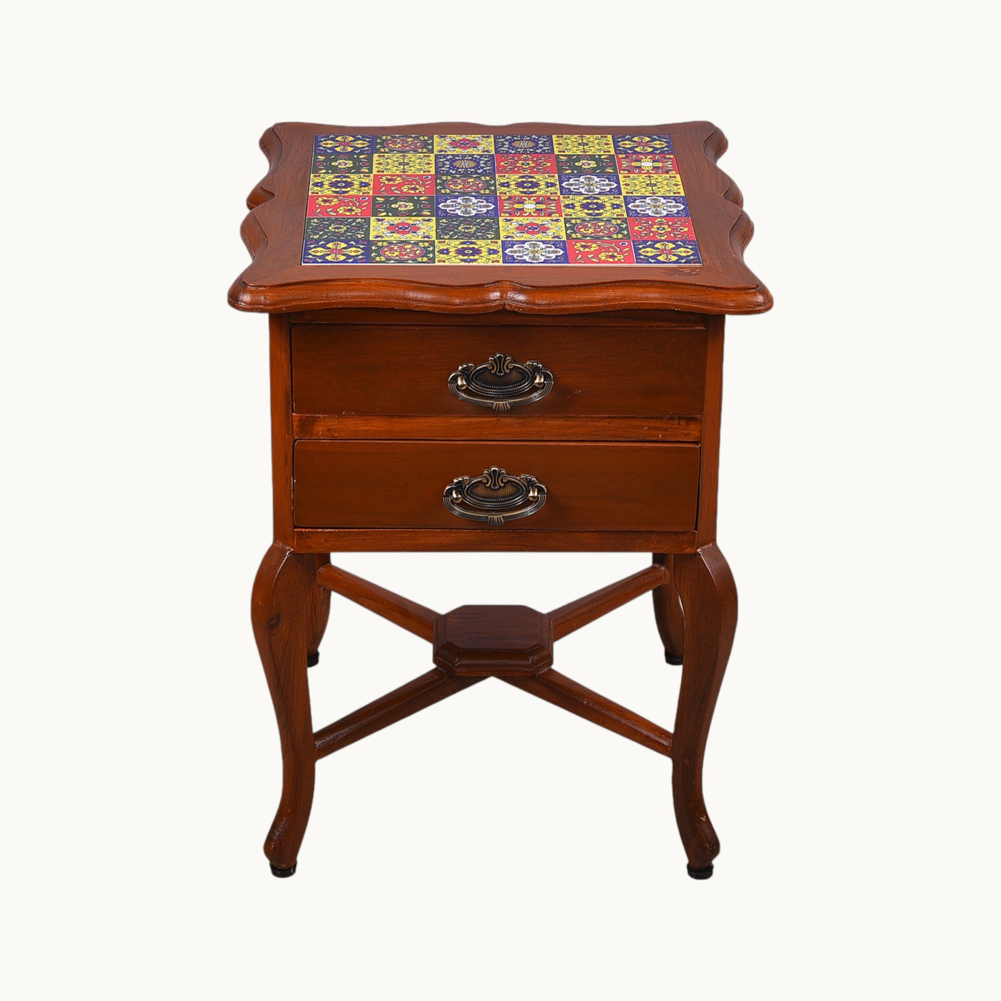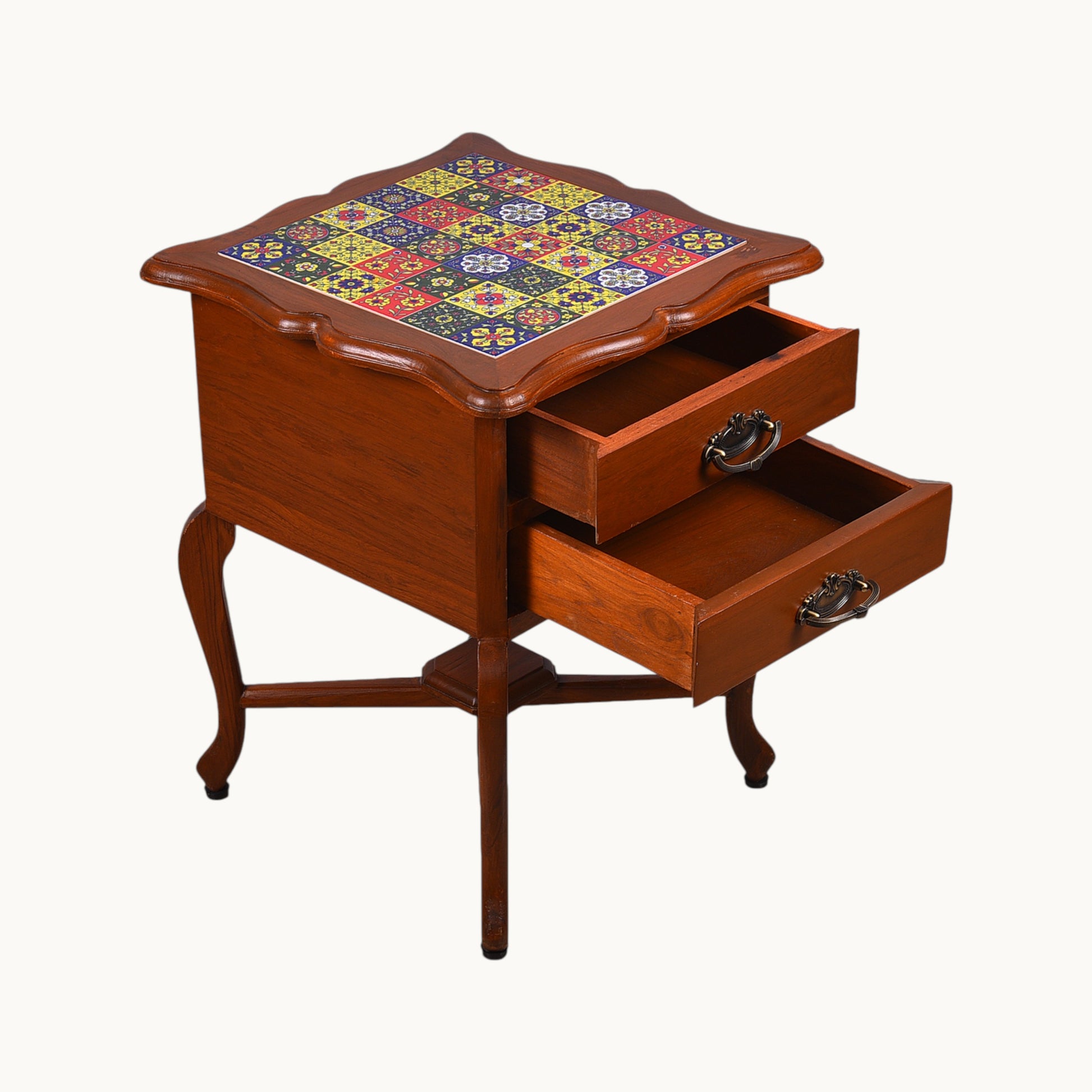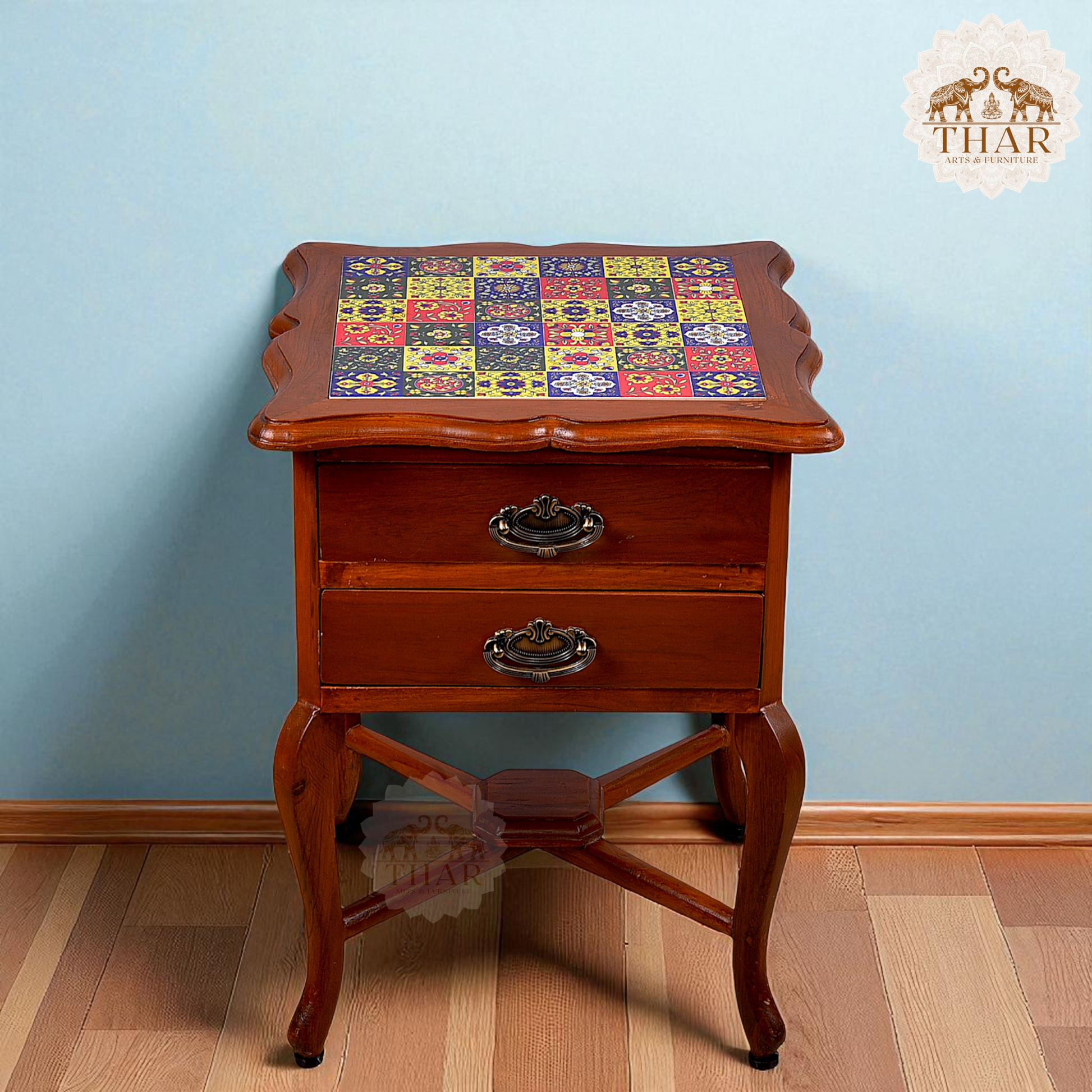 Thar Arts And Furniture - Teak wood Side Table with 2 teir Storage and Tile Finish