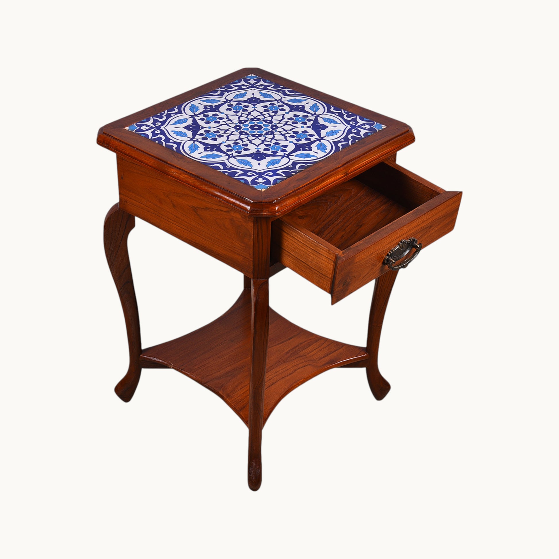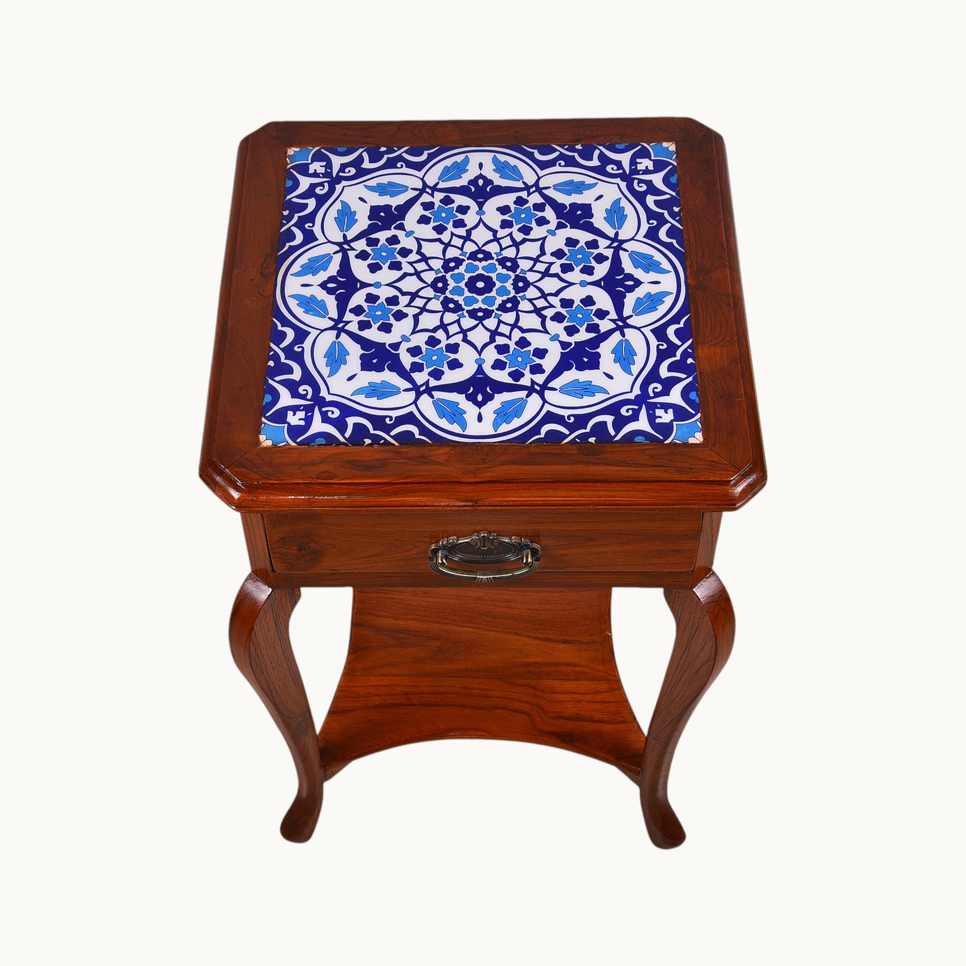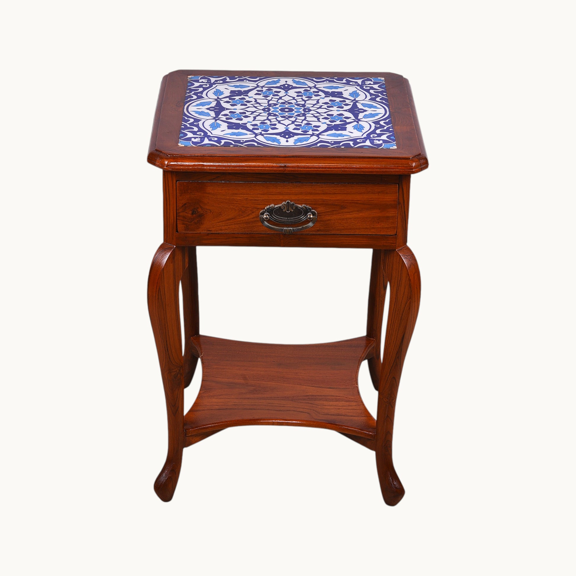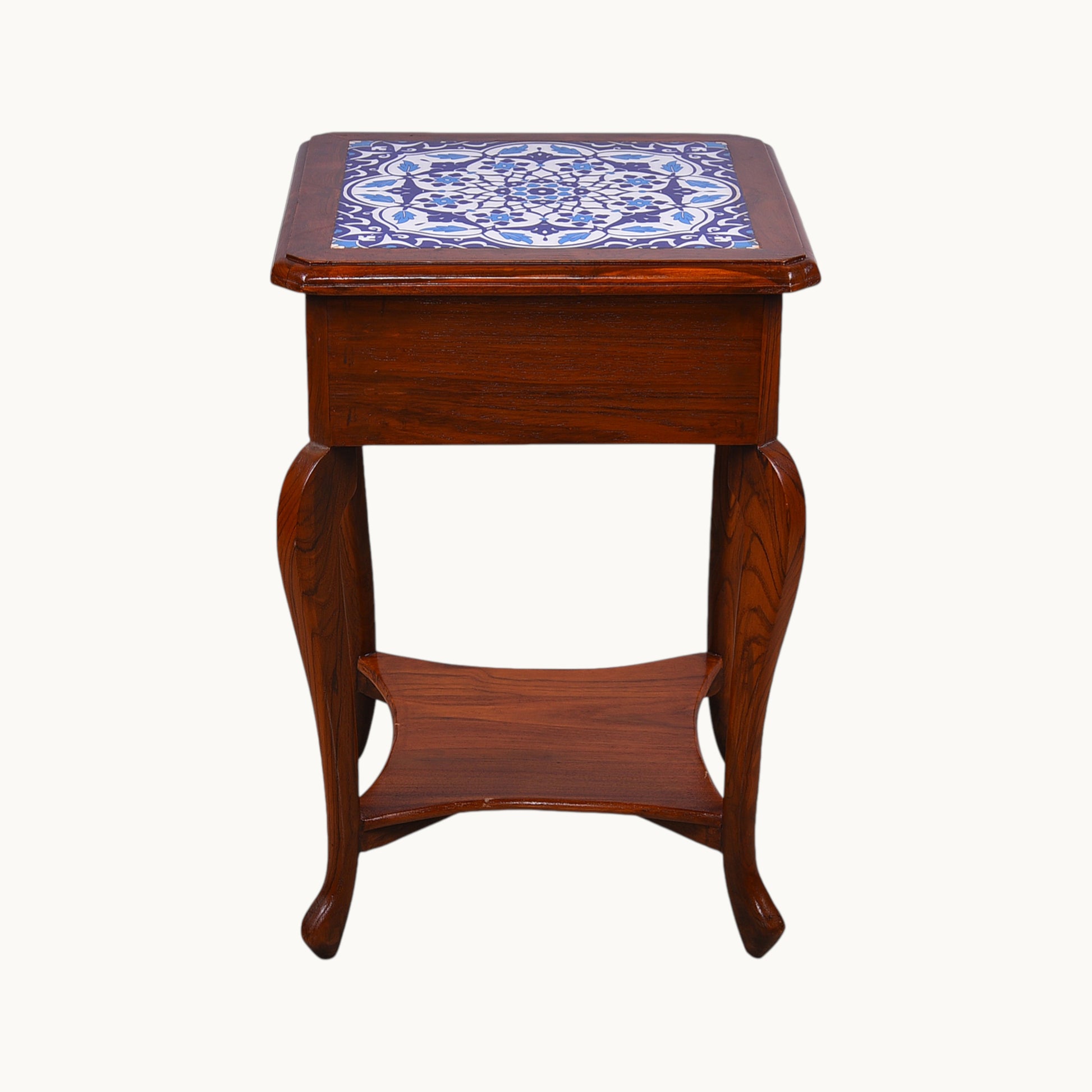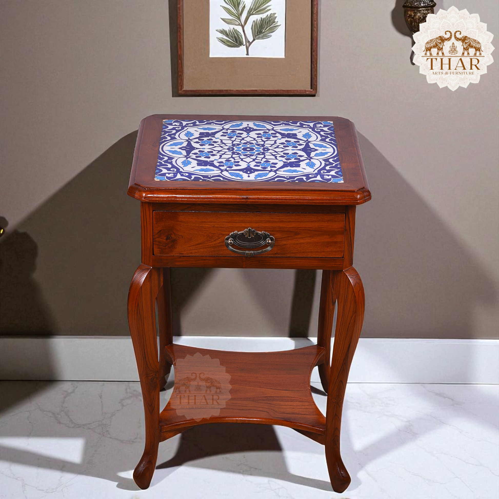 Thar Arts And Furniture - Teak wood Side Table with Tile