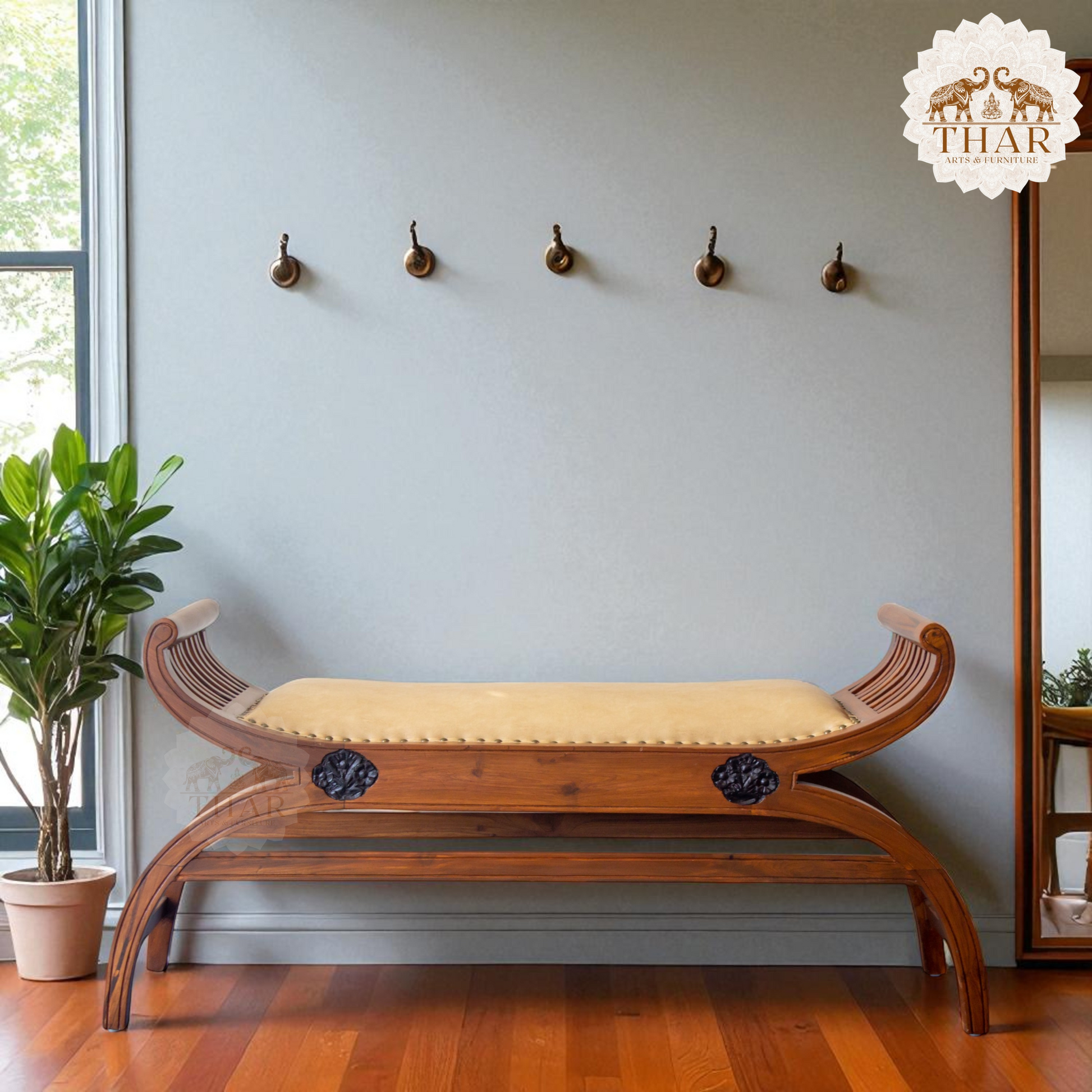 Thar Arts And Furniture - Teak Wood Two Seater Bench with Cushion