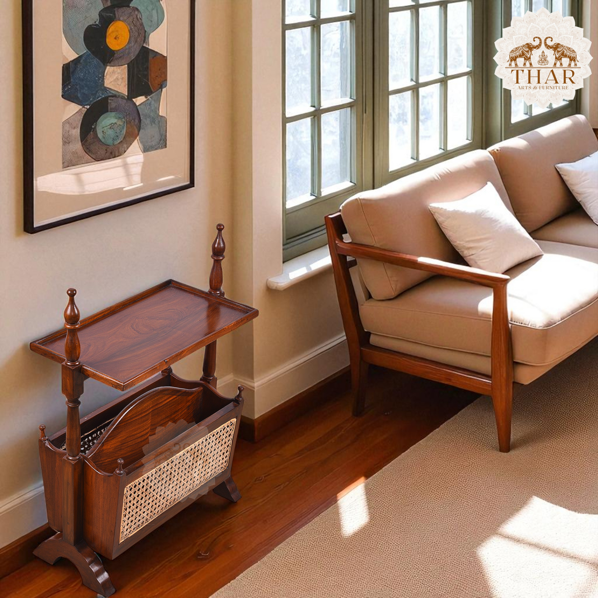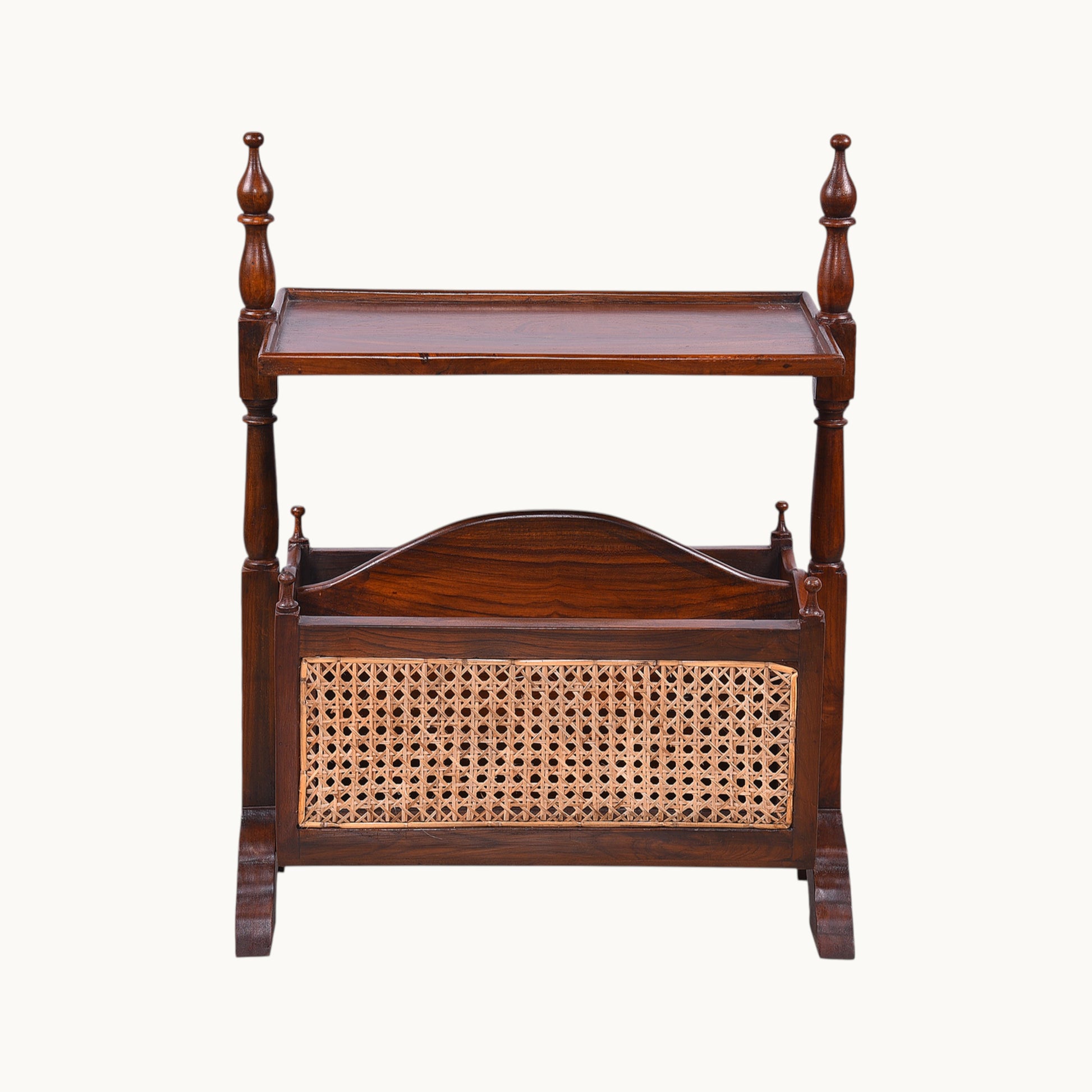 Thar Arts And Furniture - Teakwood Antique Style and Finish Magazine rack with Cane Work ( Rattan )