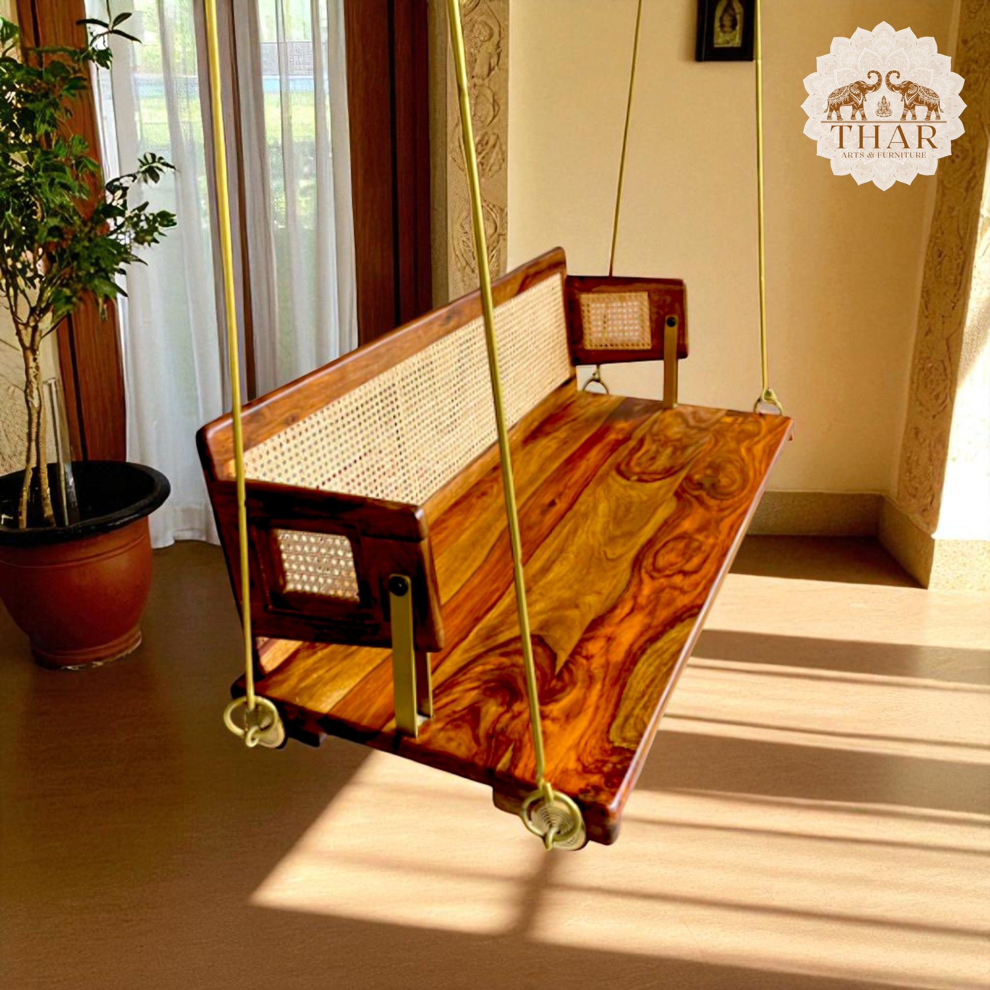 Thar Arts & Furniture - Solid Sheesham Wood & Cane Reversable Backrest Swing