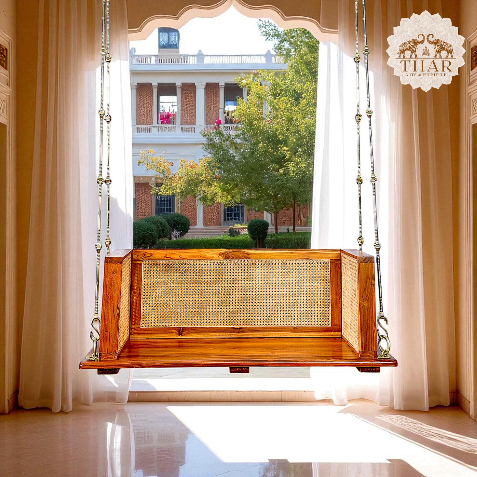 Thar Arts & Furniture - Teak Wood & Cane Weave Swing