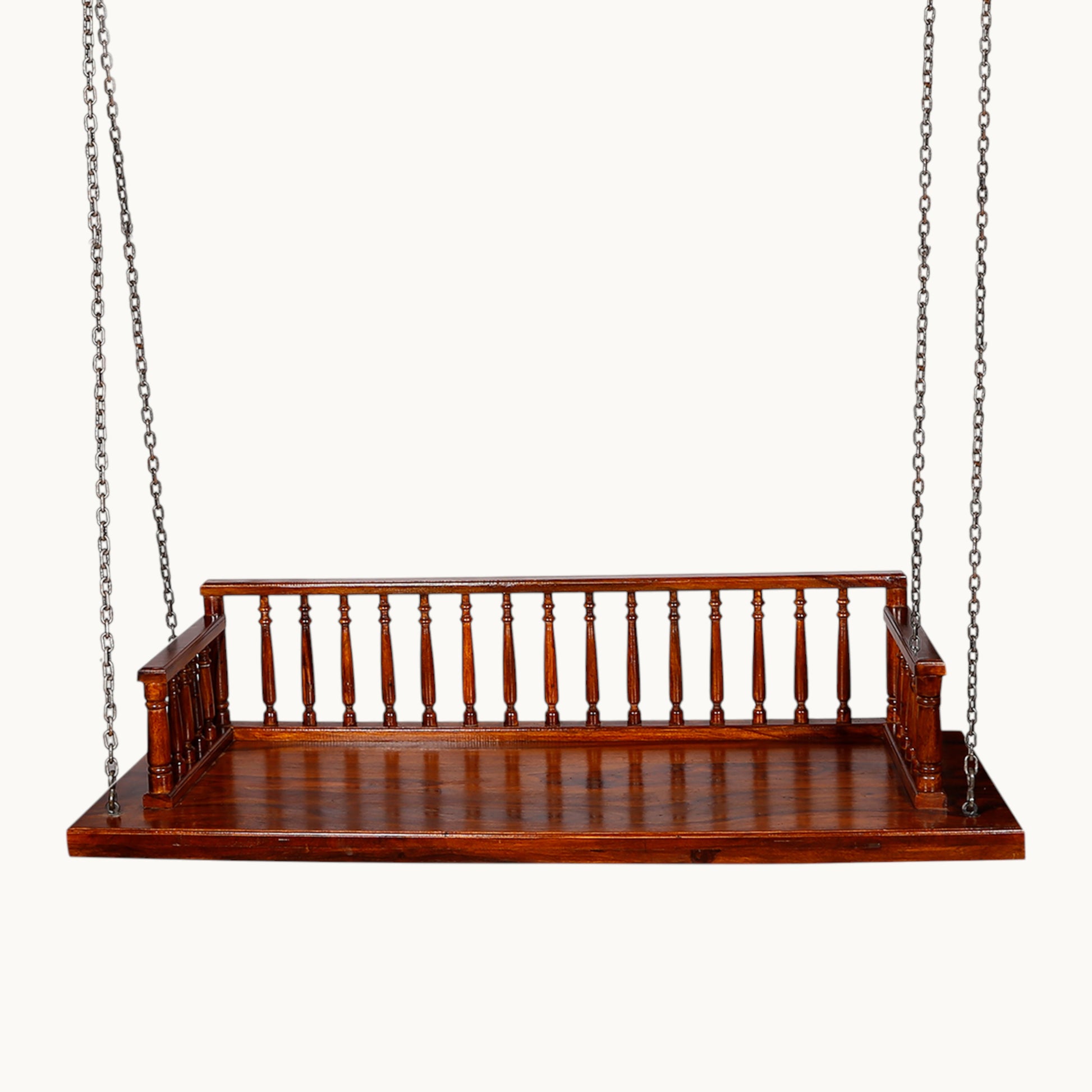 • Design: Traditional rectangular swing with intricately carved spindle backrest and side panels, offering both comfort and a touch of heritage elegance