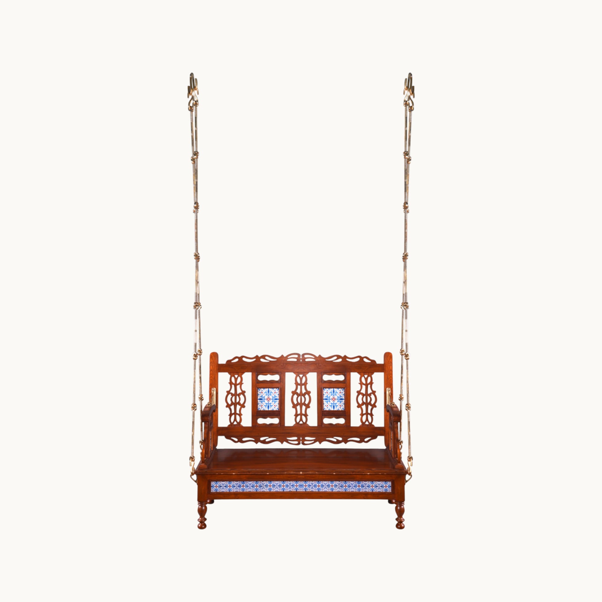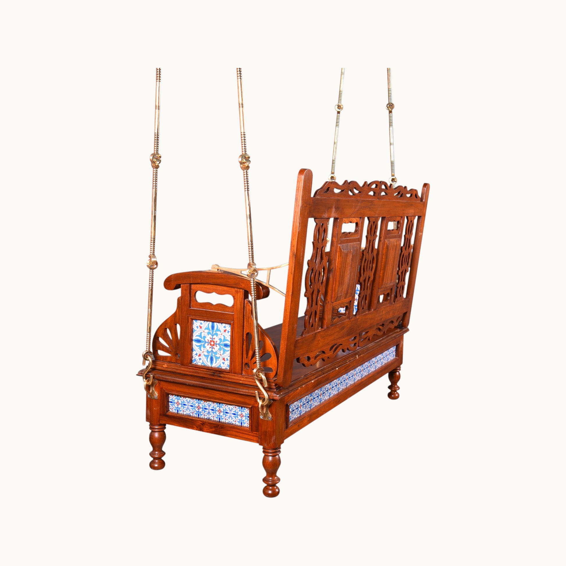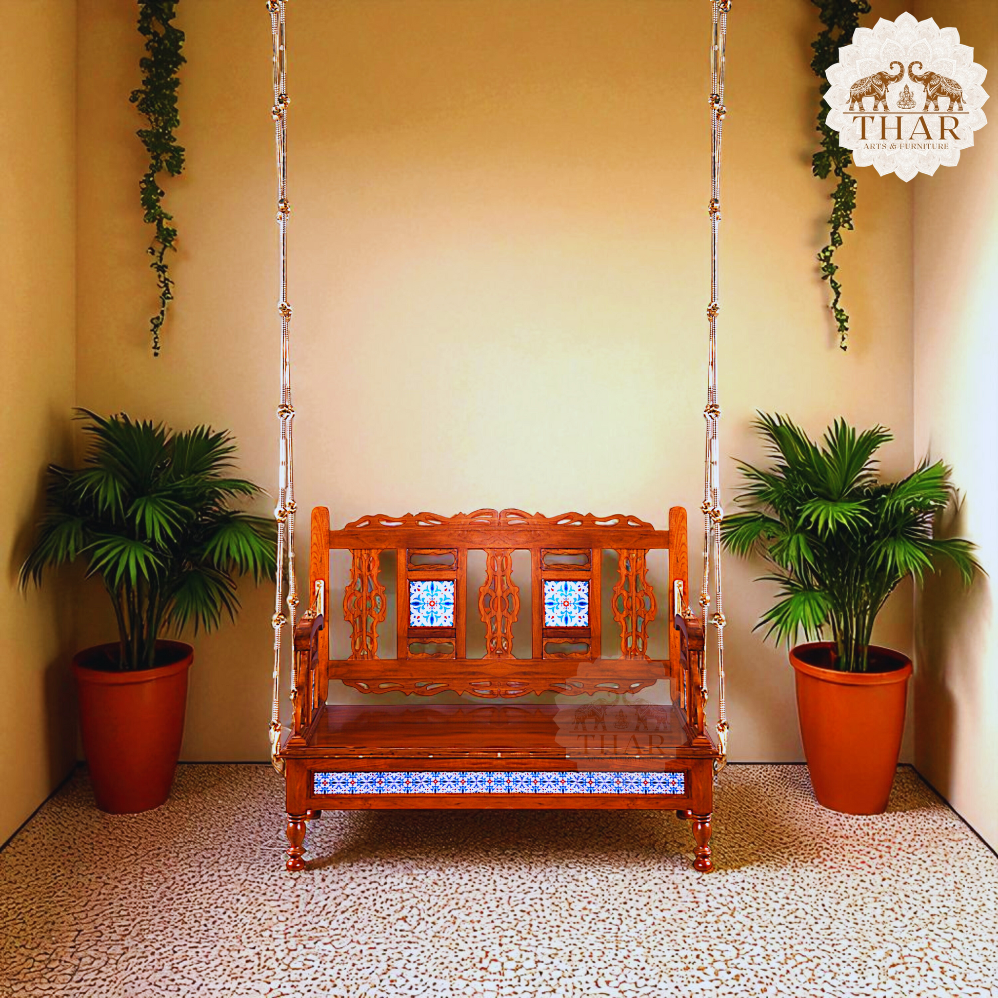 Thar Arts & Furniture - Meera Reversible Teak Wood Swing with Handcrafted Tiles