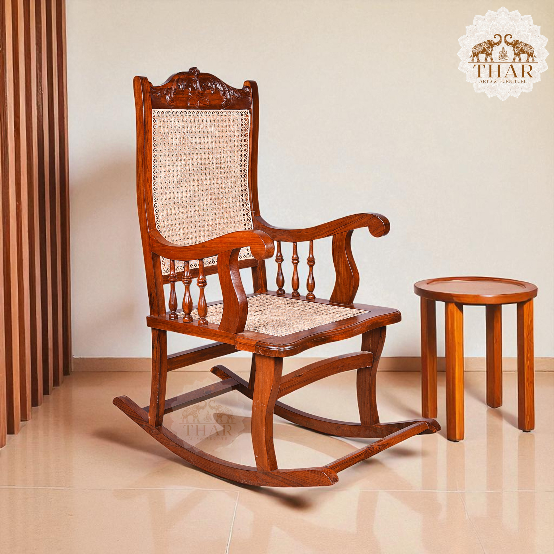 Thar Arts And Furniture - Teak wood Rocking Chair / Relax Chair with cane finish ( Rattan )