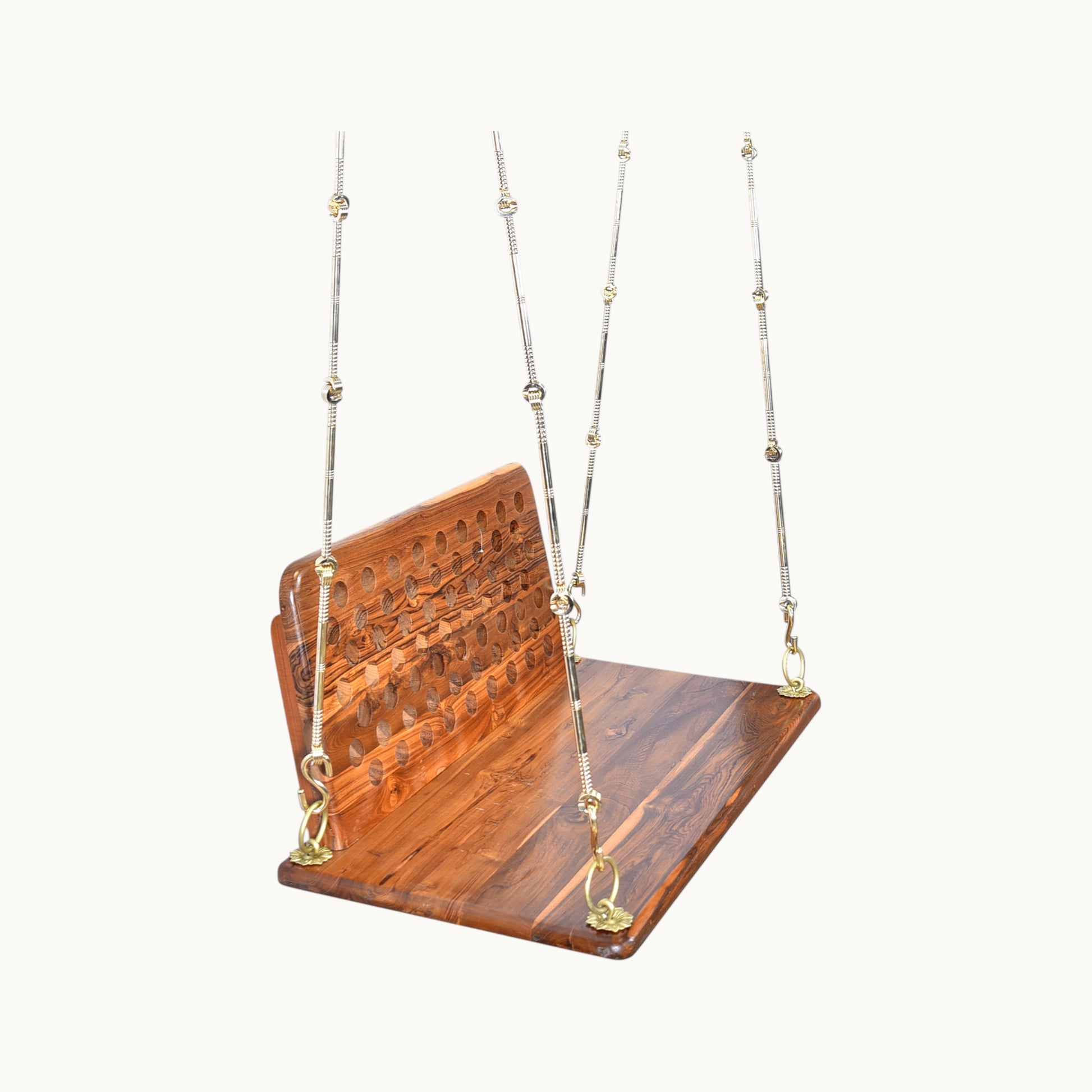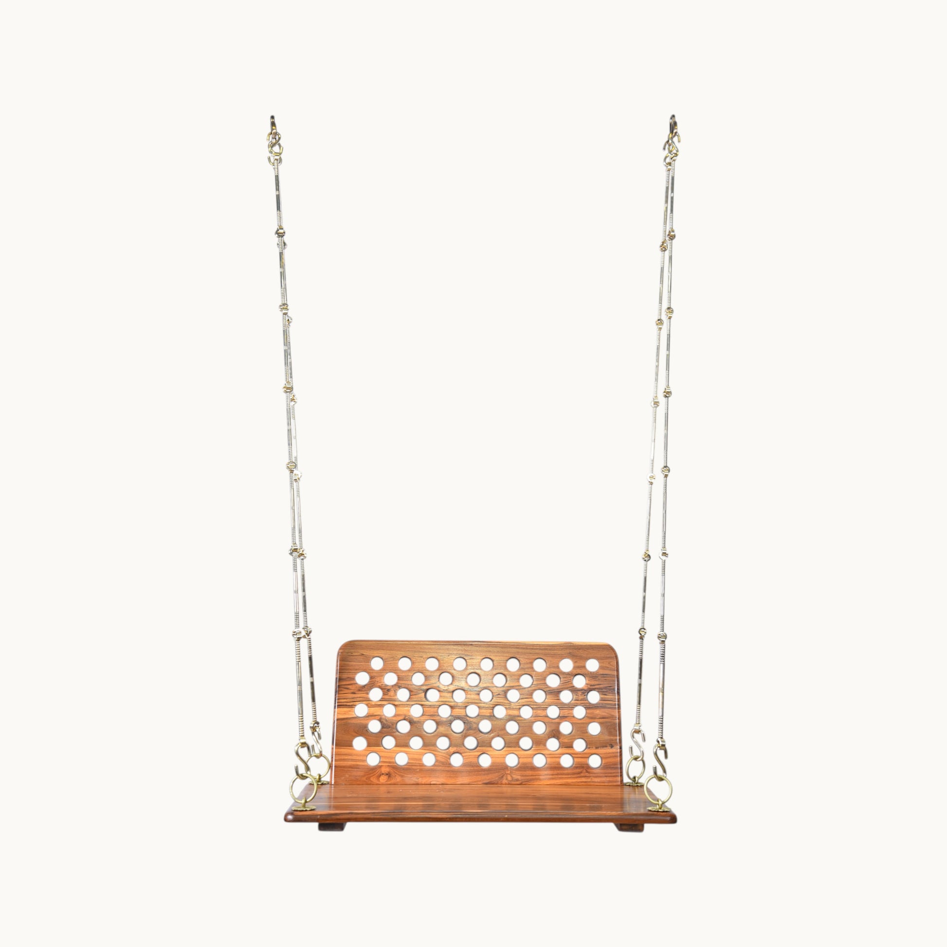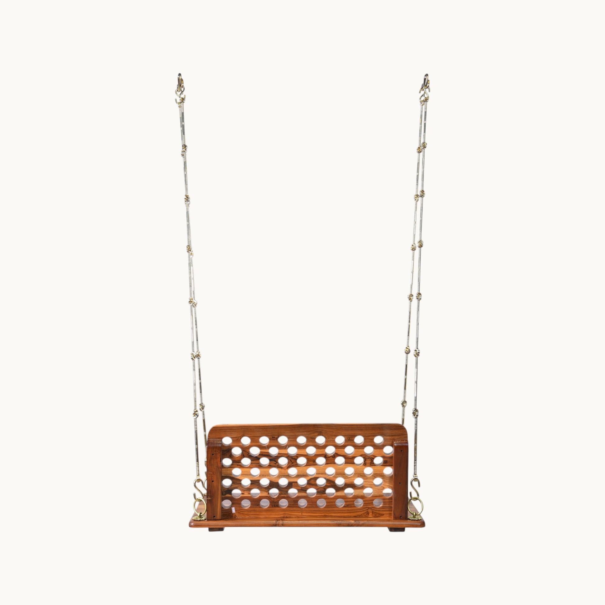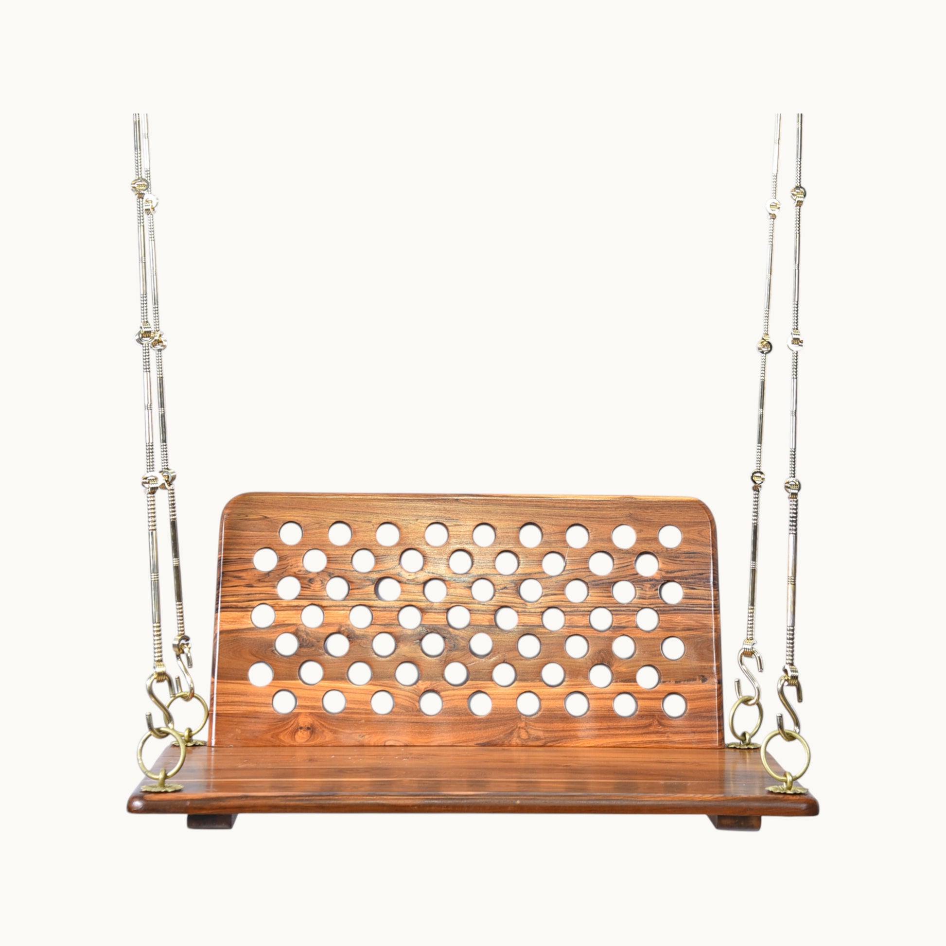 - Package Contains: 1 Teak Wood Swing with Backrest with Iron Chain with Brass Coating