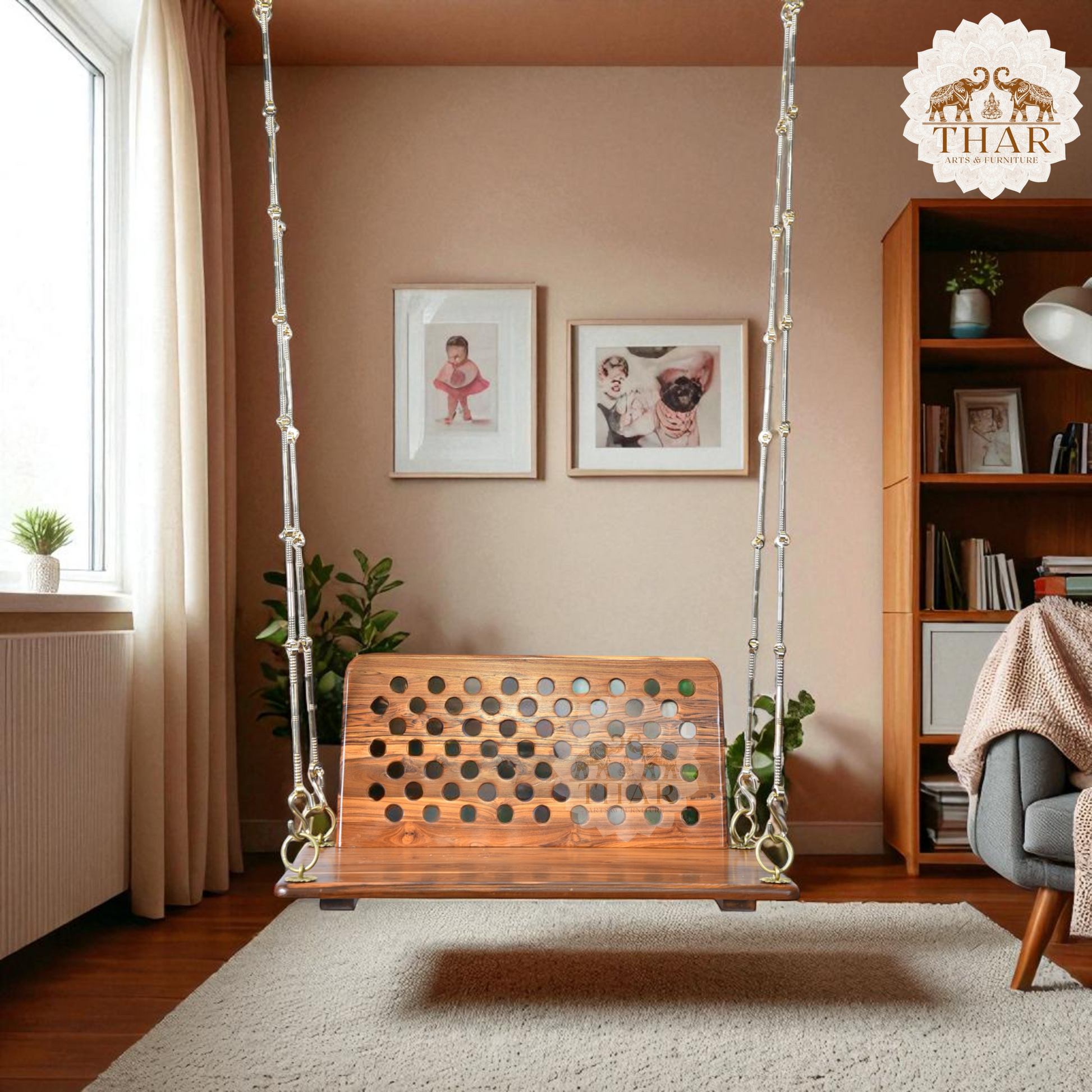 Thar Arts & Furniture - Teak Wood Wooden Swing with Back Rest