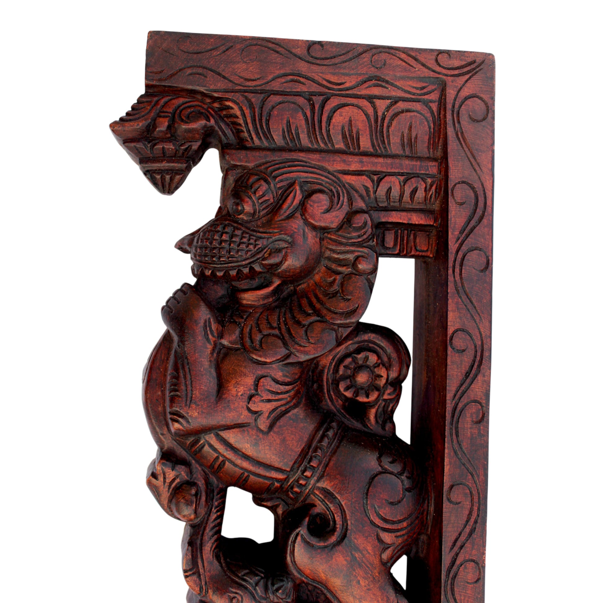 Handcrafted Wooden Yali Guardian Carving Wall Bracket – Temple Style Decor | Thar Arts & Furniture