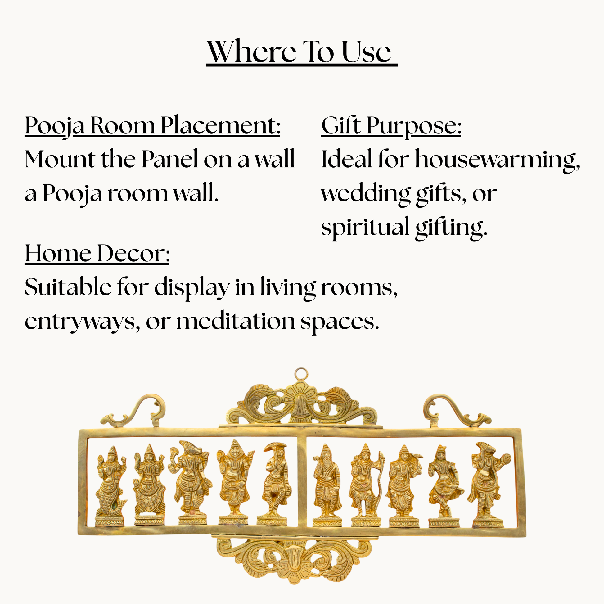 - Traditional Craftsmanship: Handcrafted by skilled artisans, this brass panel brings authentic cultural artistry and spiritual symbolism into your interiors.