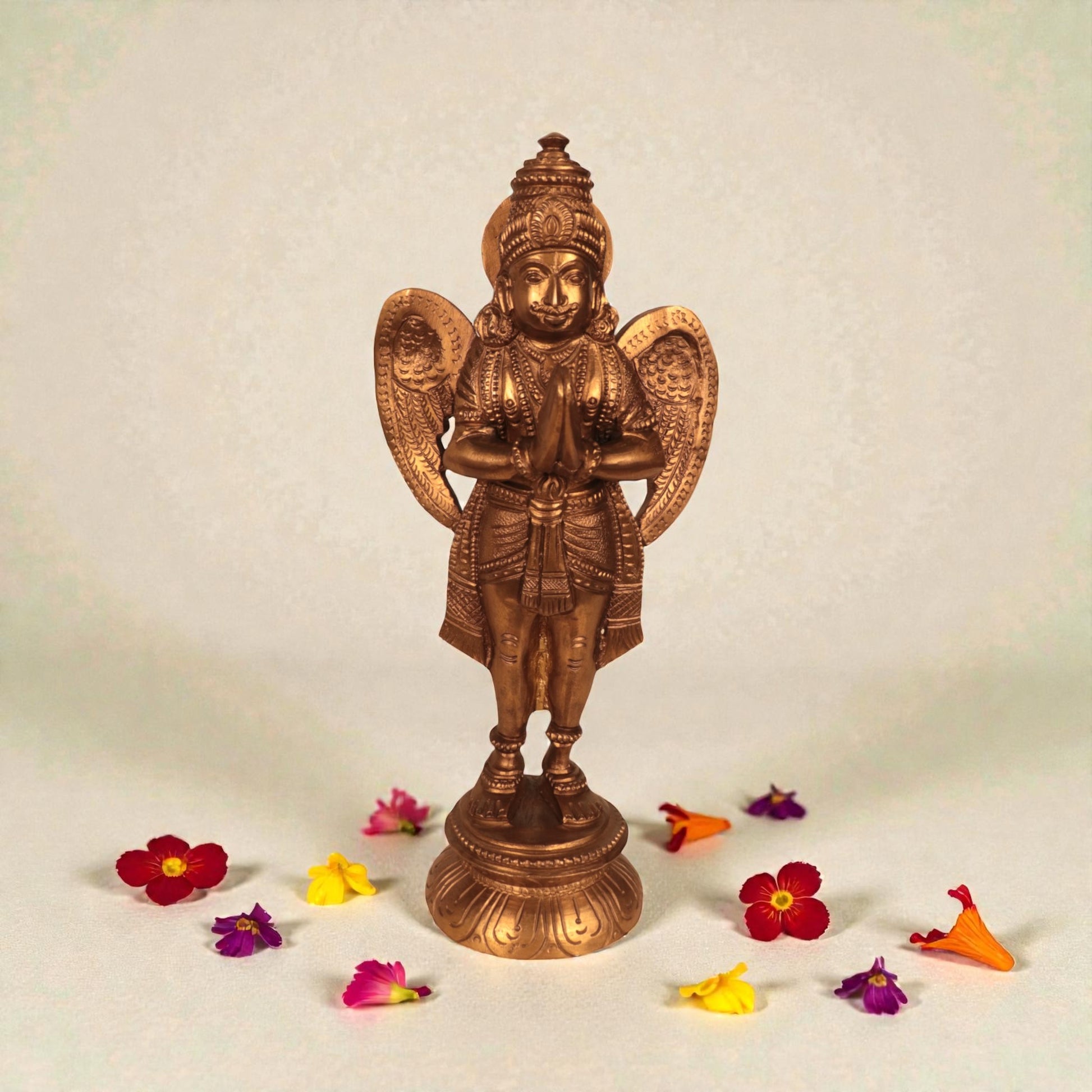 Bring home divine protection and spiritual strength with this exquisitely crafted Garuda Bird Idol, made from premium solid bronze and finished with refined traditional detailing. Garuda, the celestial bird and divine vehicle of Lord Vishnu, symbolises power, vigilance, freedom, and protection from negative forces. This beautifully proportioned bronze sculpture is ideal for home mandirs, pooja rooms, temples, meditation spaces, or as a powerful spiritual decor accent, adding both mythological significance and artistic elegance to your interiors.