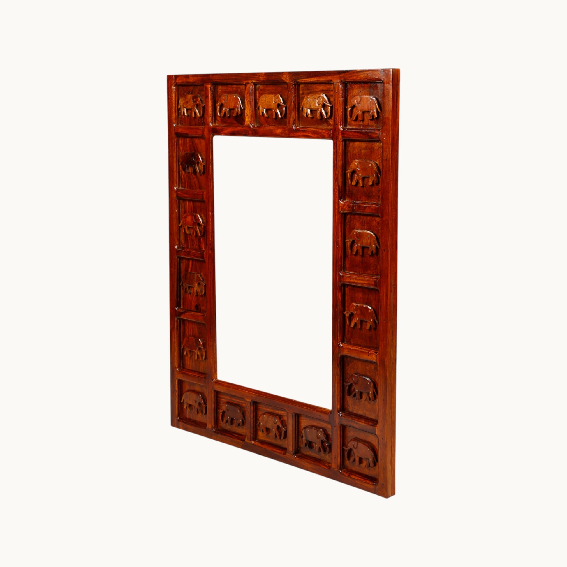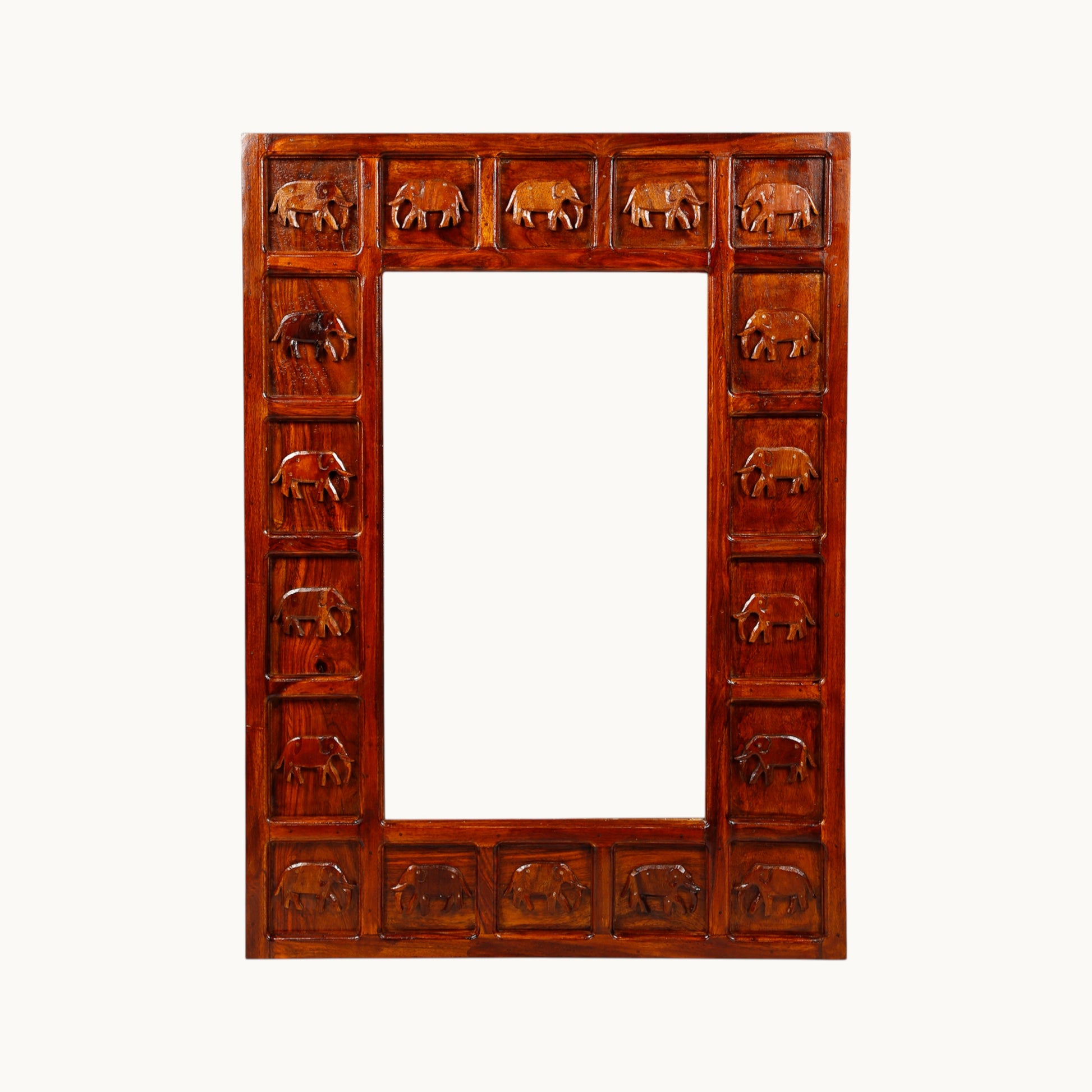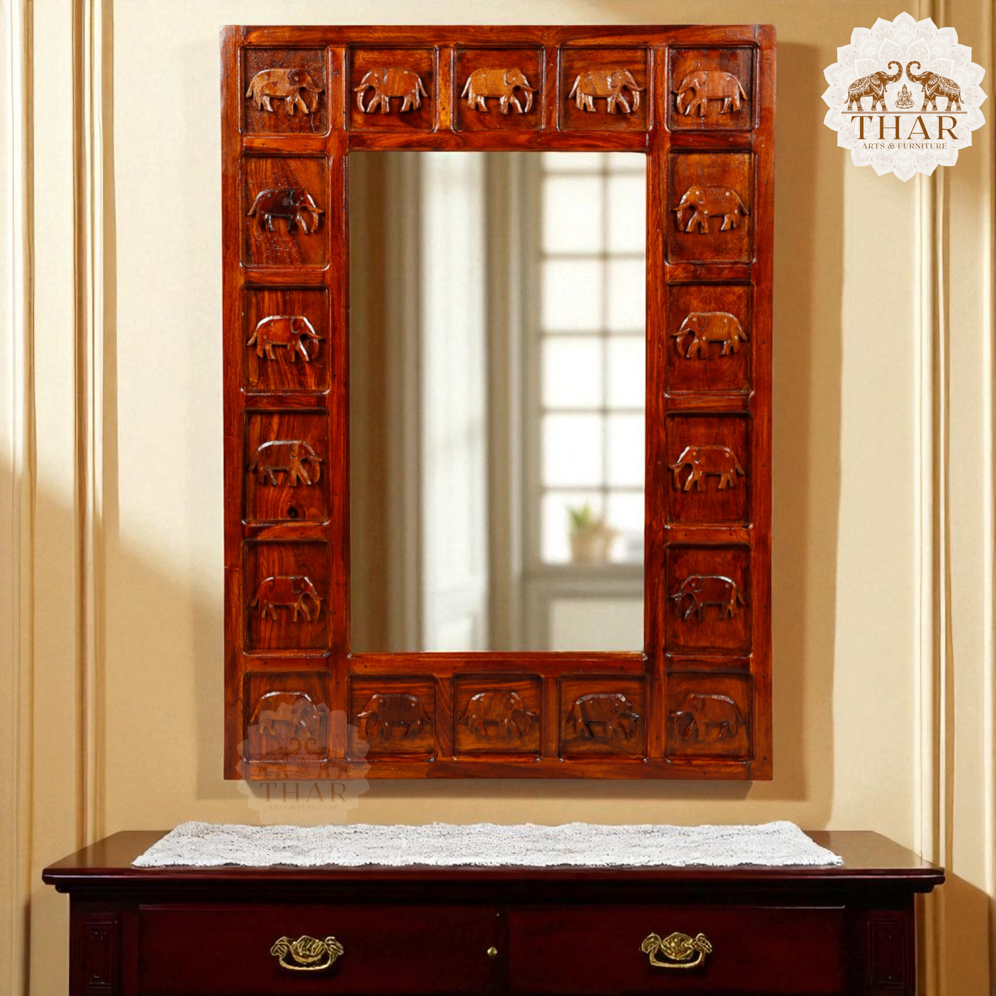 Thar Arts And Furniture - Sheesham Ethnic brown wooden Mirror with Elephant Frame