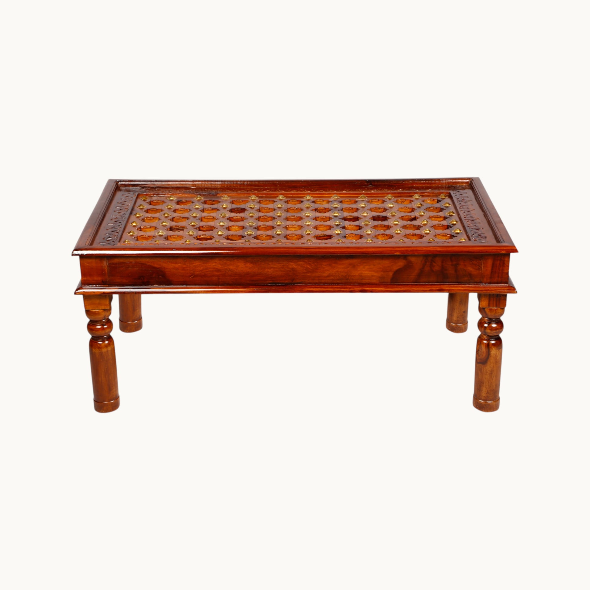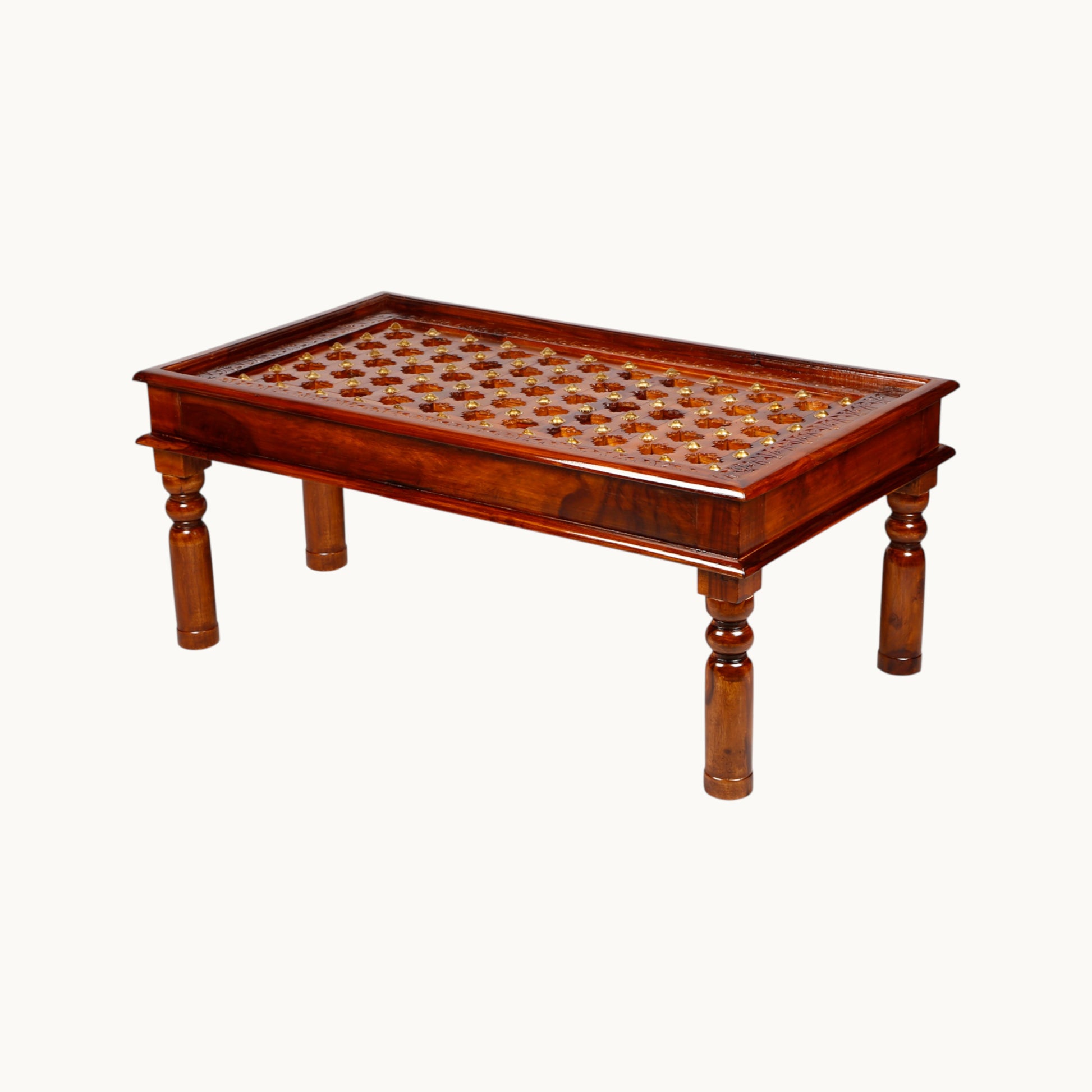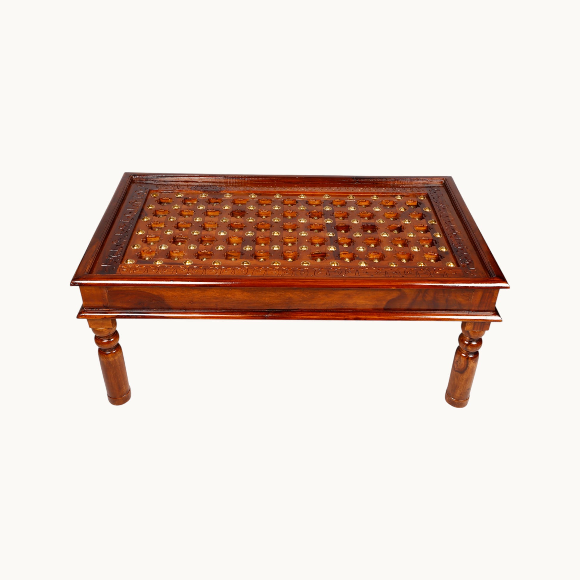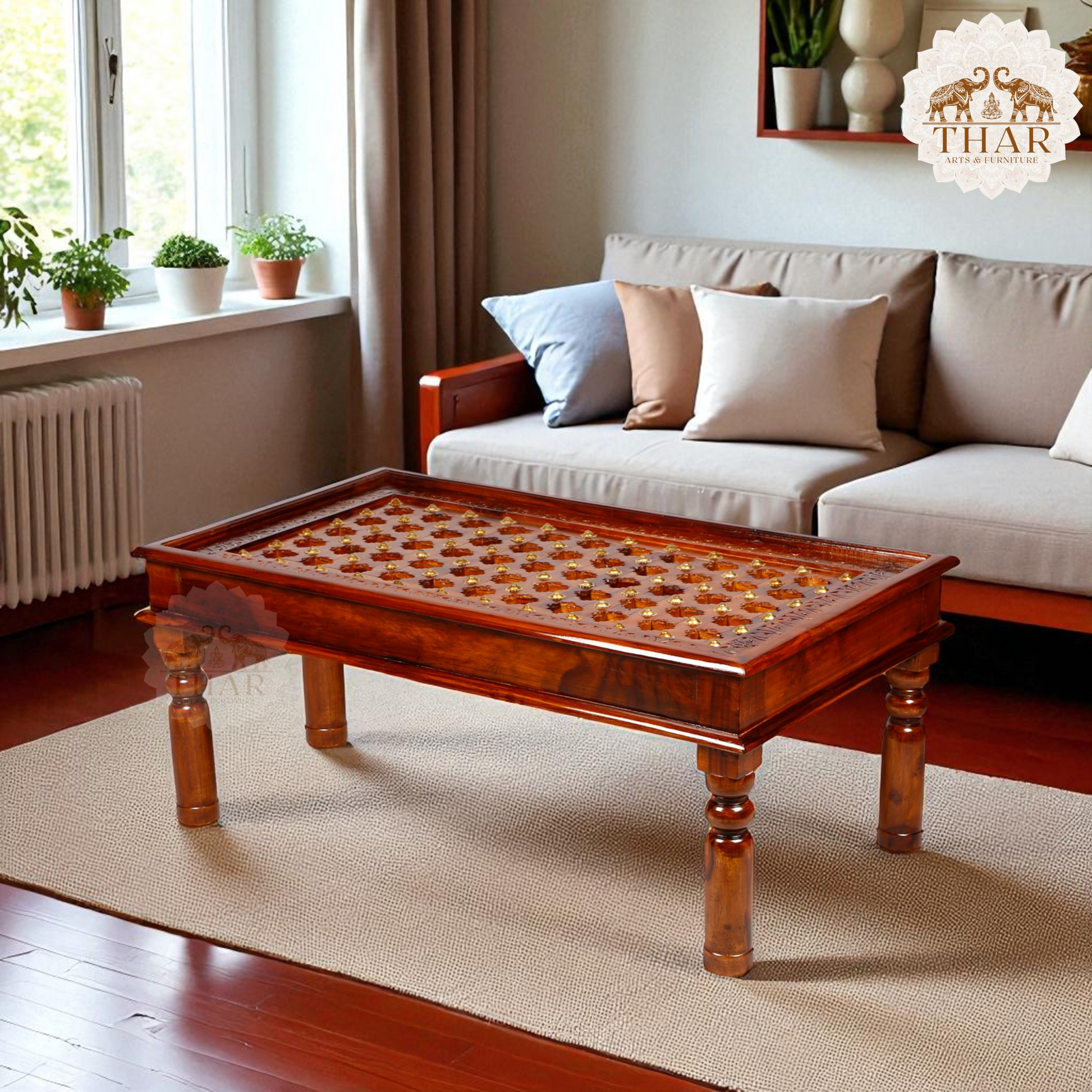 Thar Arts And Furniture - Sheesham wood Hand carved ( Brass Art Work ) Coffee Table with glass