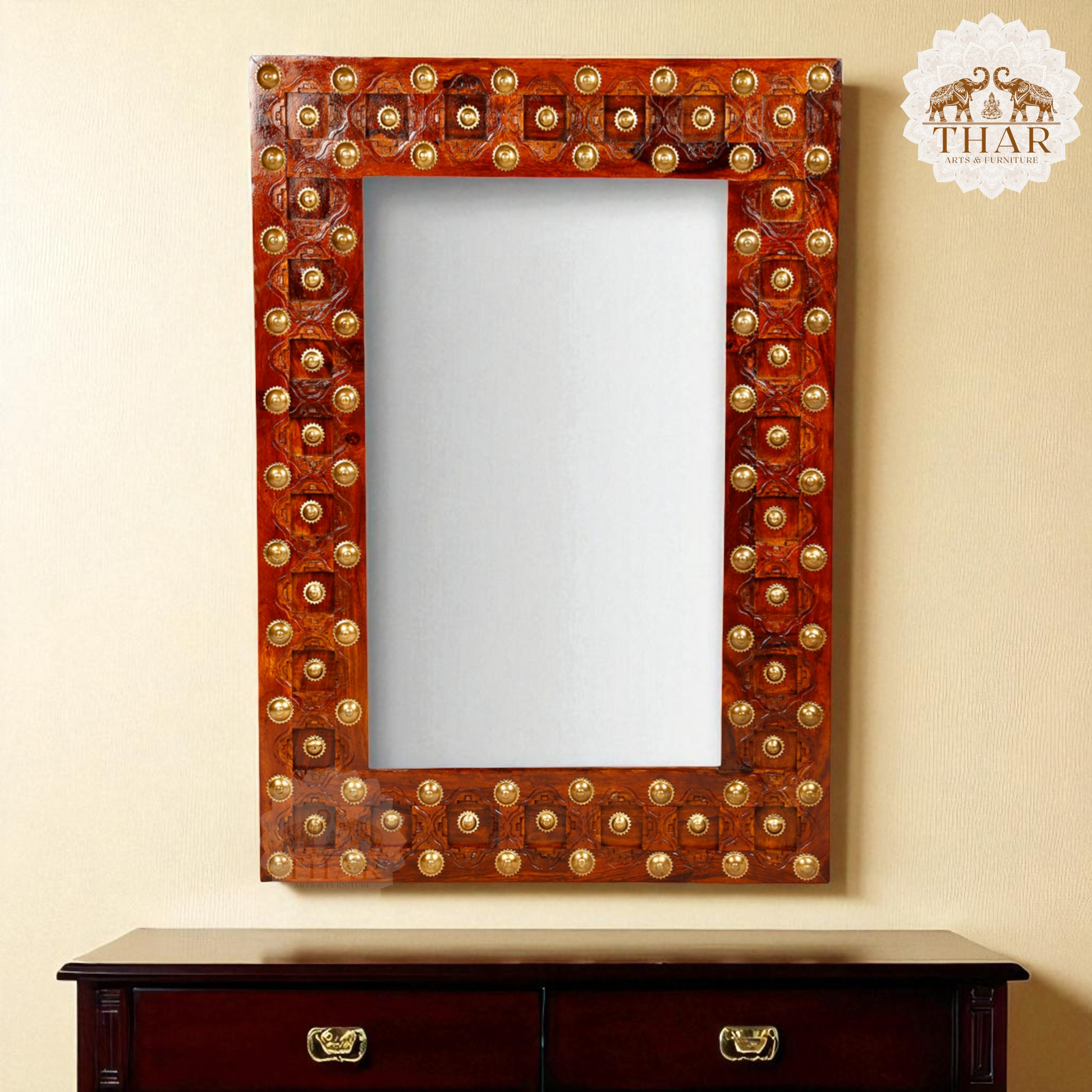 Thar Arts And Furniture - Sheesham wood Mirror with Frame brass art Finish