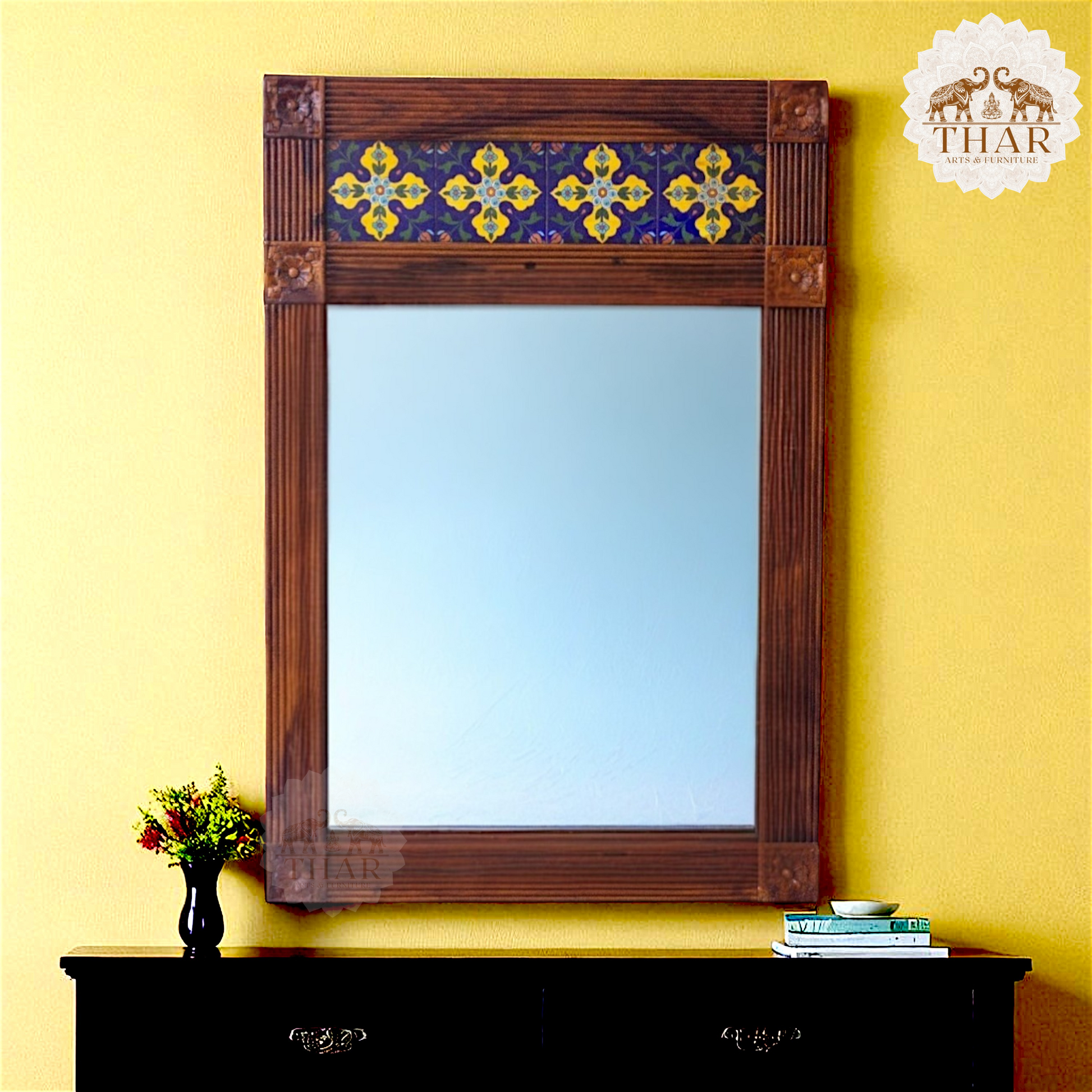 Thar Arts And Furniture - Sheesham wood Mirror with Frame tiles work