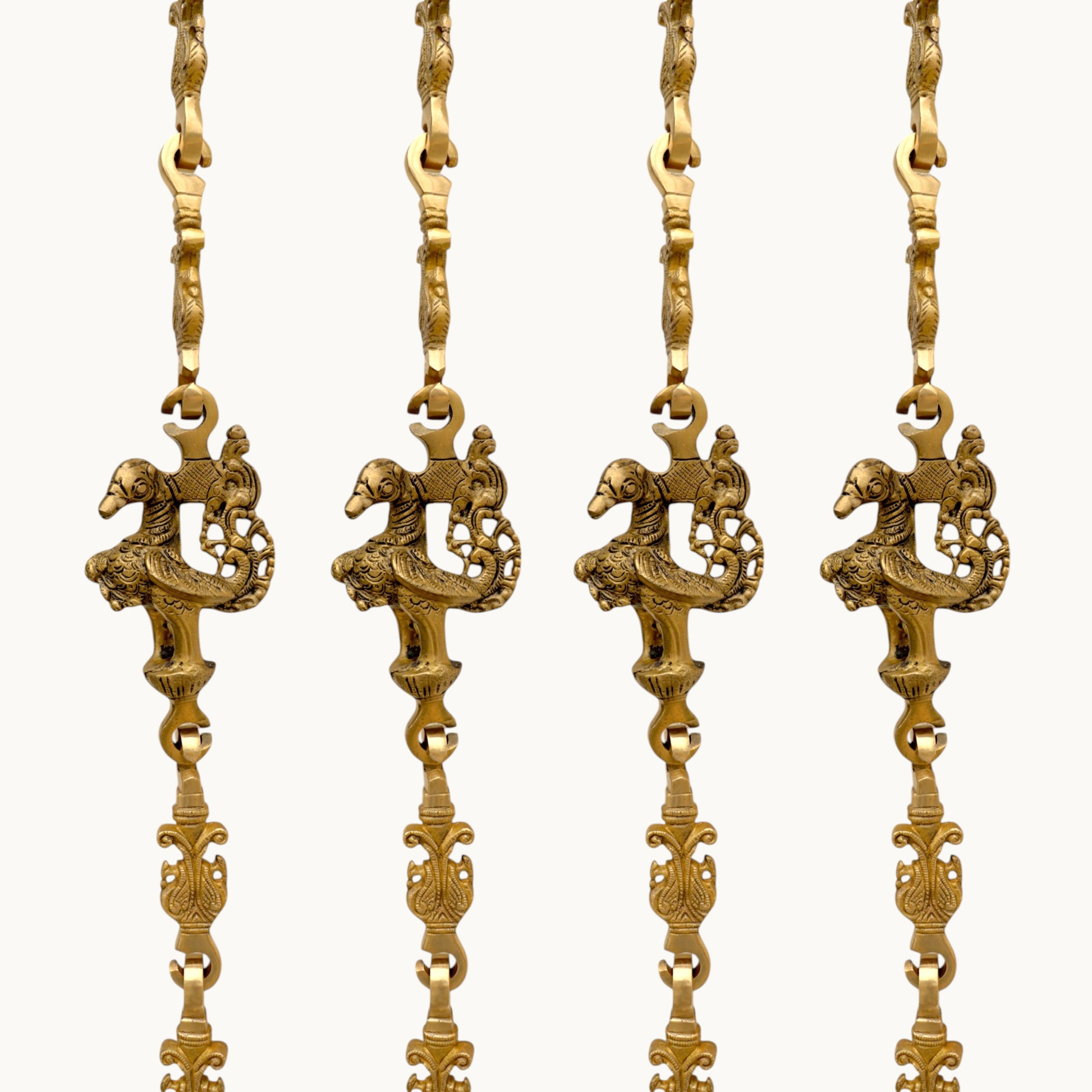 • Design: The brass swing chain features a stunning double peacock design with intricately crafted Anna birds on each chain, blending natural beauty with elegant craftsmanship
